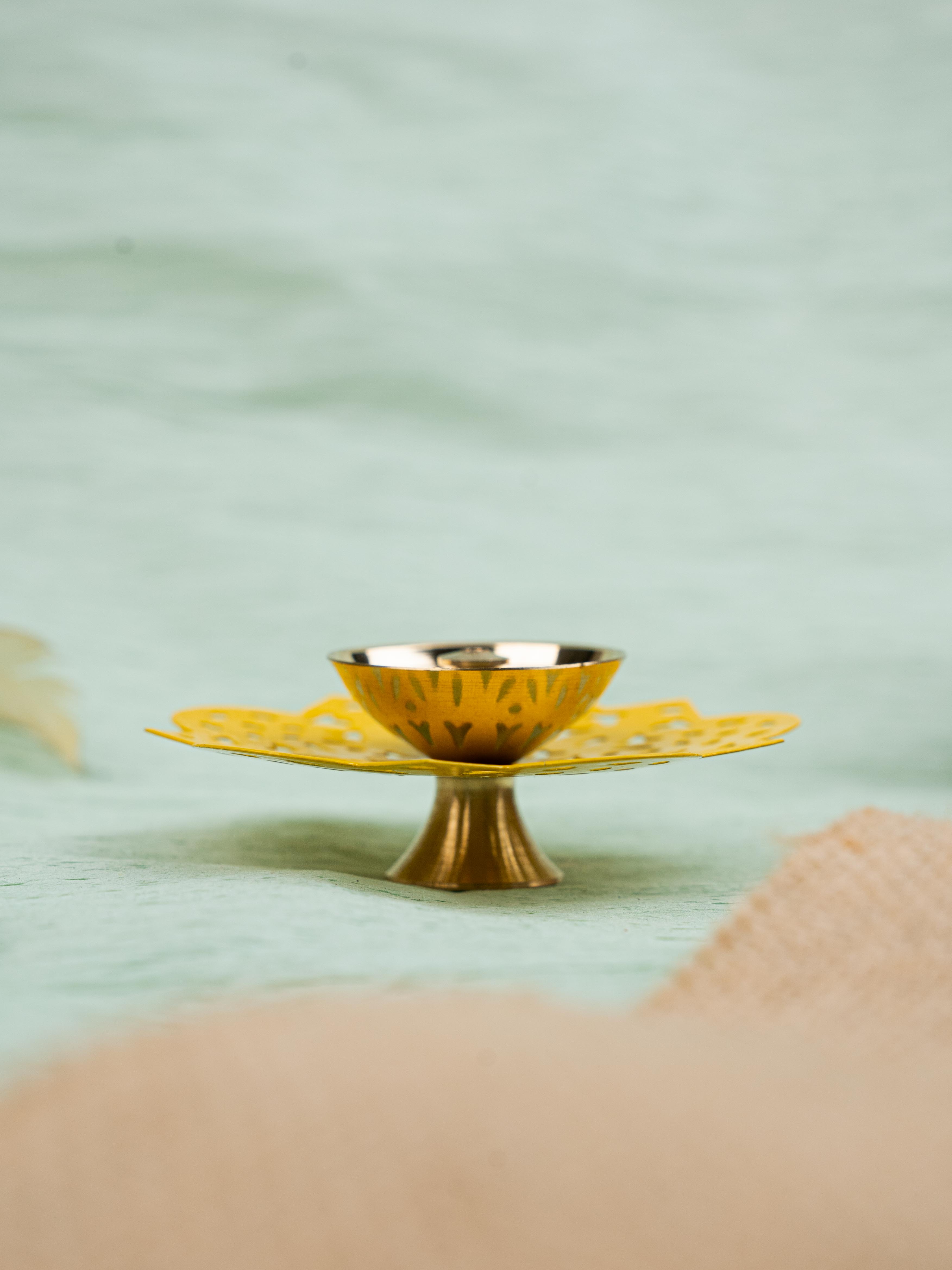 - Diya Crafted from Brass, Giving it a Shiny Finish.