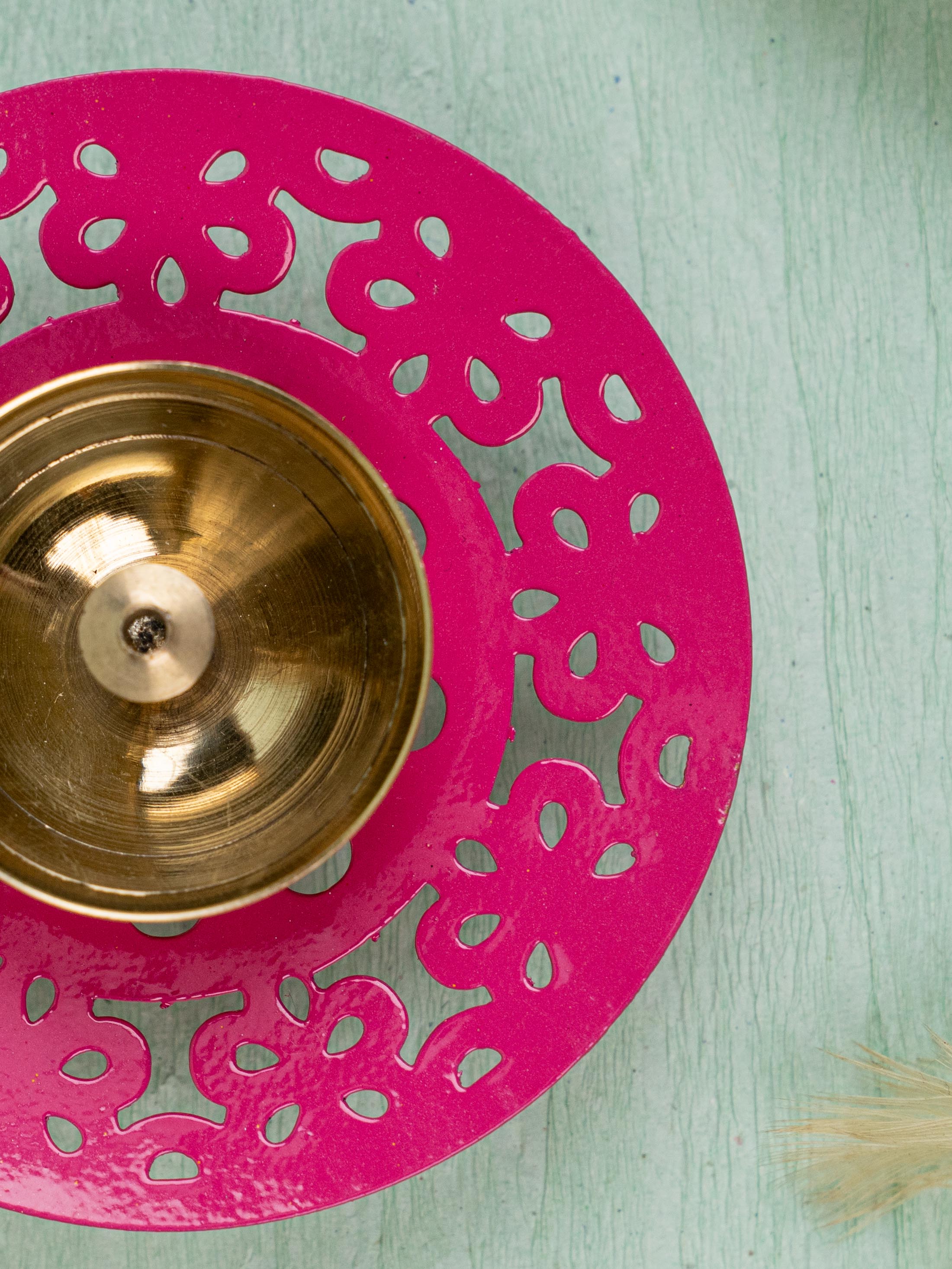 - Design: It is Mounted on a Circular Base with Cutwork Floral Patterns in a Bright Color Finish, adding a Vibrant and Contemporary Appeal.
