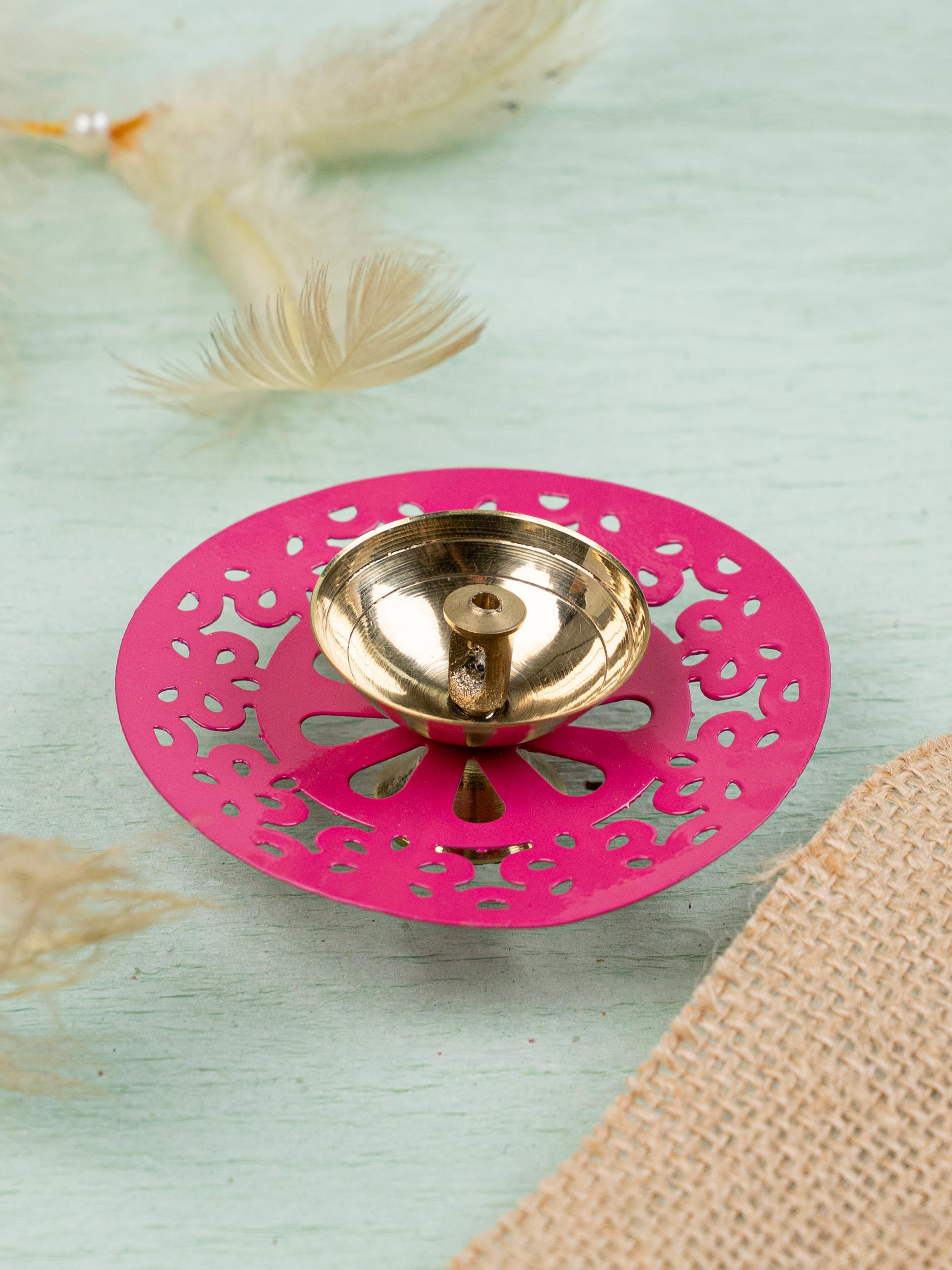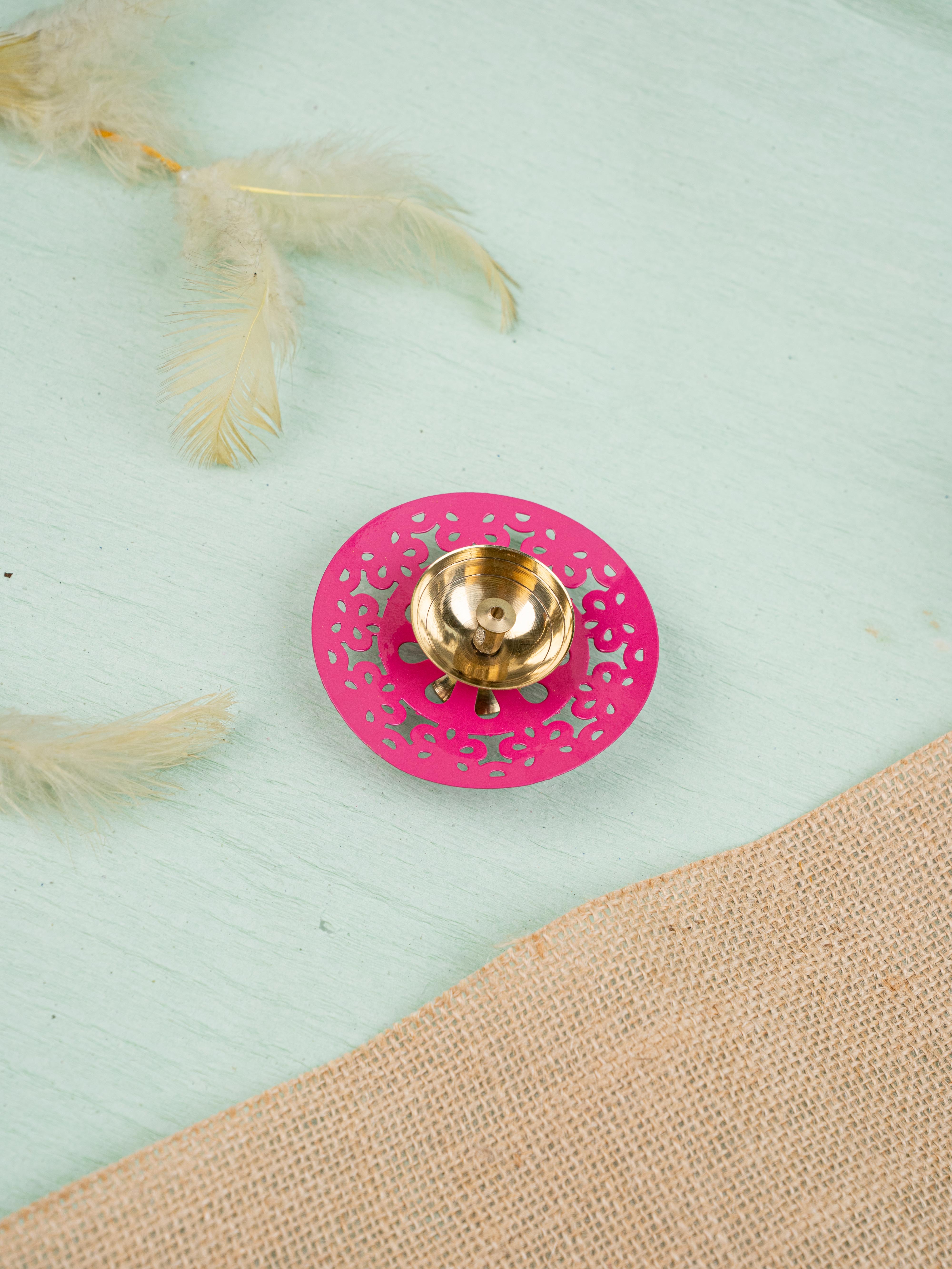 Hand Painted Brass Round Shaped Diya - WBG1826-1