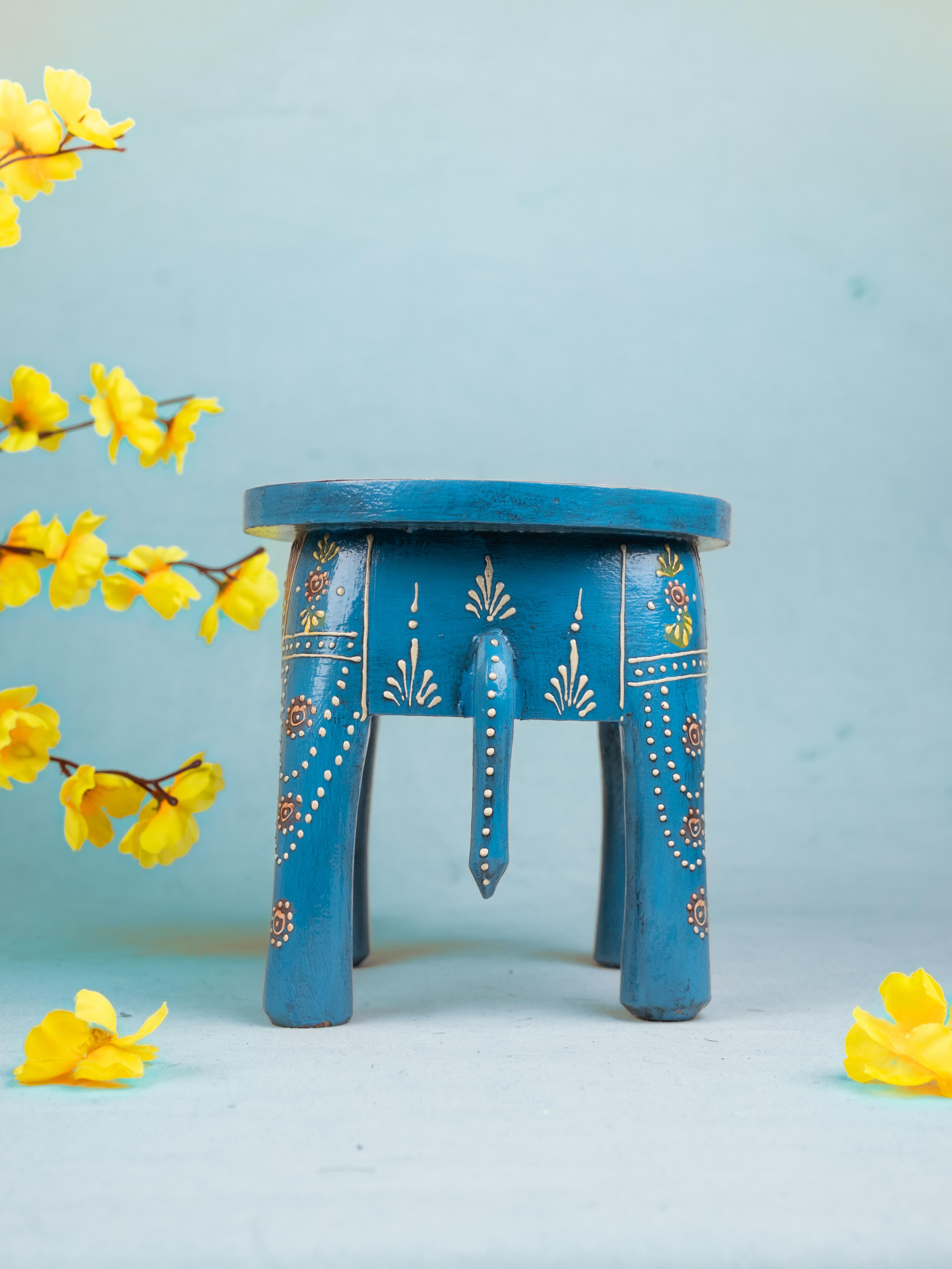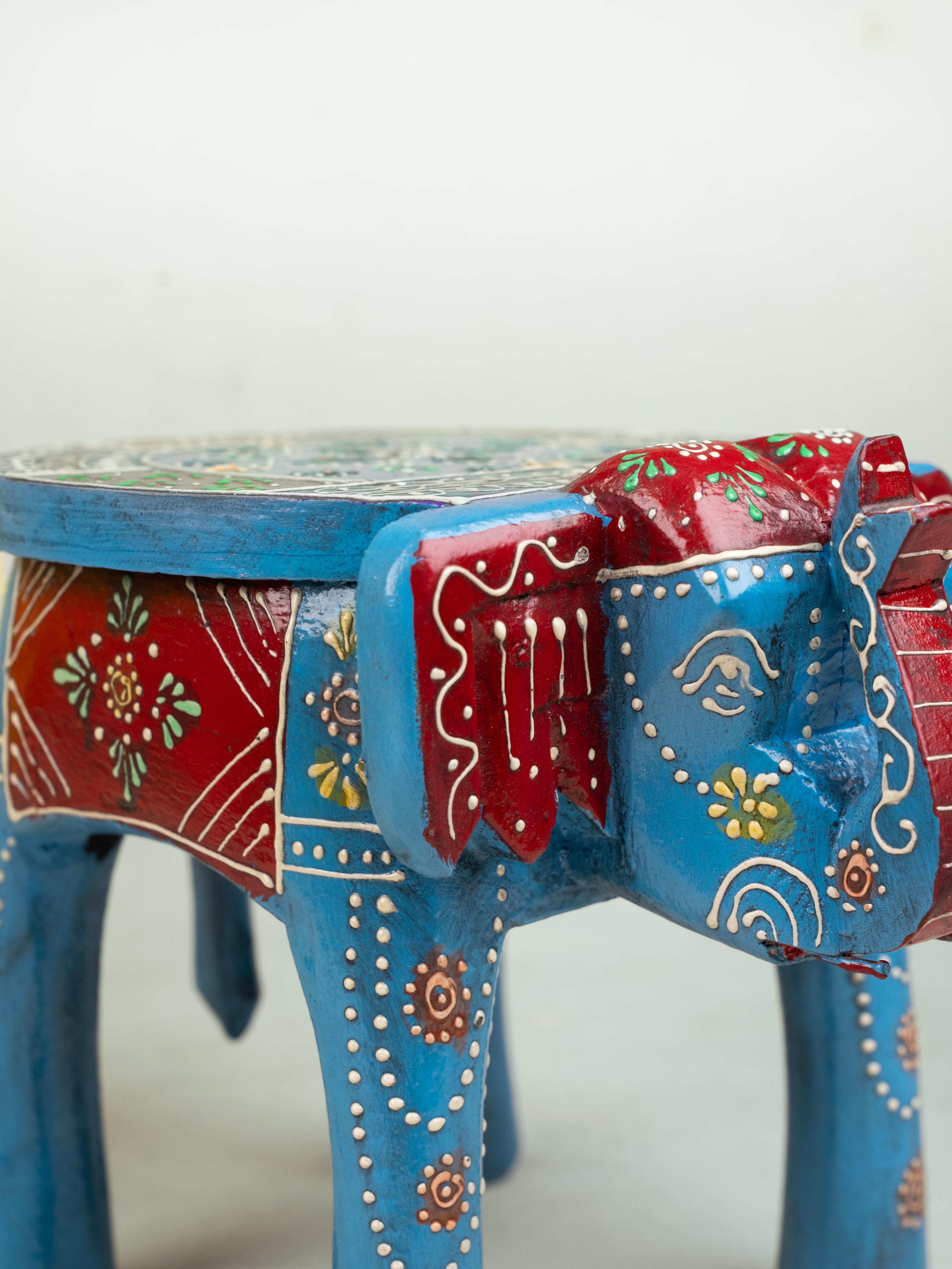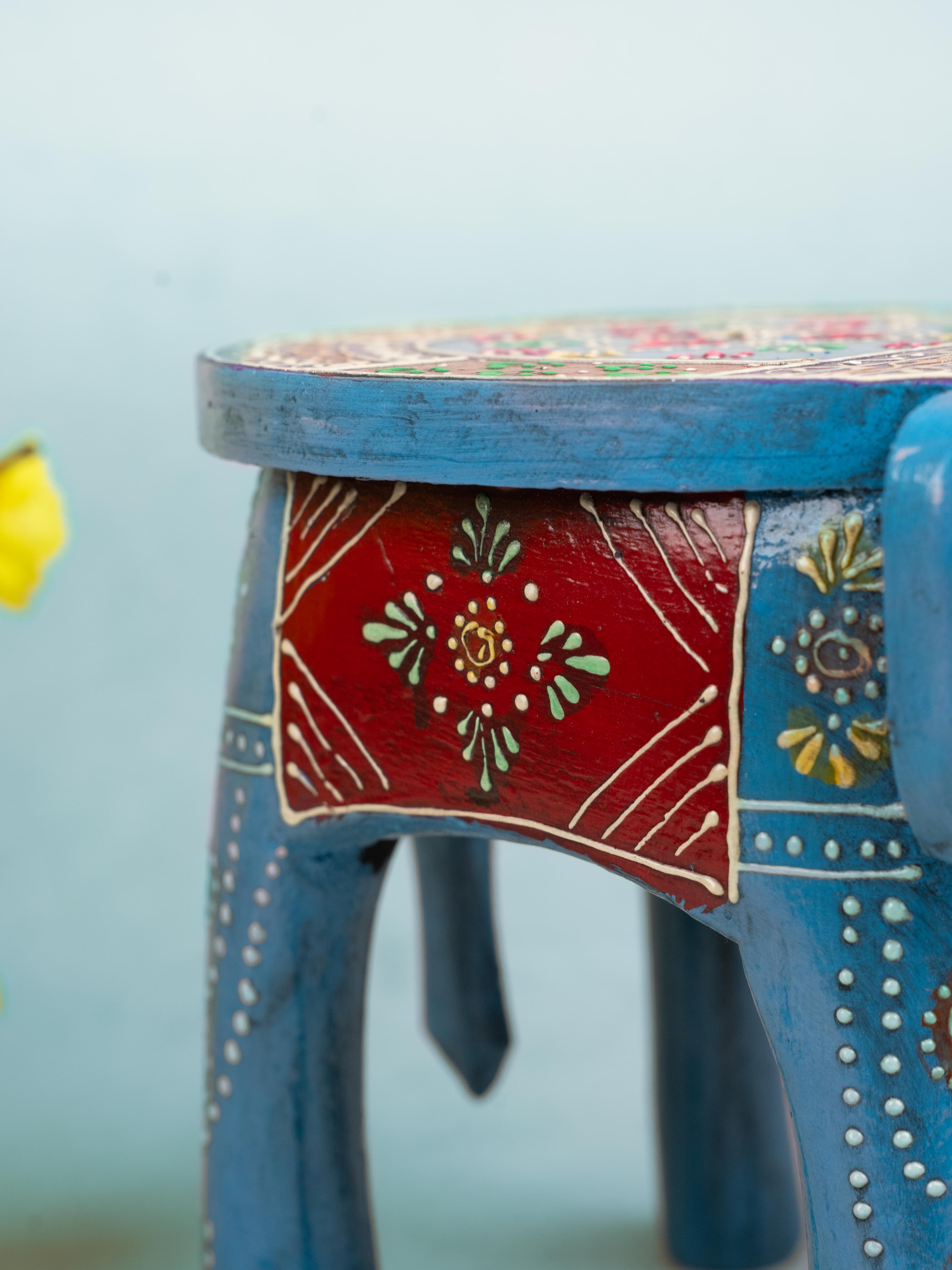 - Displayed here is a eye-catching elephant stool made of wood and hand painted to perfection.