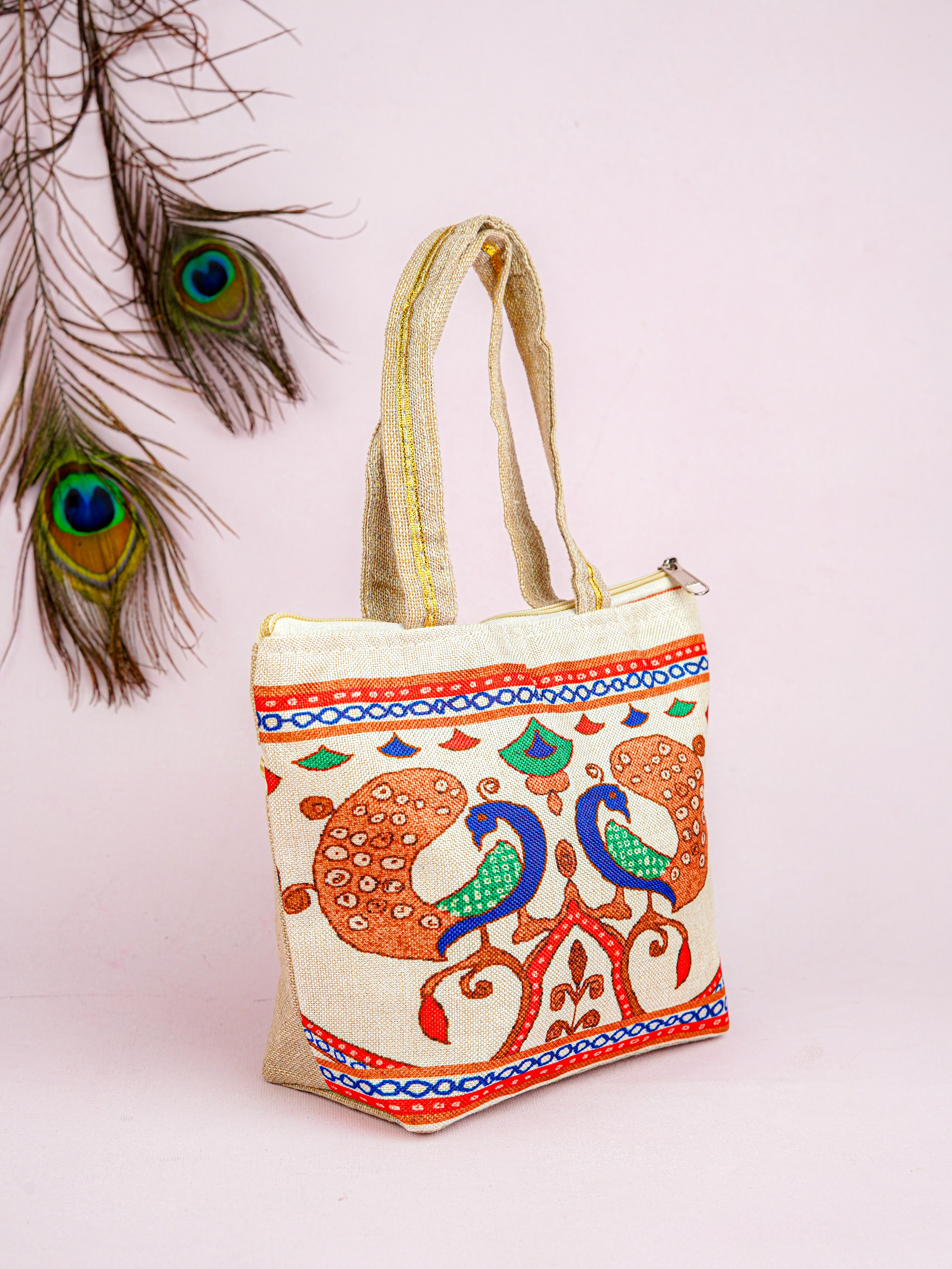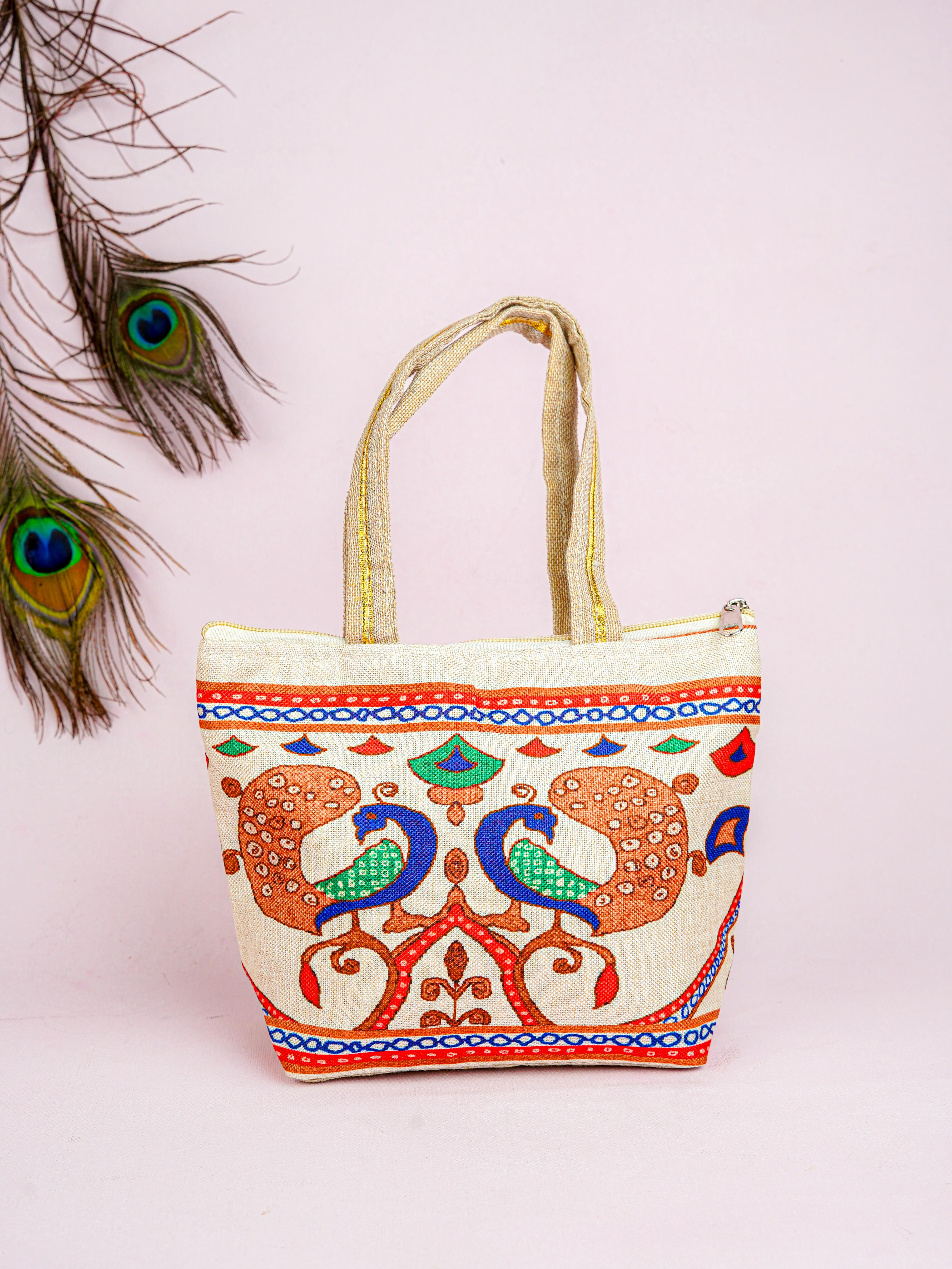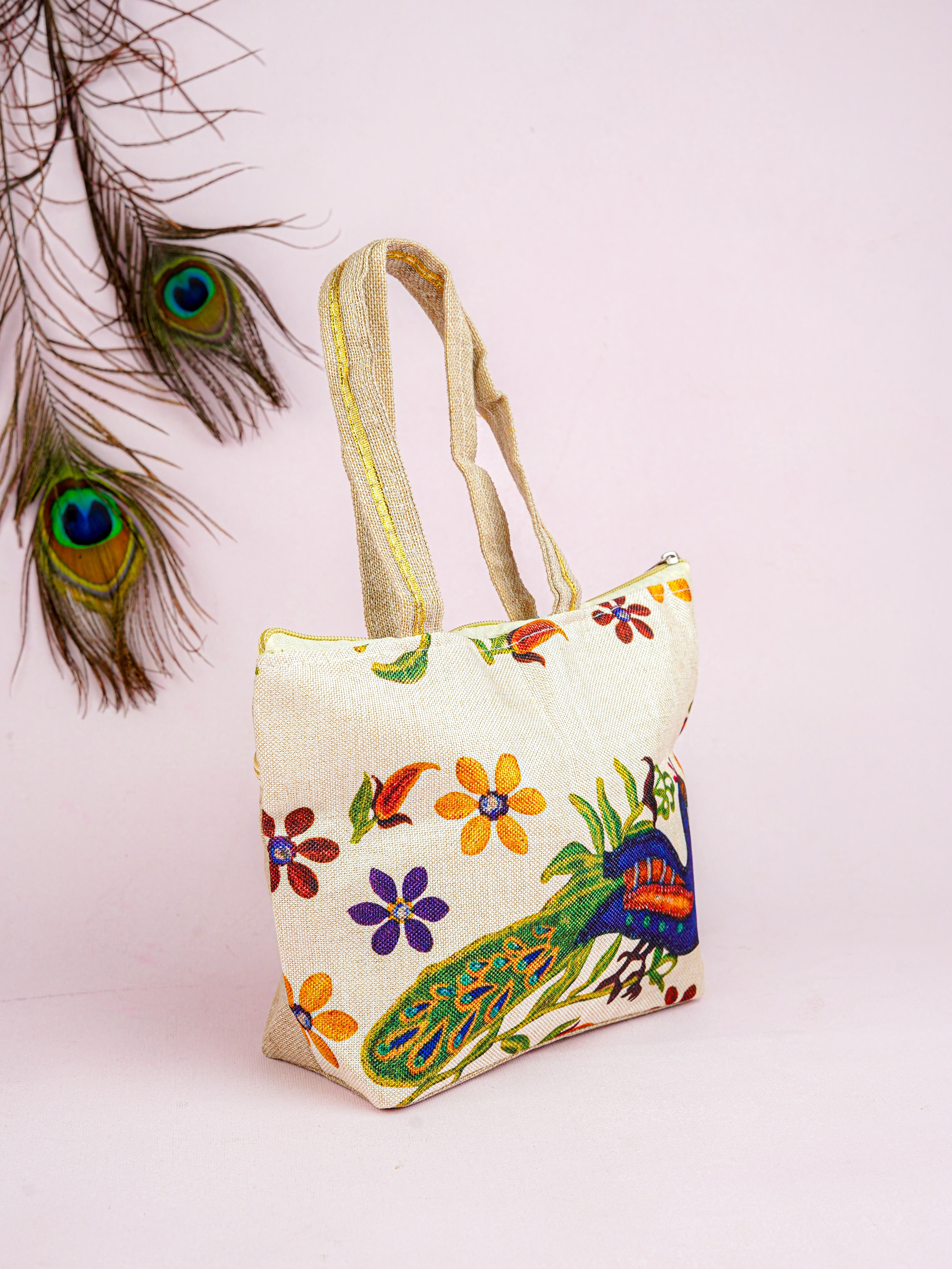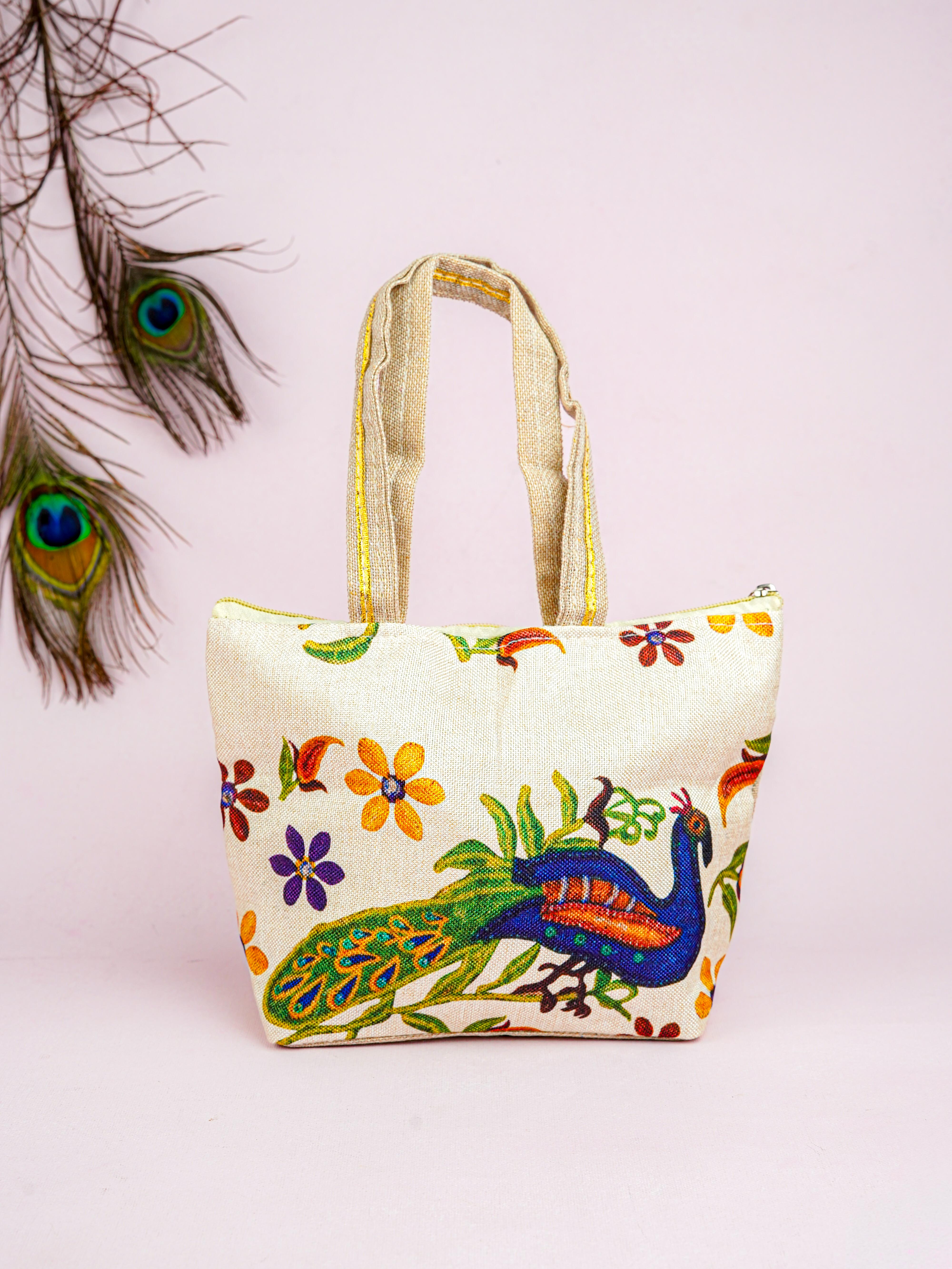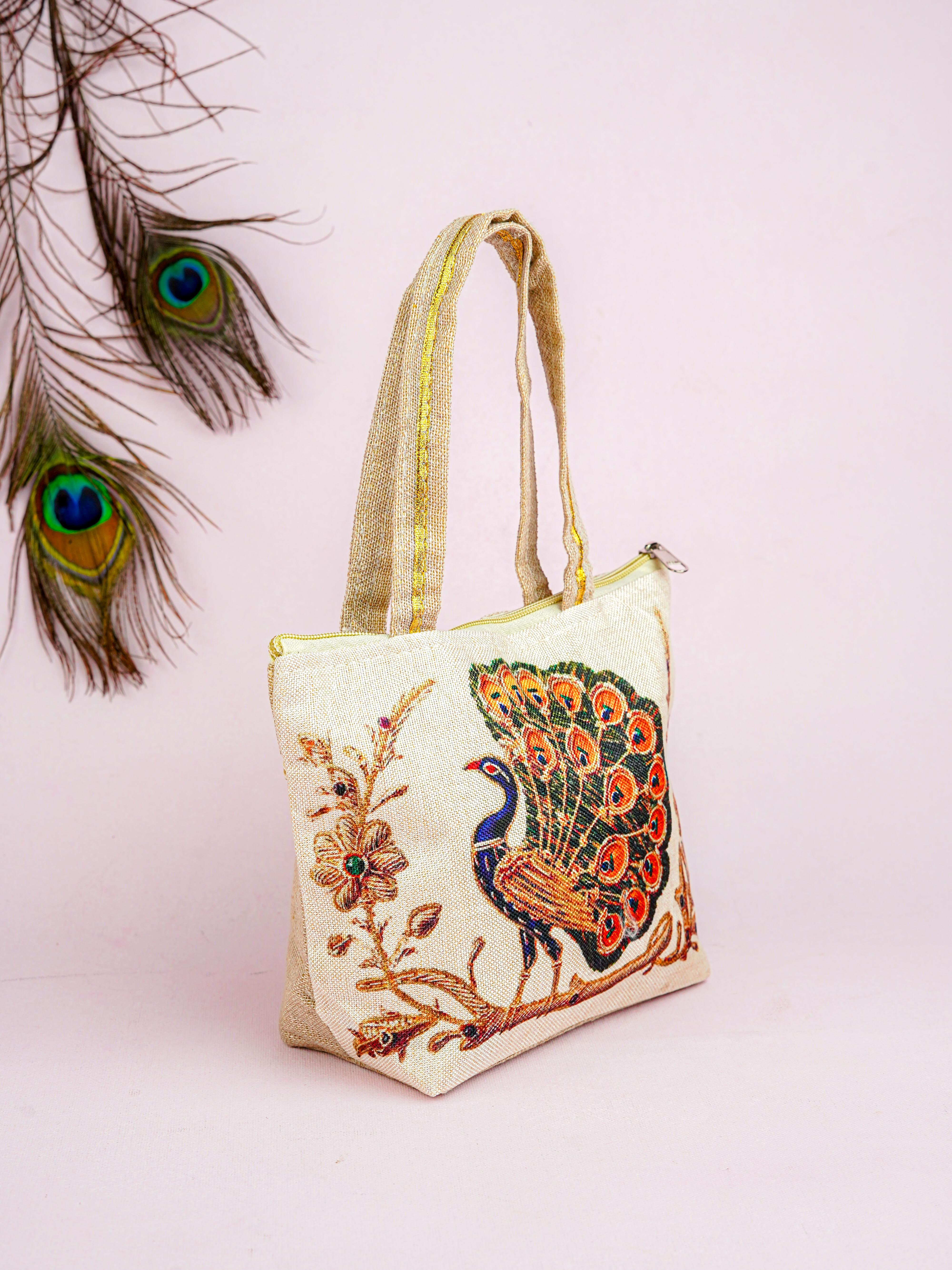 Handbag with Peacock Print - 10x7 inch - WBG1932
