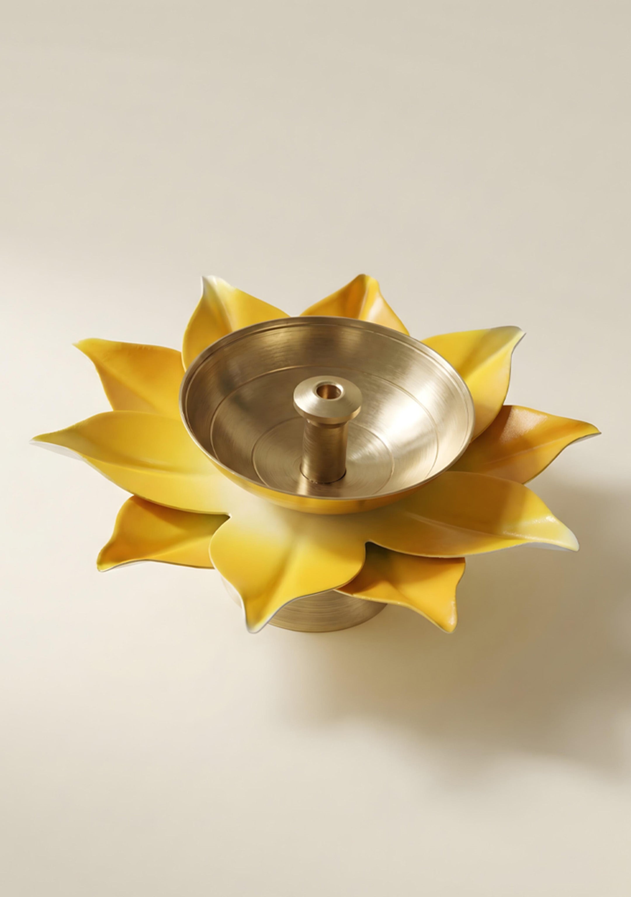 - Flower shaped BRASS DIYA, handpainted decorative pooja utility !