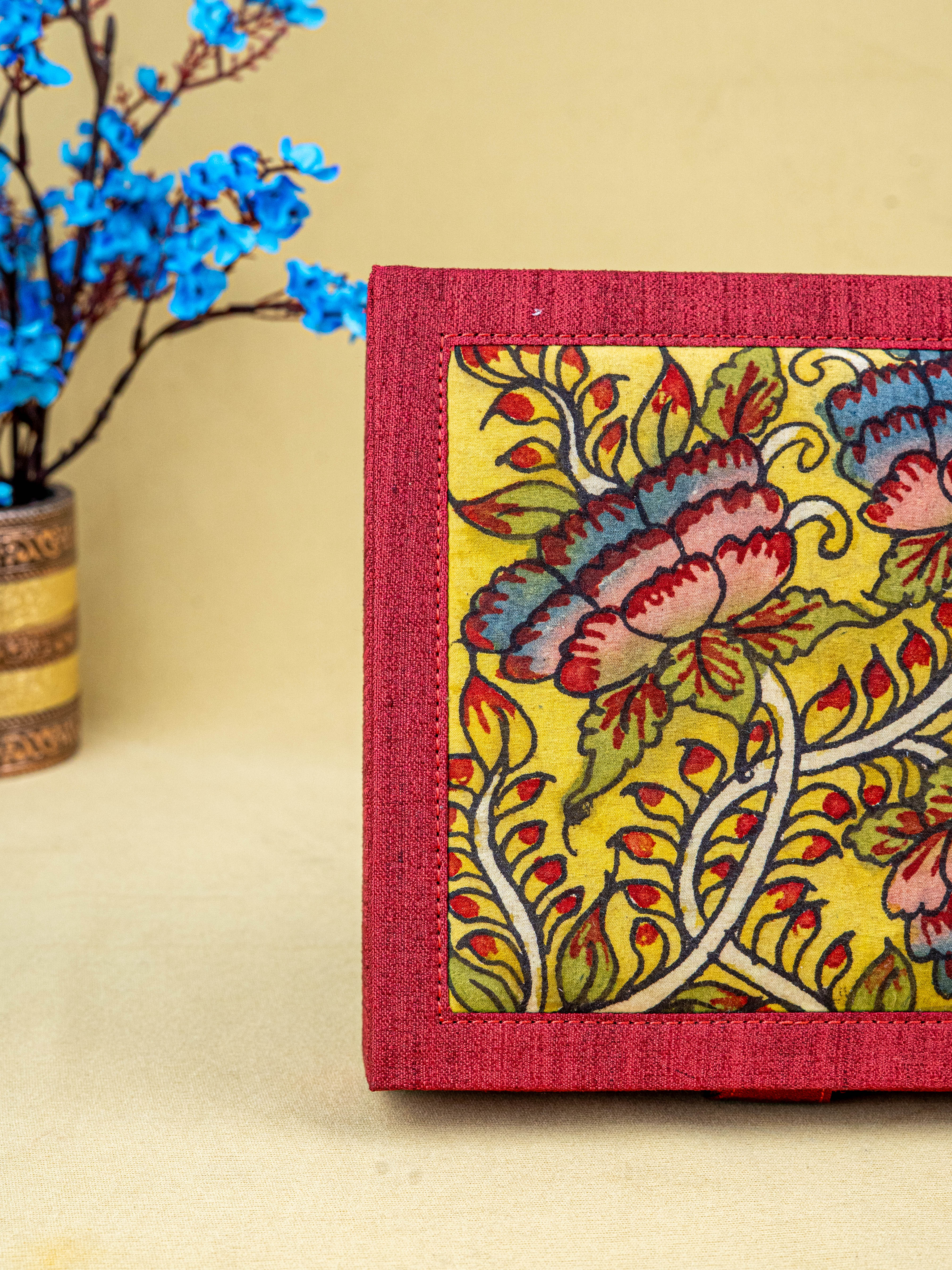 - The Outer is covered in a Rich Maroon Kalamkari Design & Textured Fabric, giving it an Elegant and Premium Look.