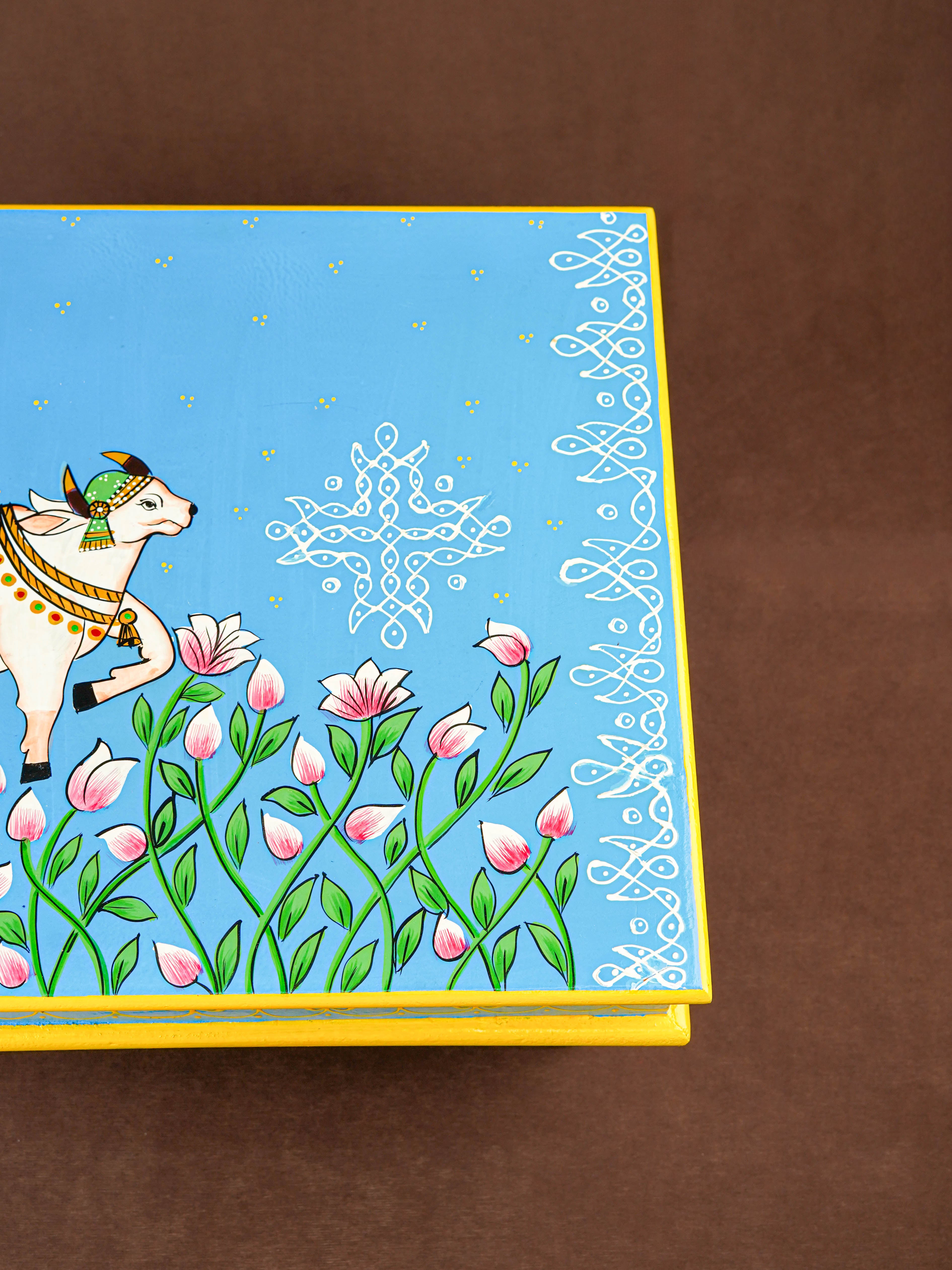 - The Surface is Painted With Pichwai Cow Designs, Creating a Fresh and Calming Look.