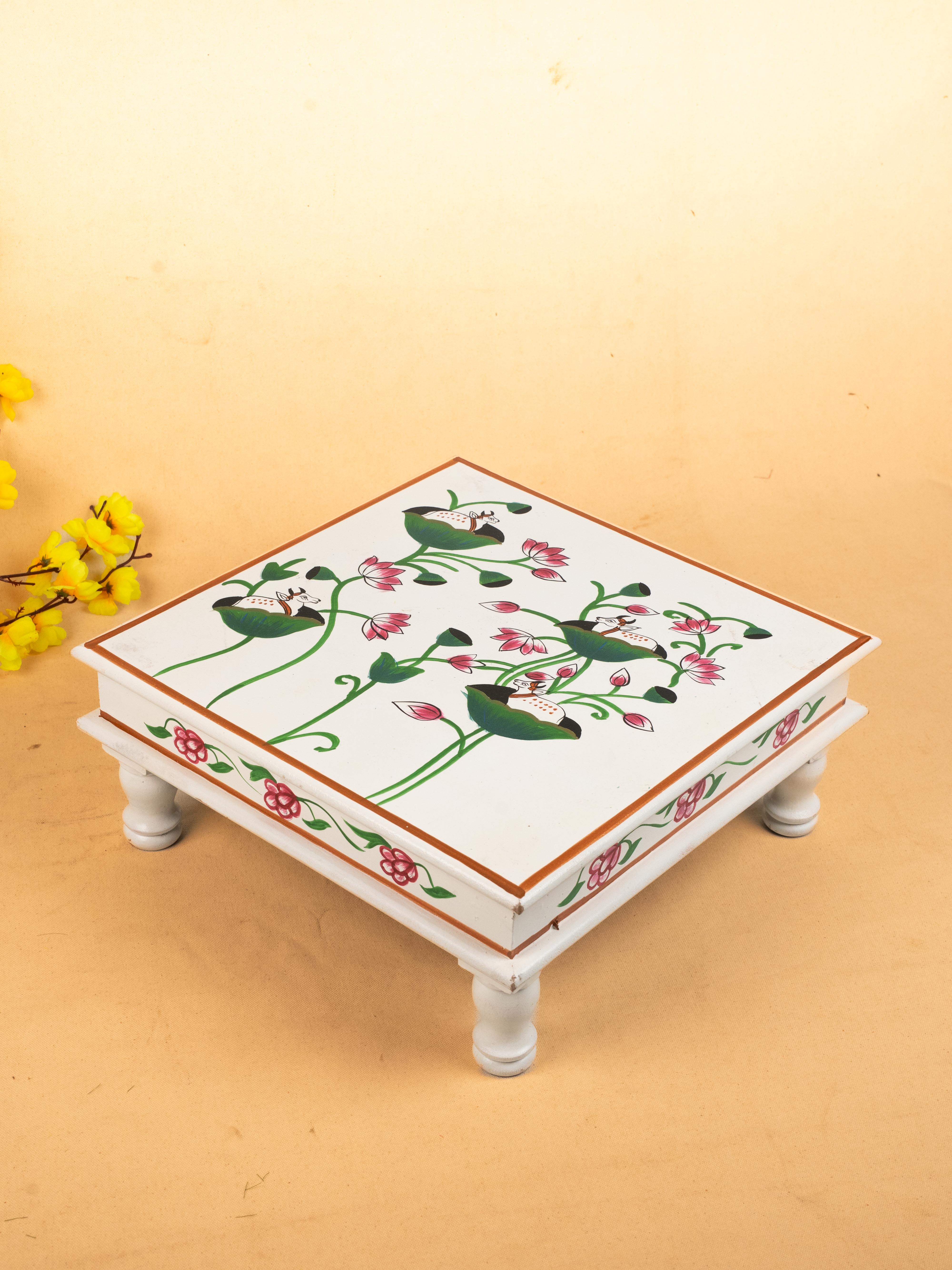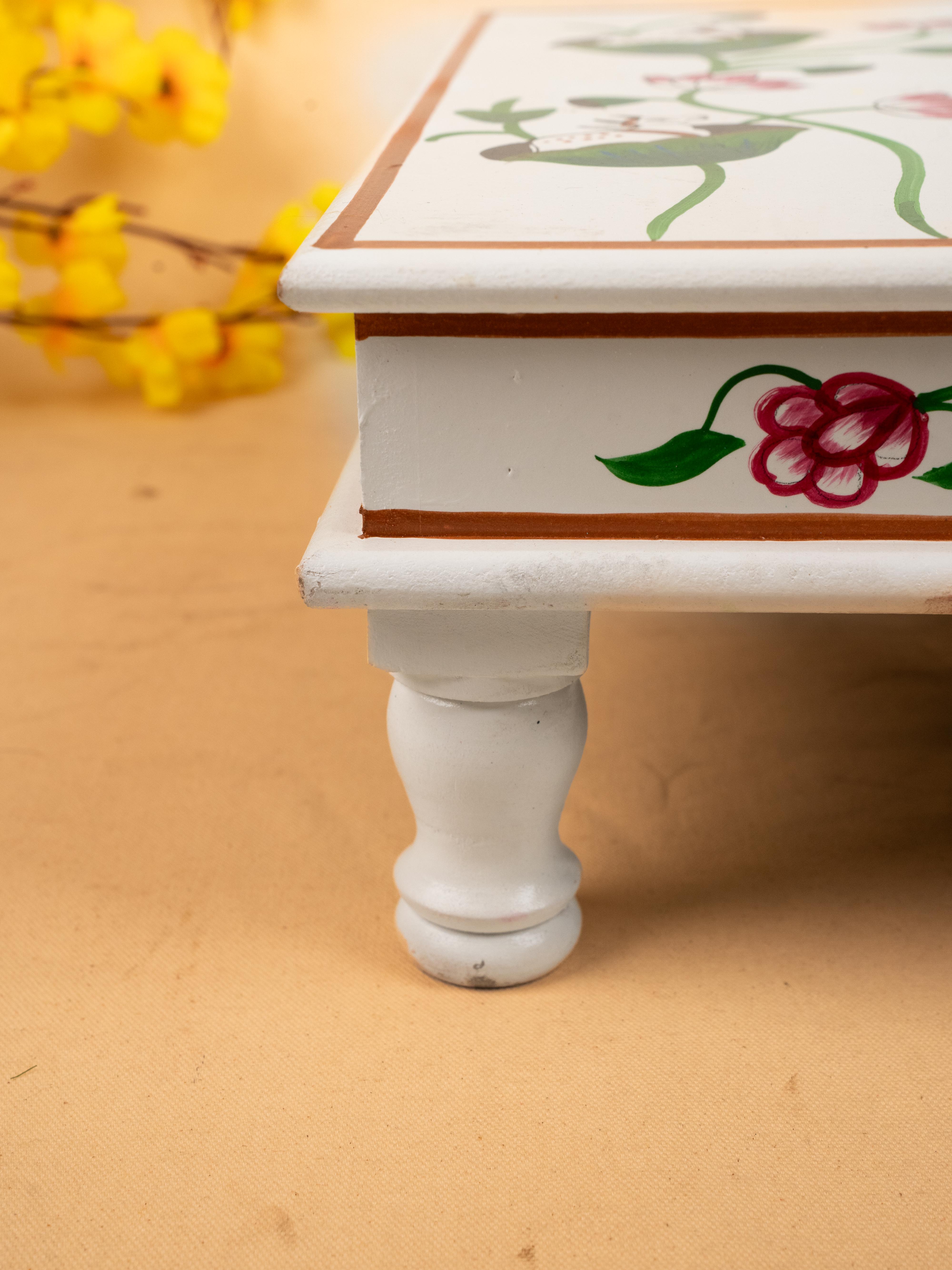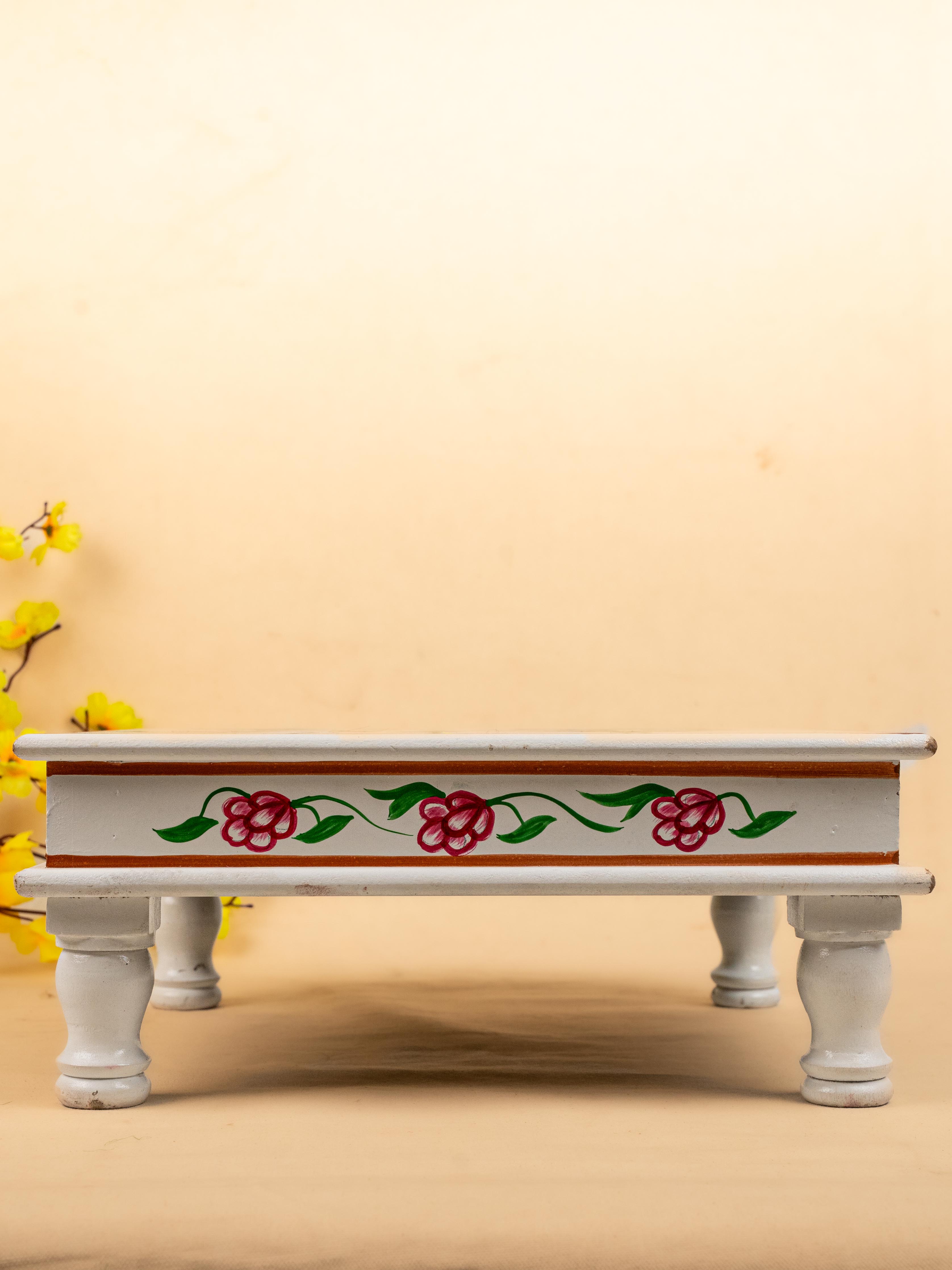 - This Traditional White Wooden Manai is a Beautiful and Artistic Addition to Home Decor and Rituals.