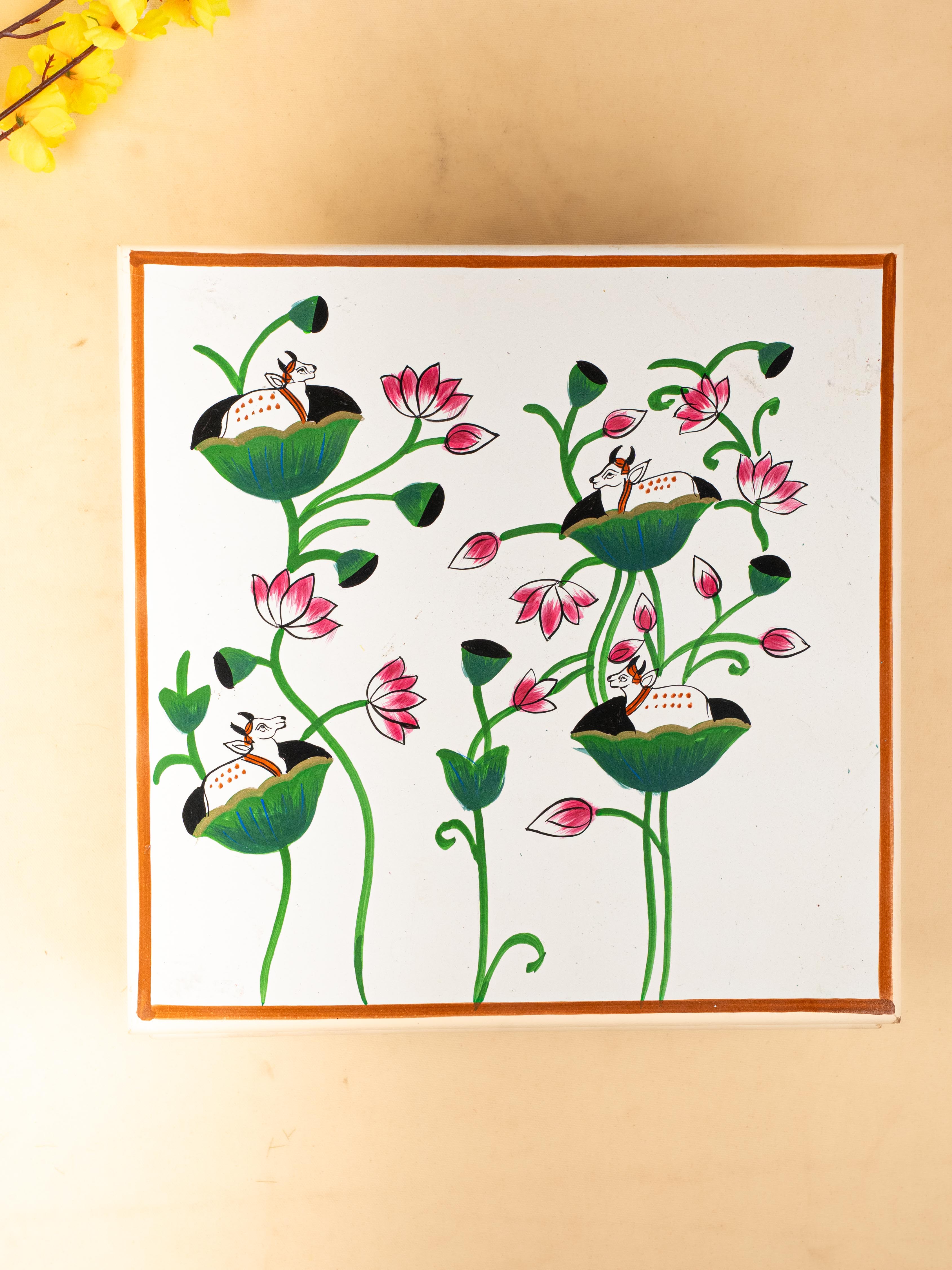 - Hand-painted with Intricate Pink Flower Patterns Inspired by Indian Motifs, Nature, or Traditional Art Forms.