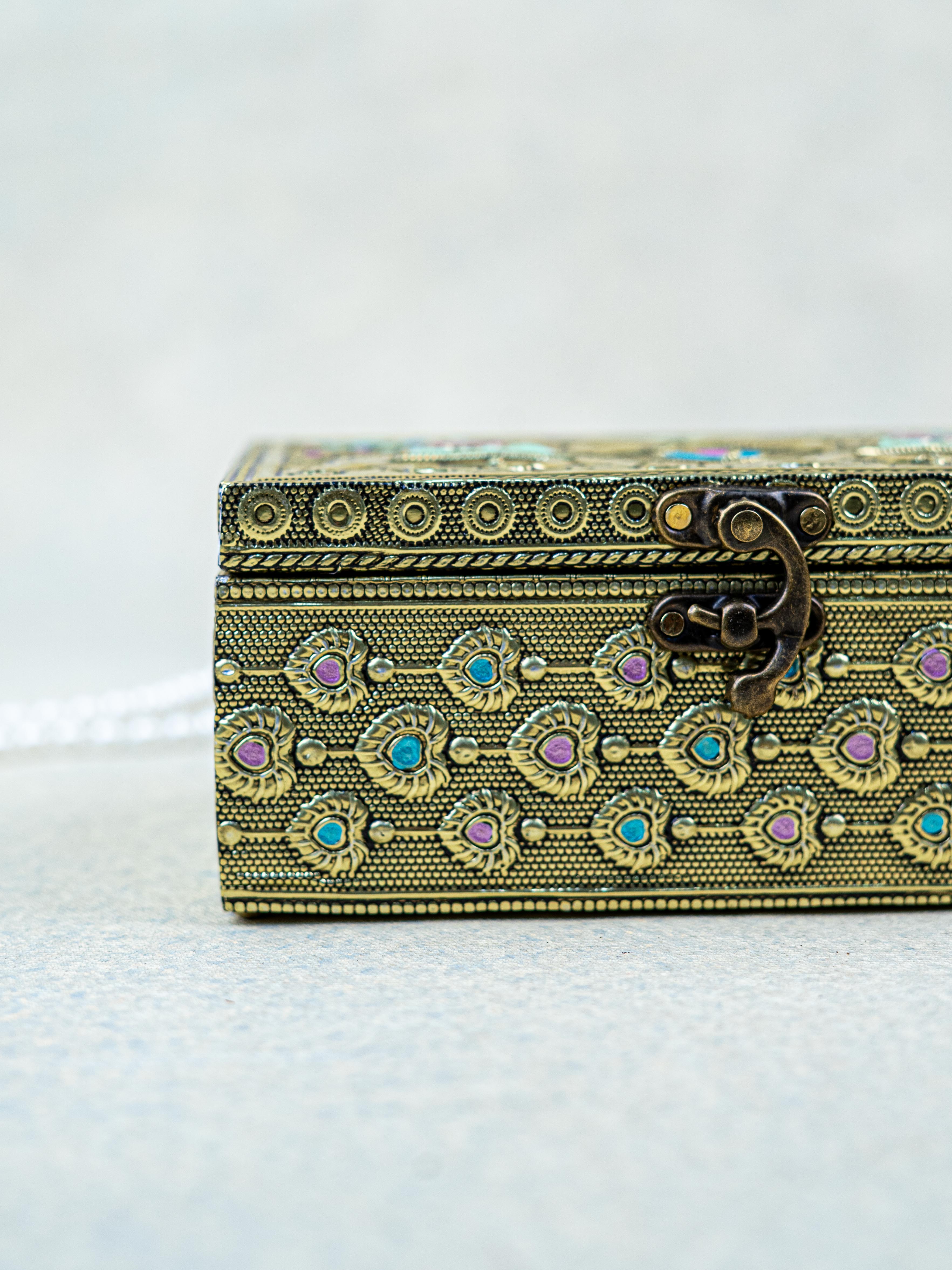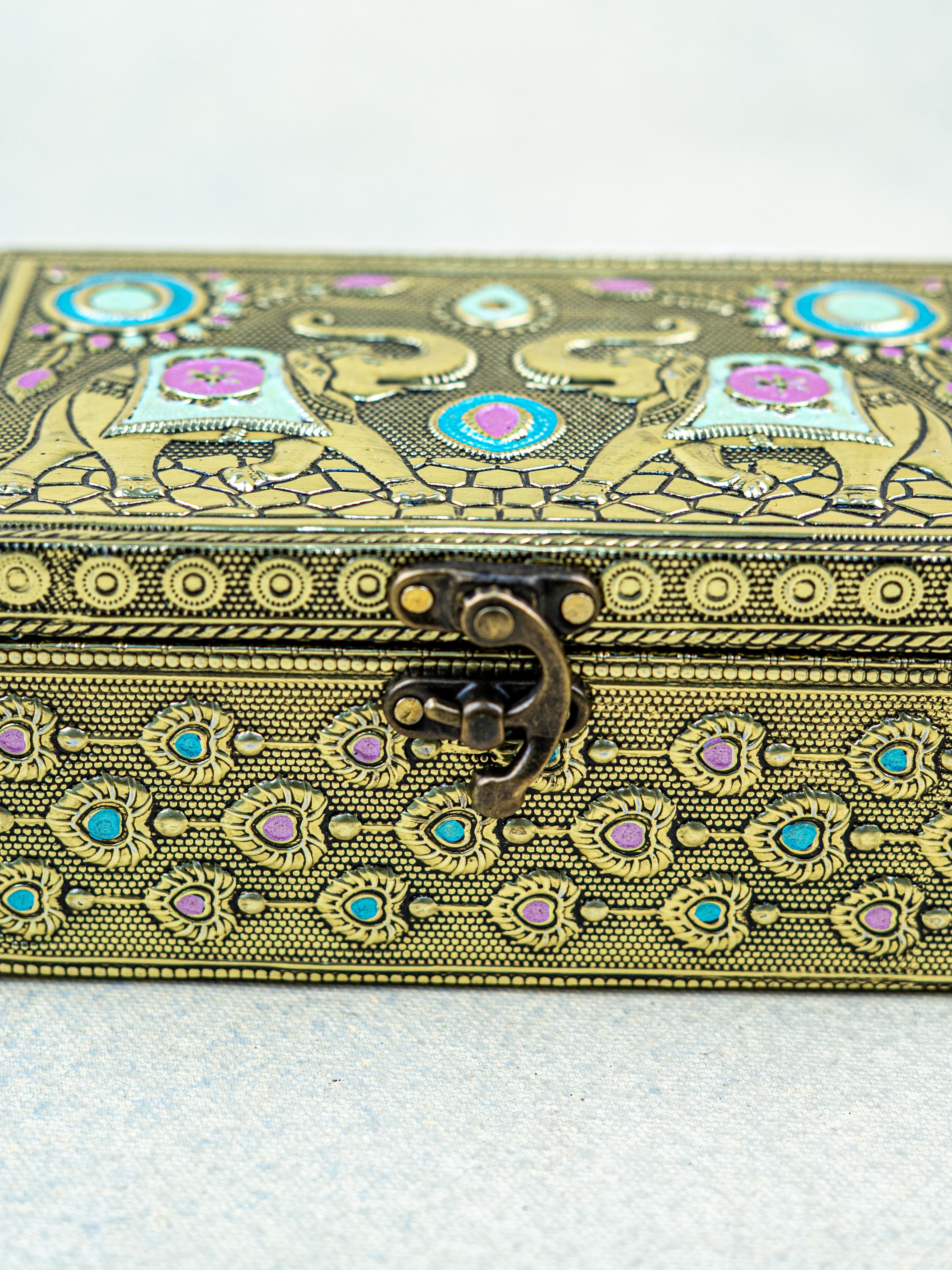 - The flawless Elephant embossing work in oxidised antique finish along with floral vines pattern surrounding the square box adds charm.