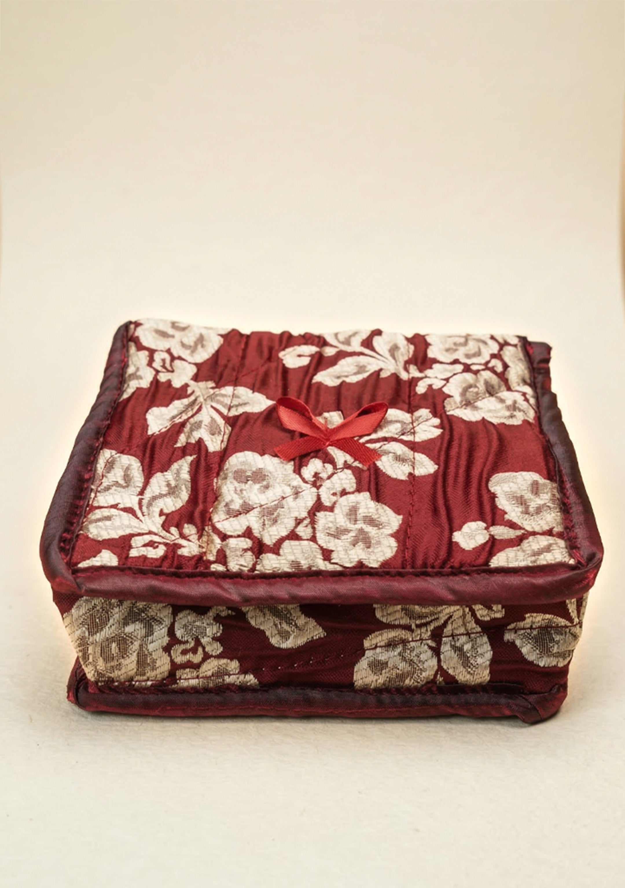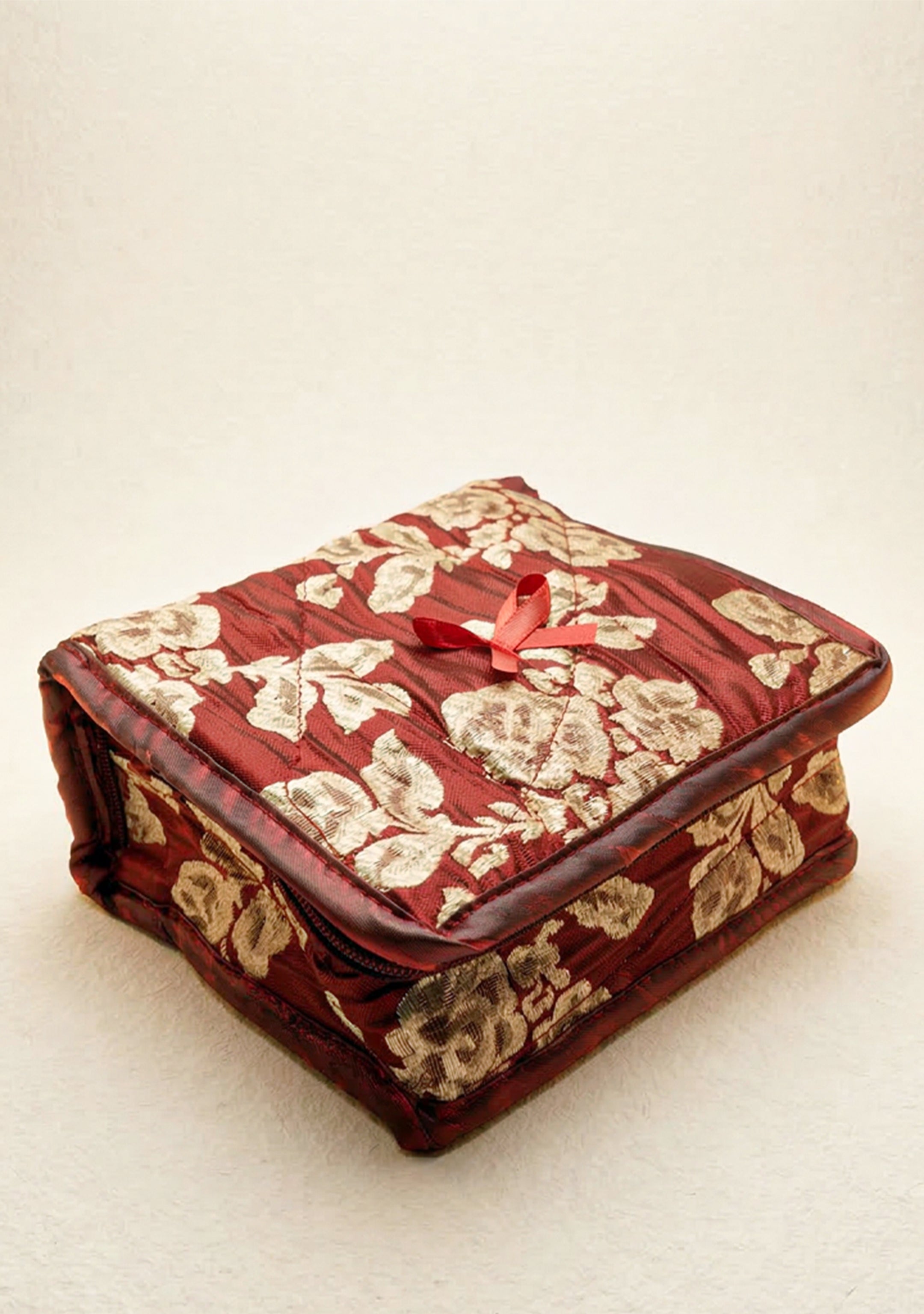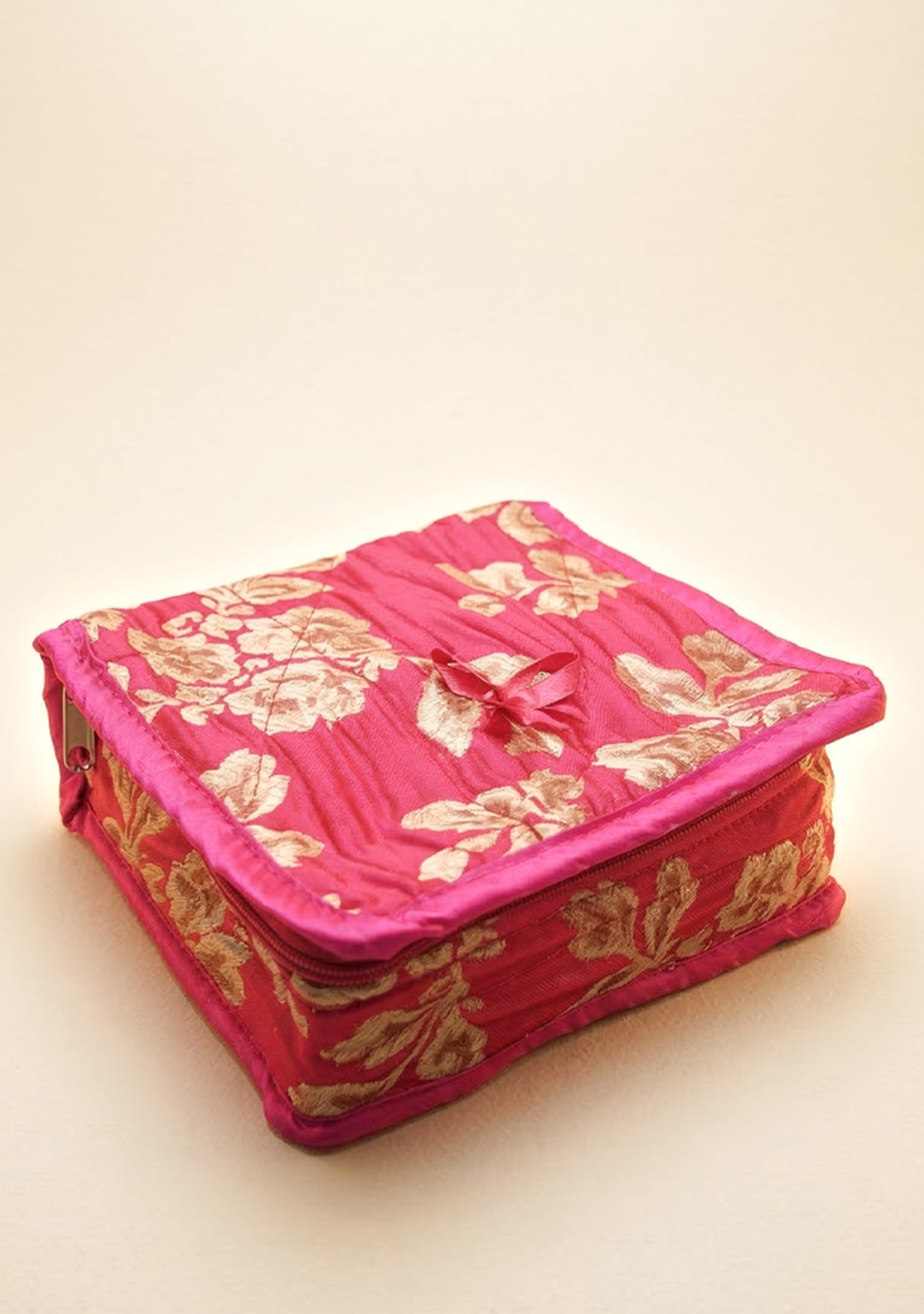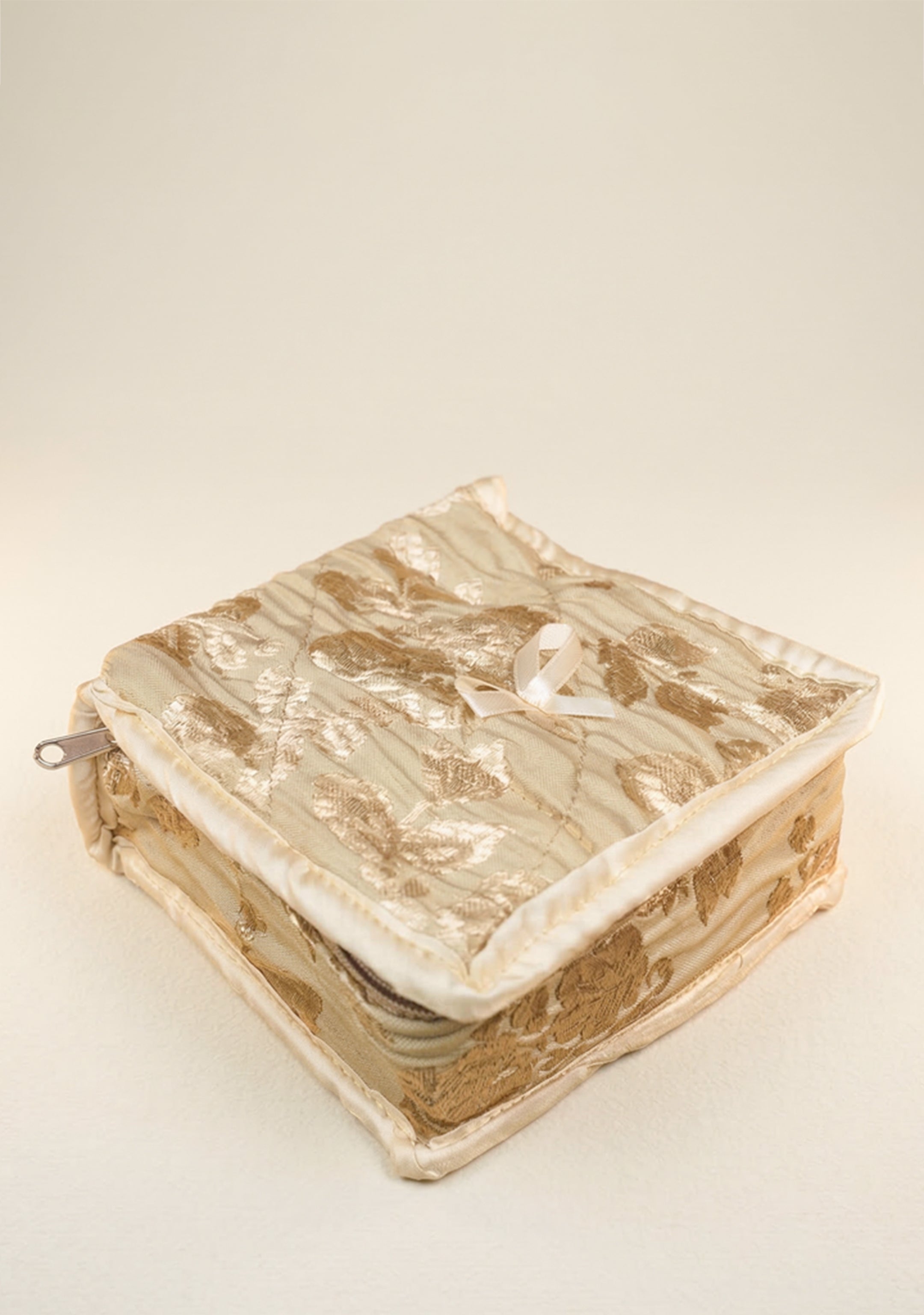 Jewel Pouch with Printed Golden Floral Design and Bow - WBG0202