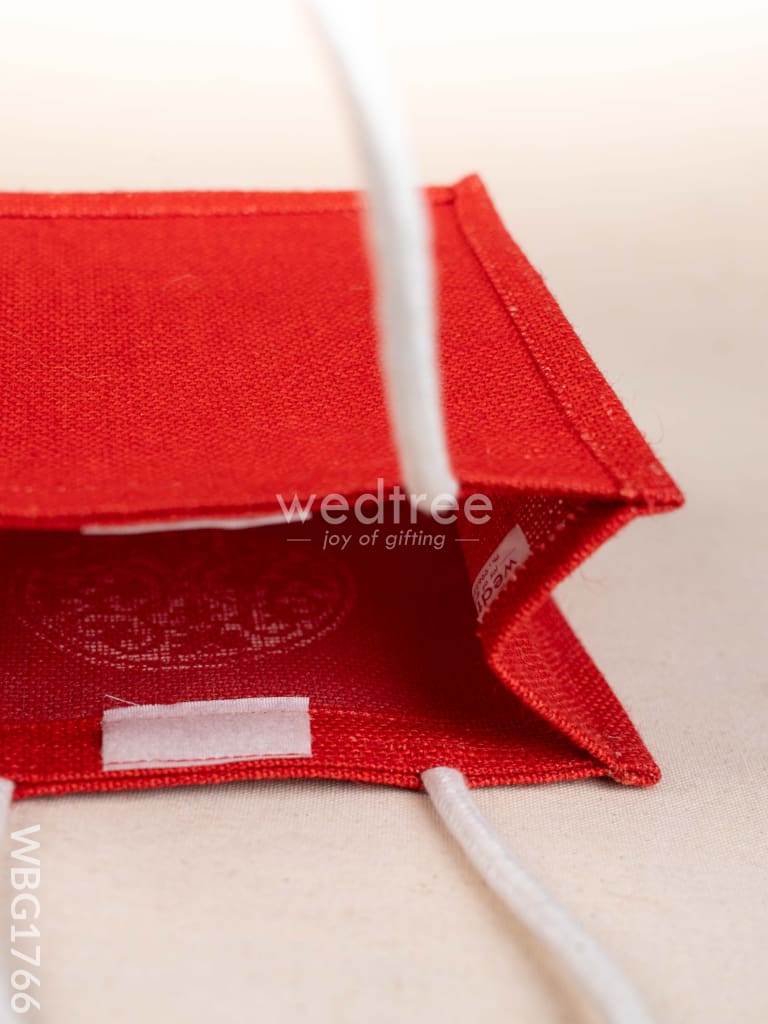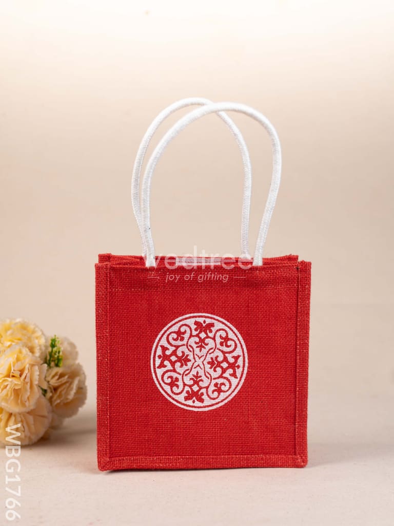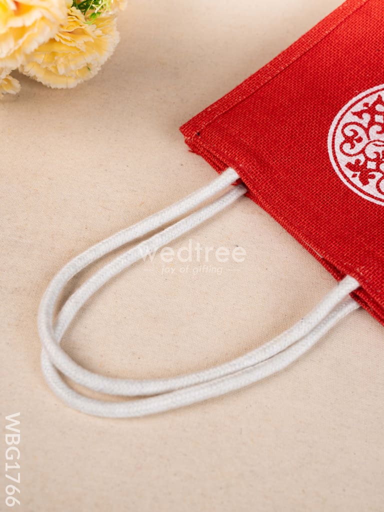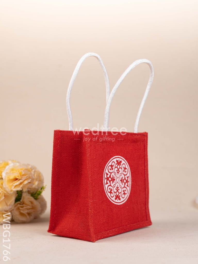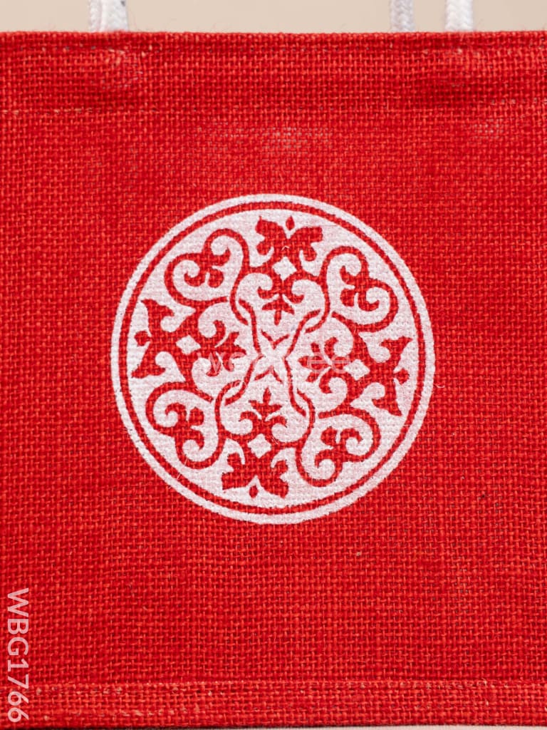 - Add a Touch of Elegance to your Eco-Friendly Lifestyle with this Vibrant Red Jute Bag, Featuring a Beautifully White Circular Motif at the Center.