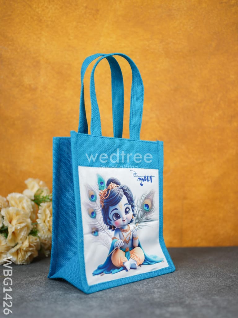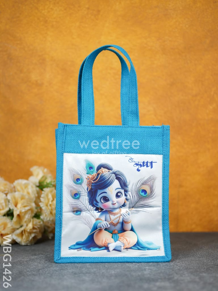 - A very cute and compact jute bag with Baby Krishna printed in the center.