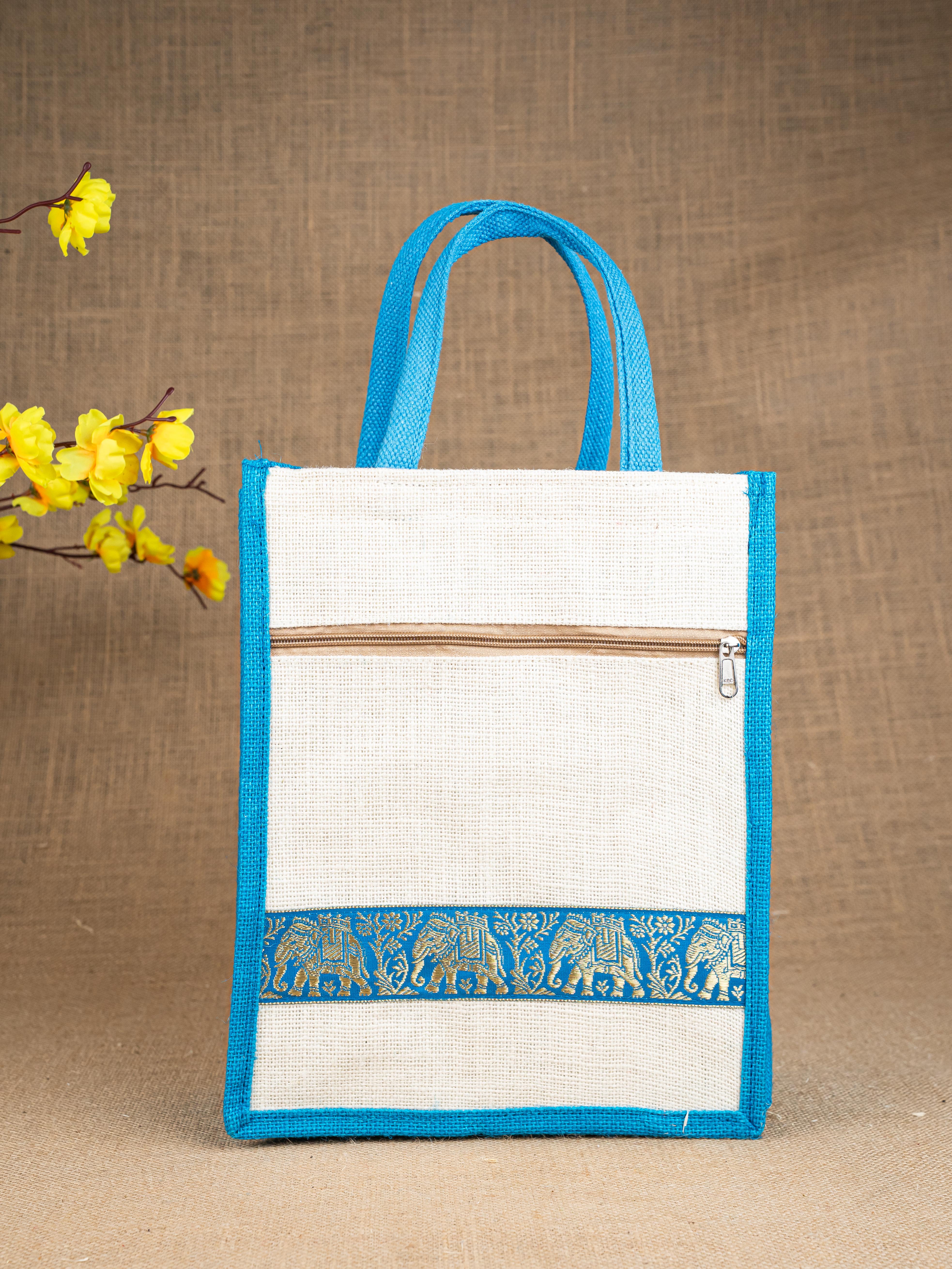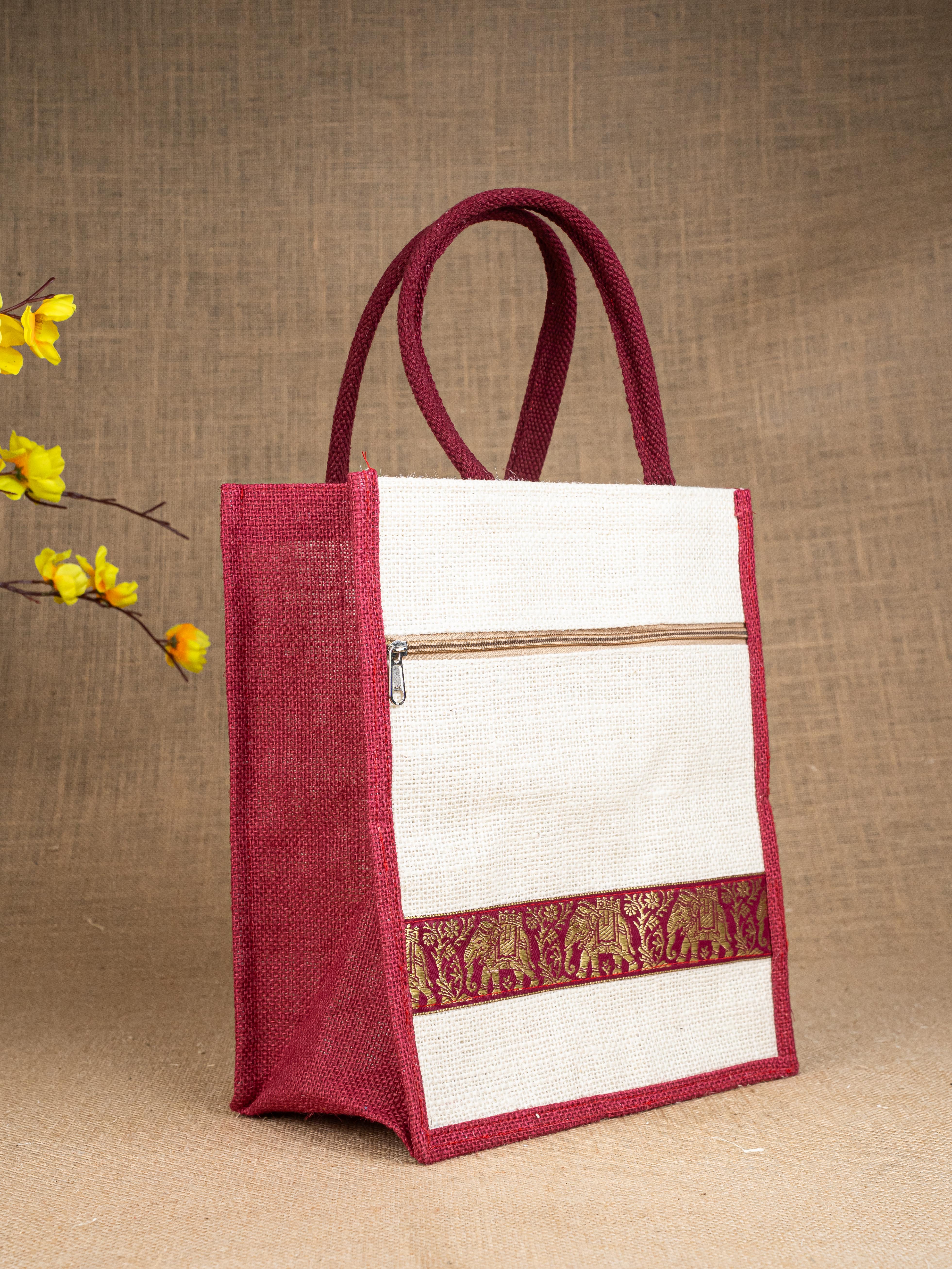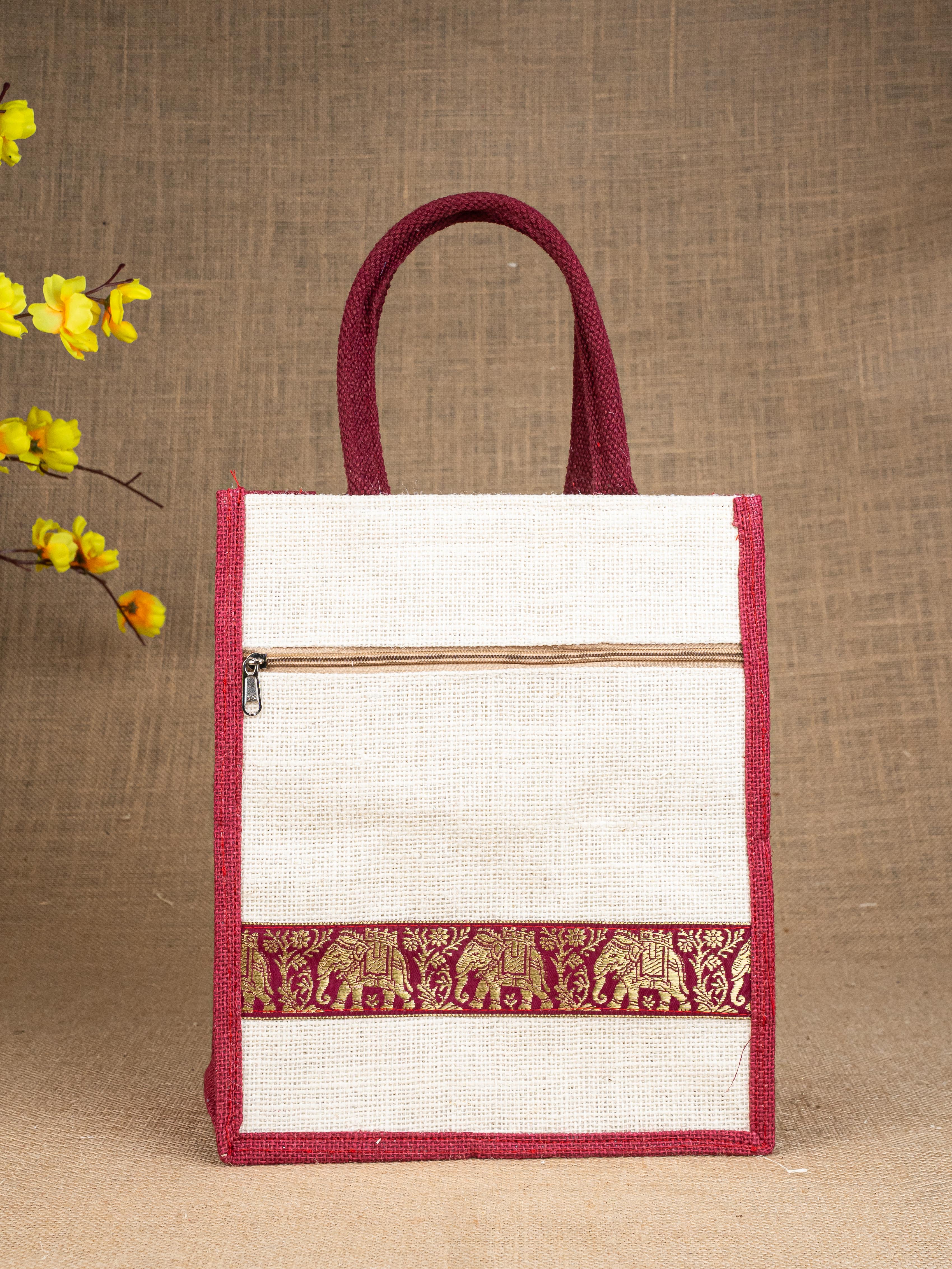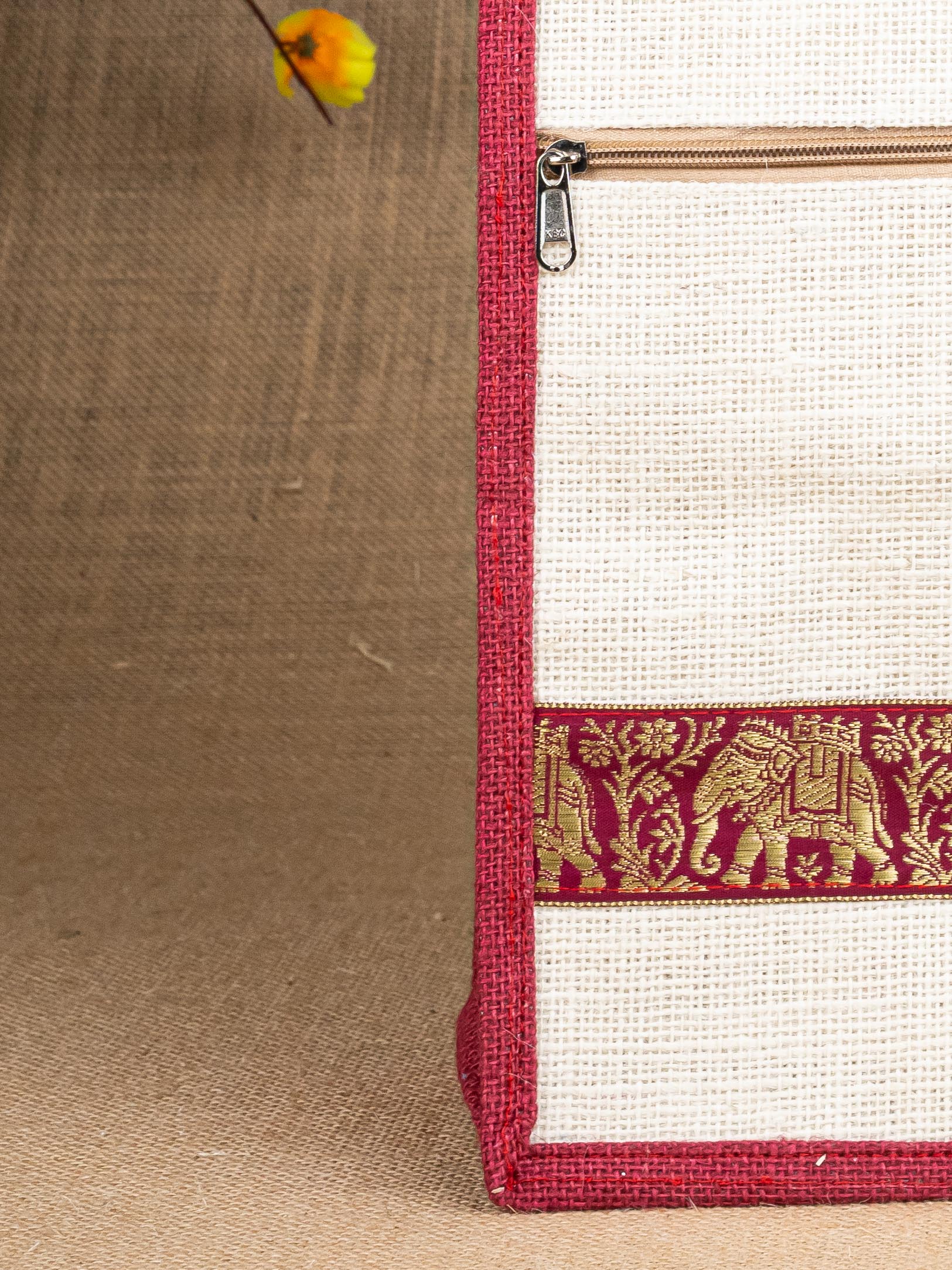 Jute Bag with Zari Lace Work - WBG0987