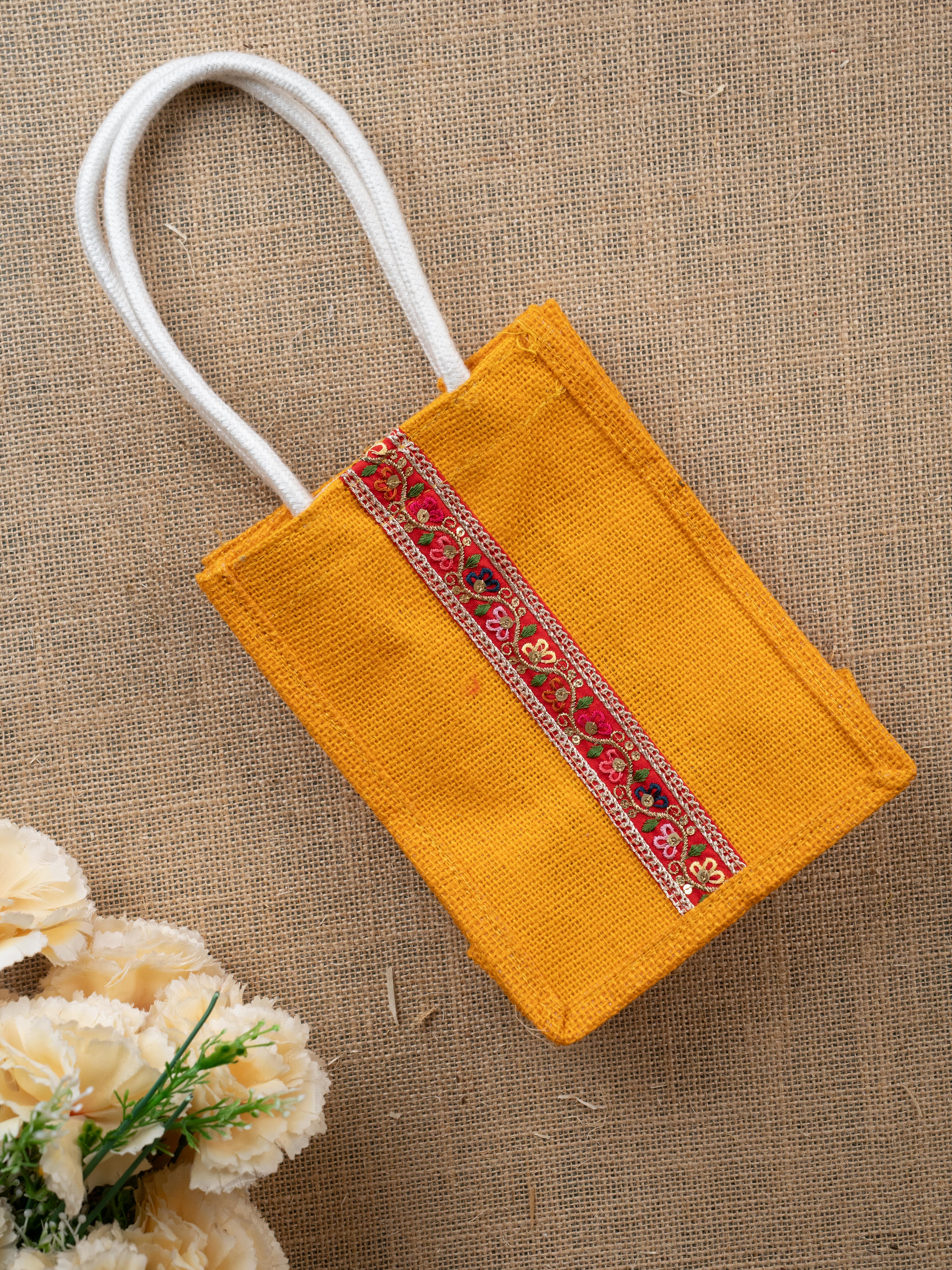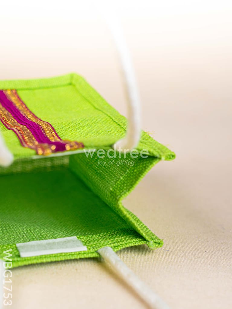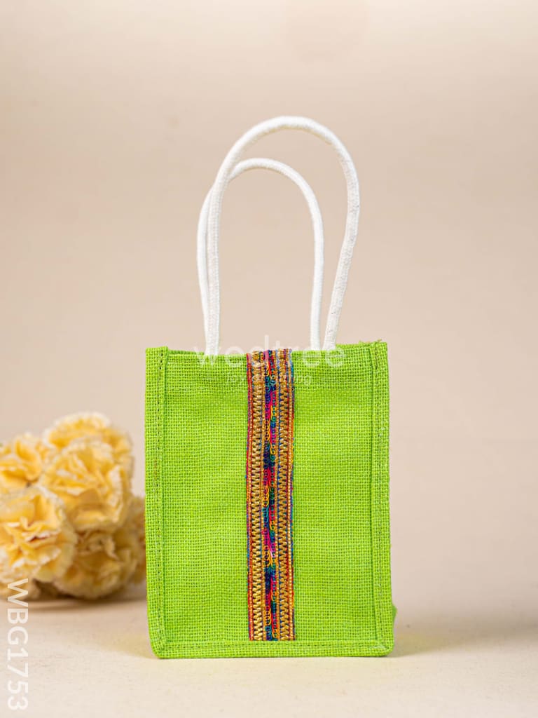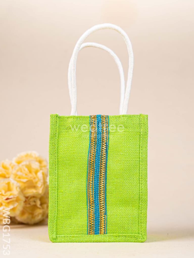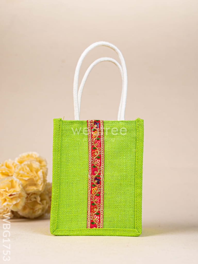 Add a Vibrant Touch to Eco-conscious Living with Our Assorted Color Jute Bags, Accentuated by a Rich, Traditional Zari Border.