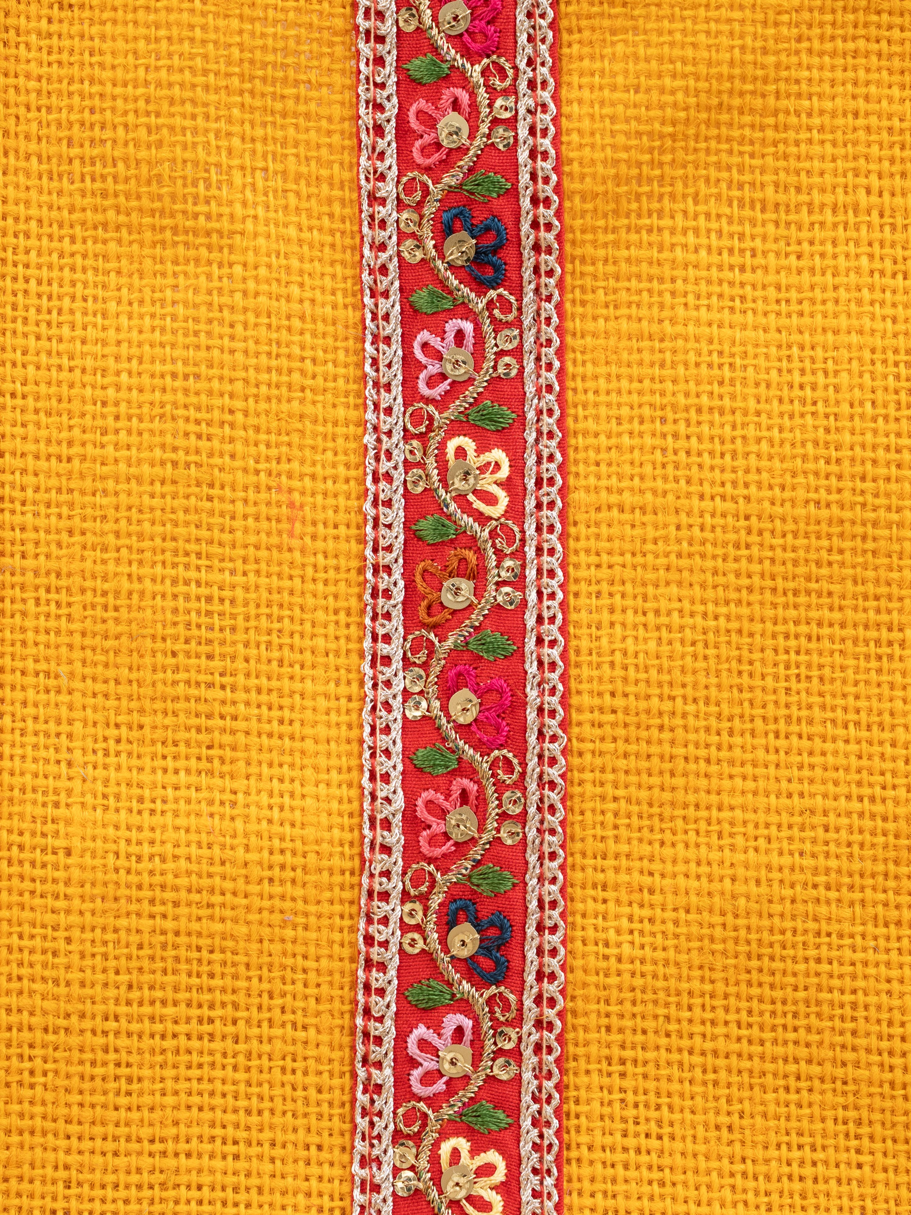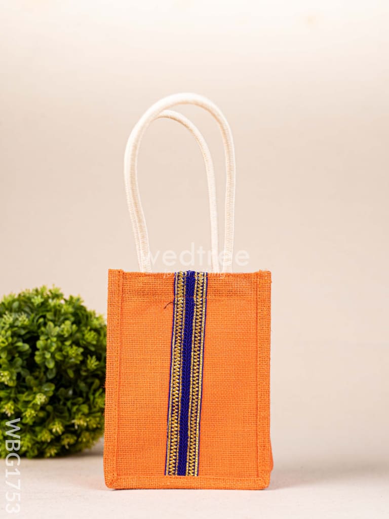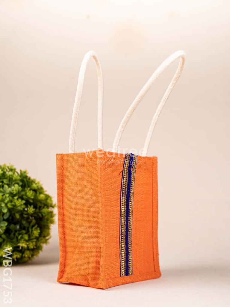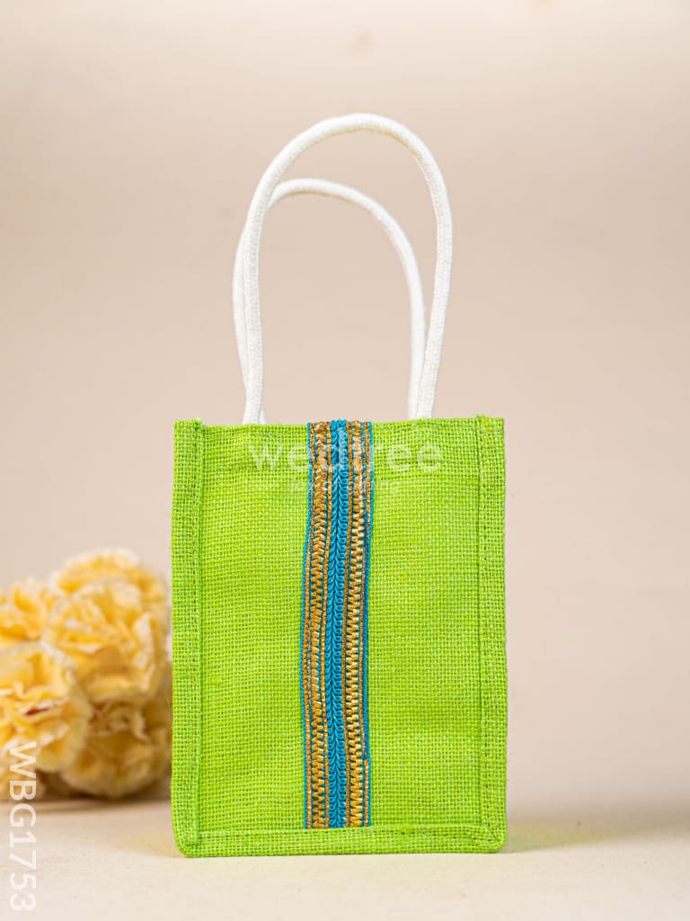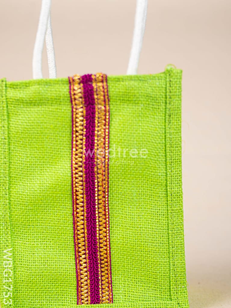 Add a Vibrant Touch to Eco-conscious Living with Our Assorted Color Jute Bags, Accentuated by a Rich, Traditional Zari Border.