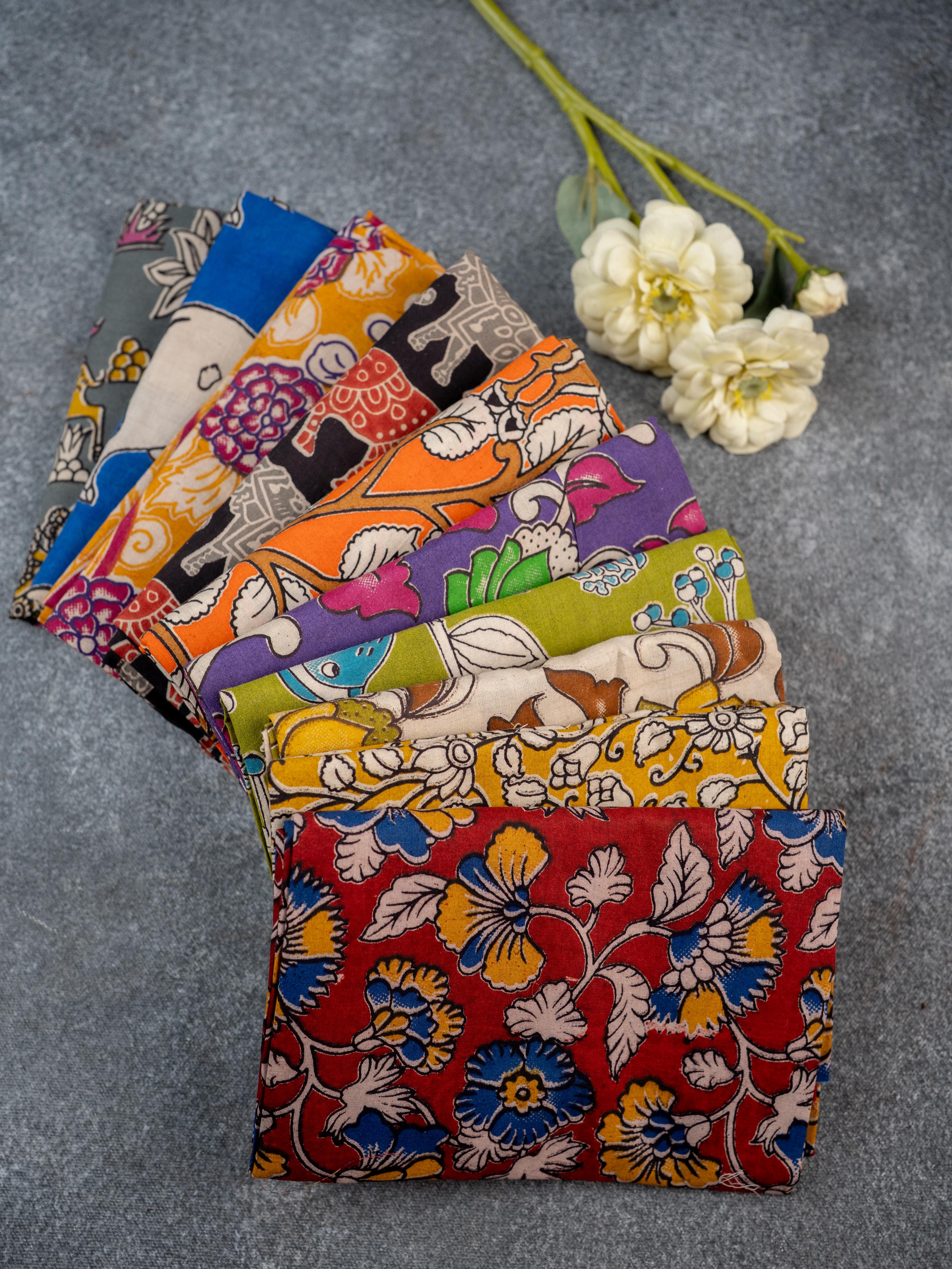 Kalamkari Blouse Bit - Set of 10 - Assorted - WL5392