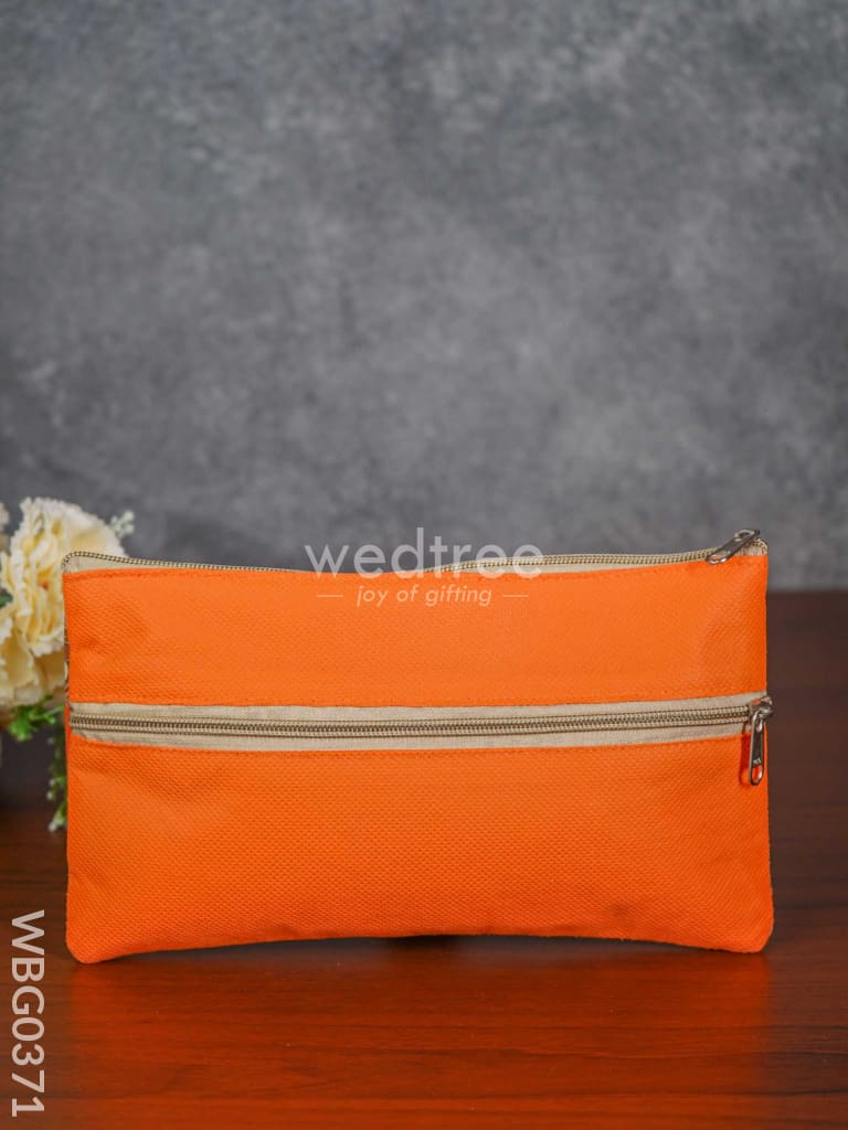 - It has single compartment enclosed by a zipper and a back zipper to hold all your essentials.