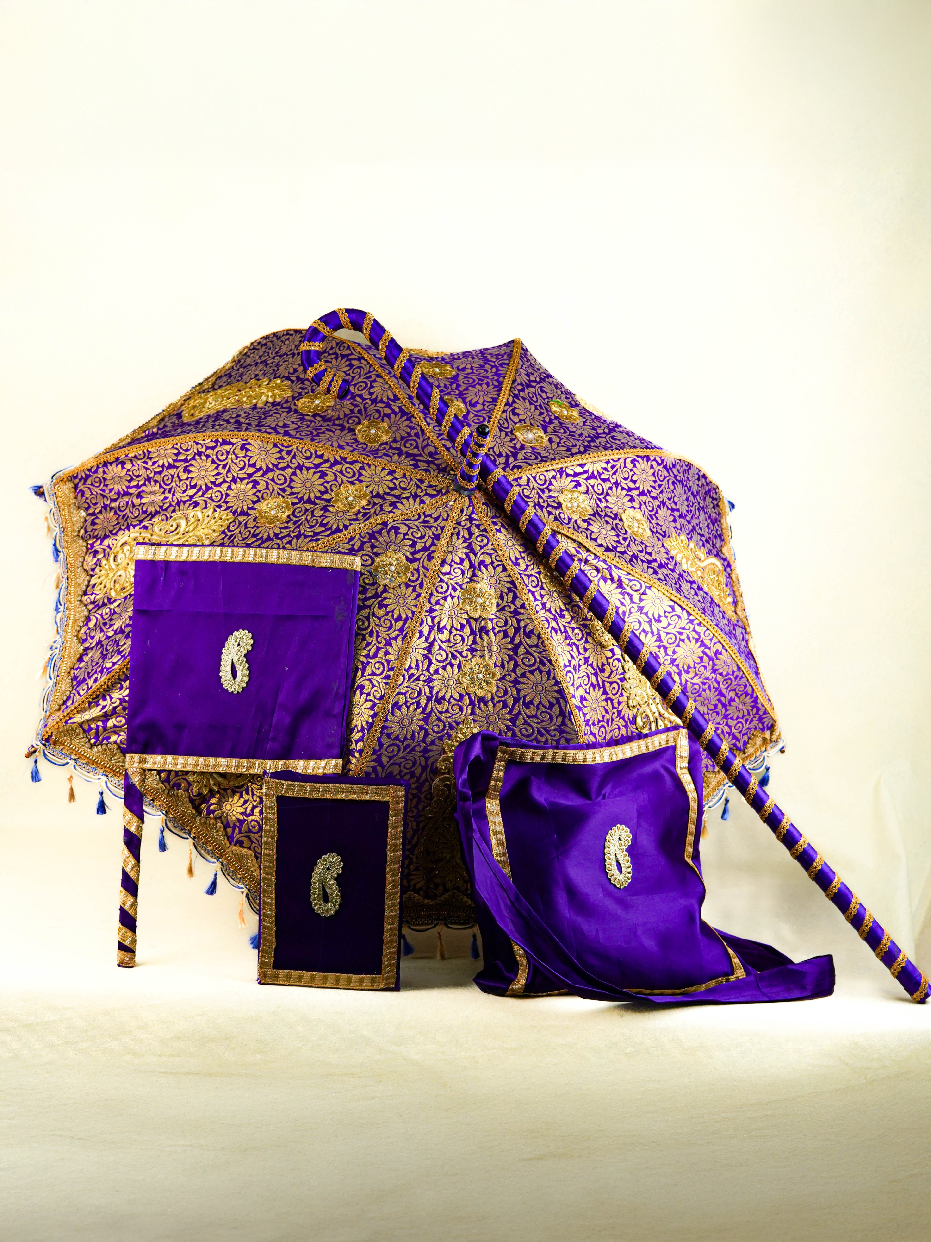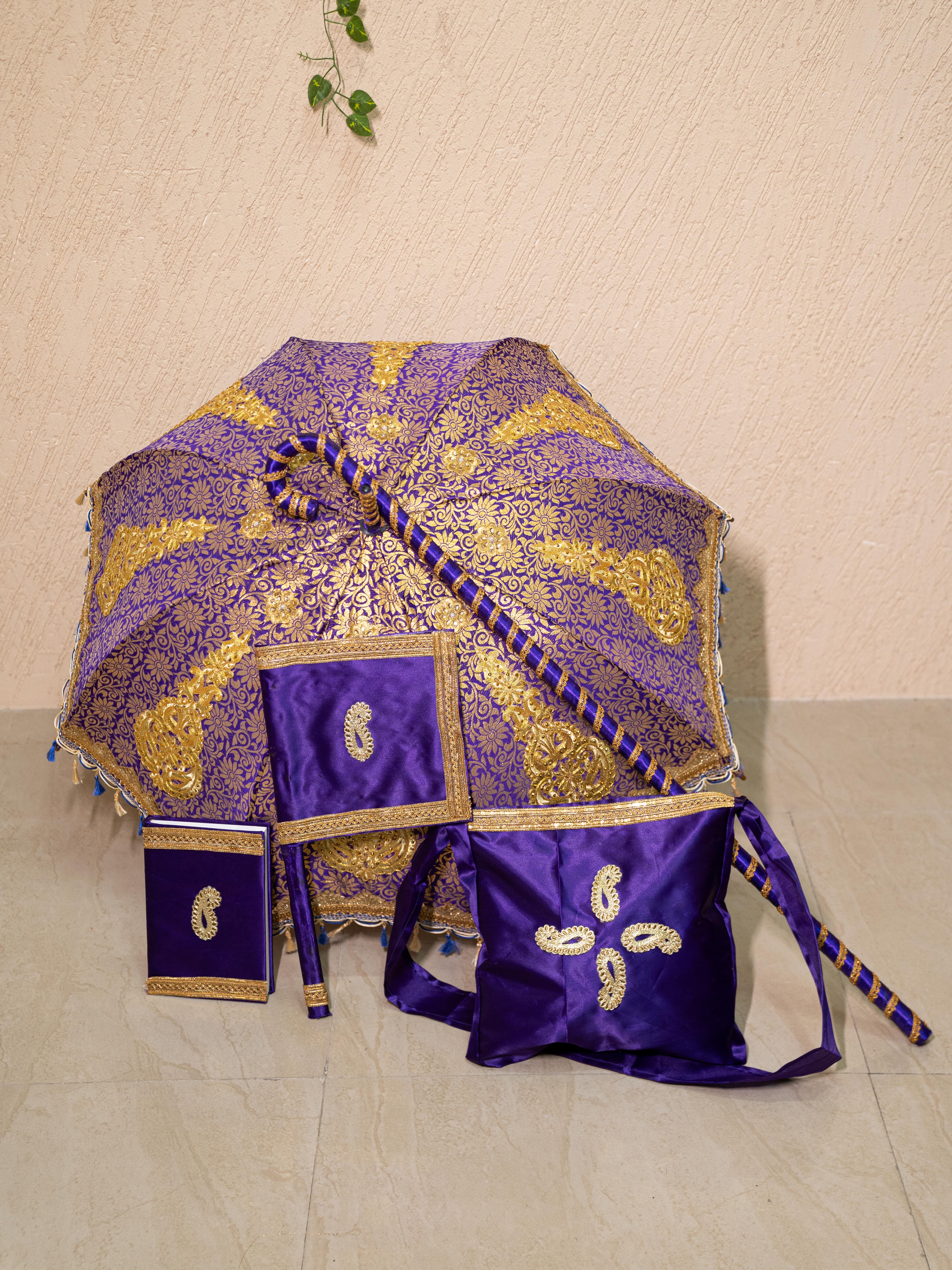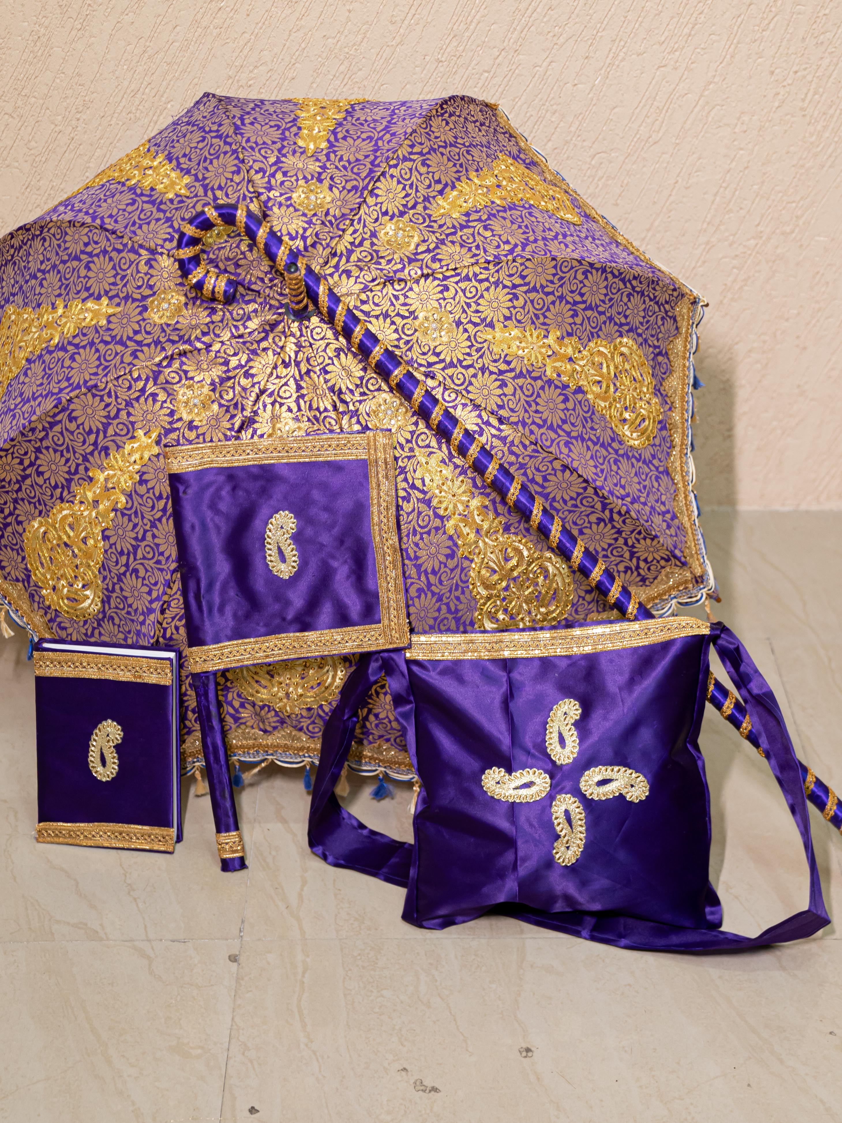 - The set contains an umbrella, walking stick, hand fan, side bag and a book (Sundarakandam from Ramayana).