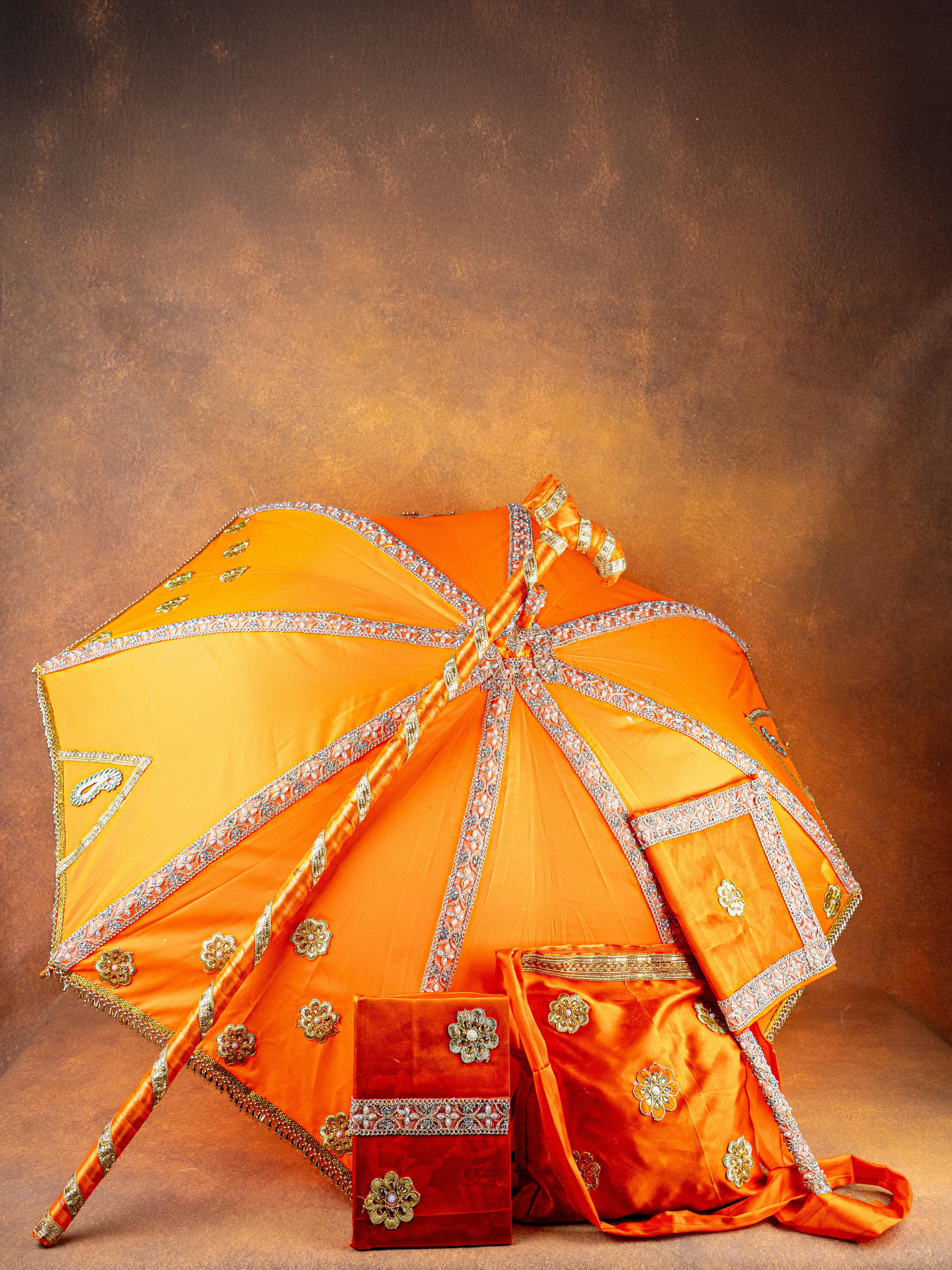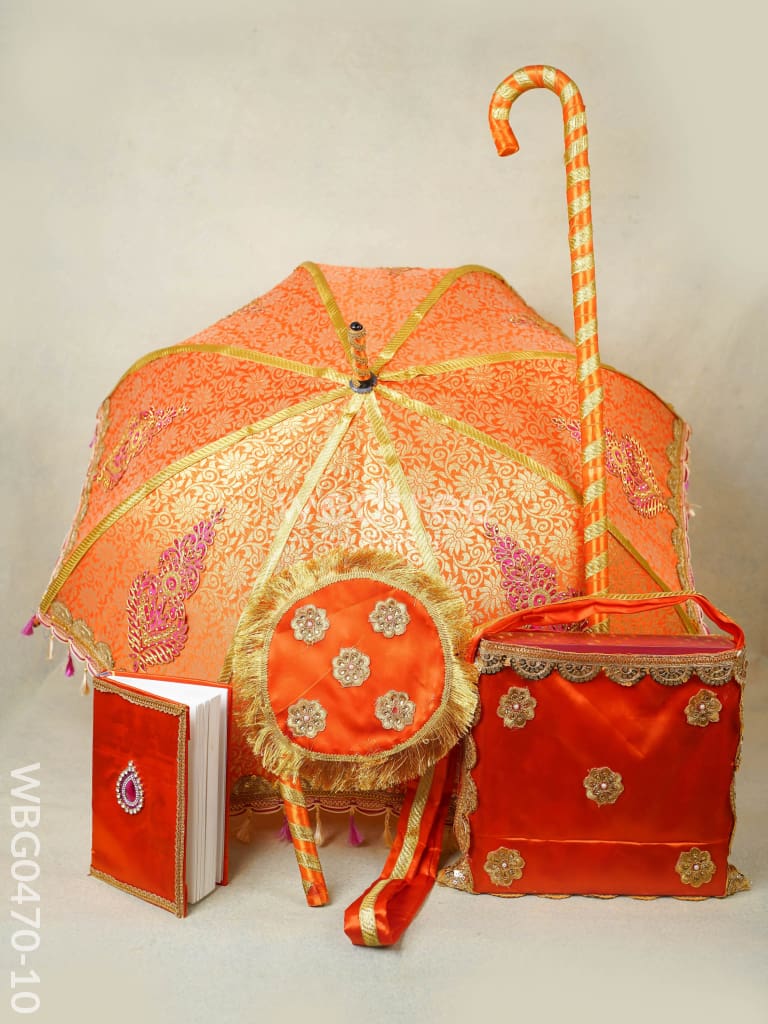 - The set contains an umbrella, walking stick, hand fan, side bag and a book - Sundarakandam from Ramayana.