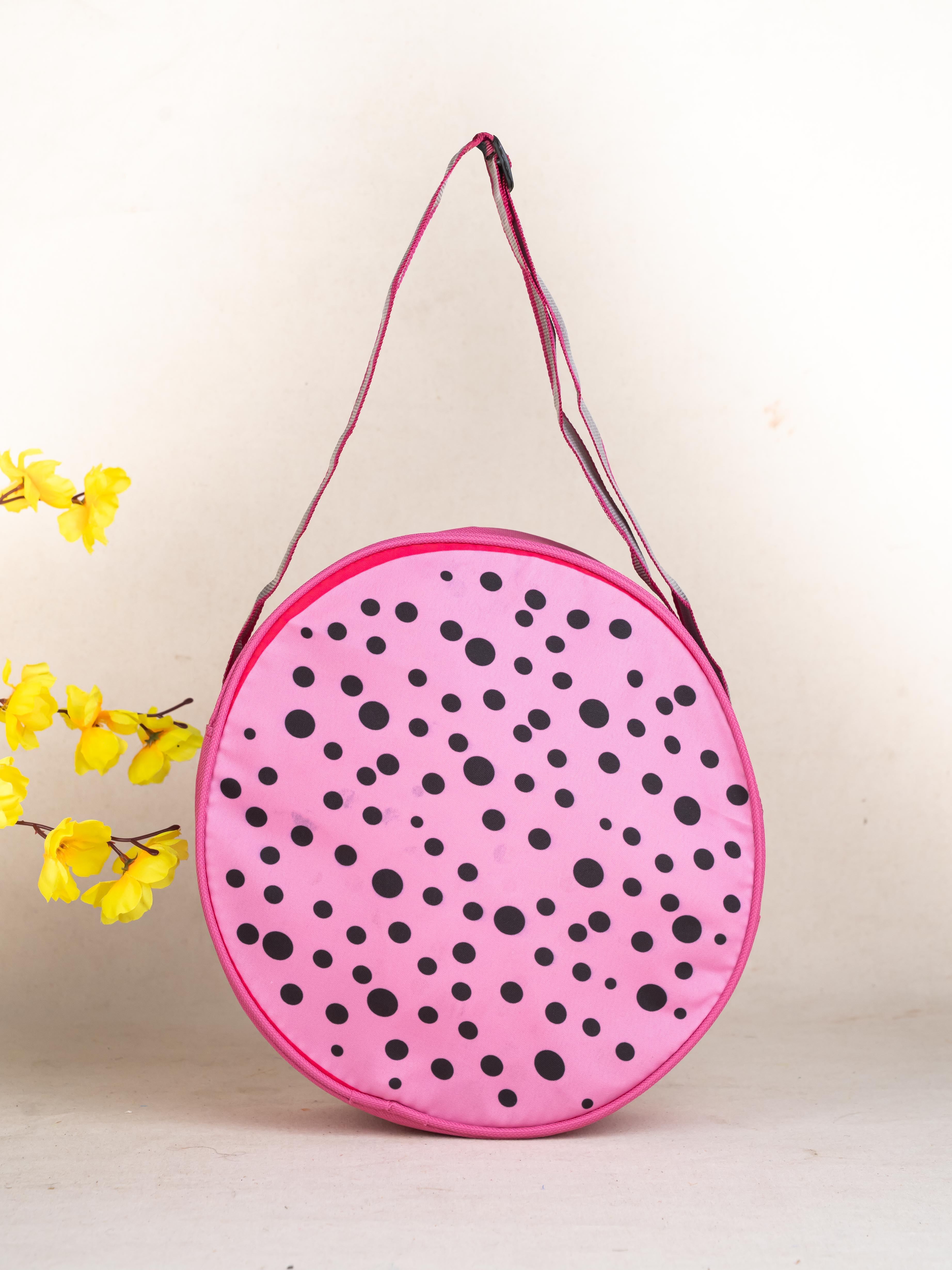 - Add a Dash of Sparkle and Imagination to your Child’s Day with this Adorable Pink with Black Dots Sling Bag!