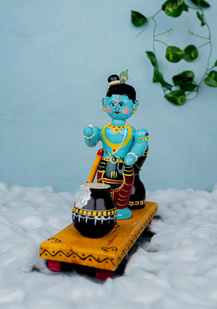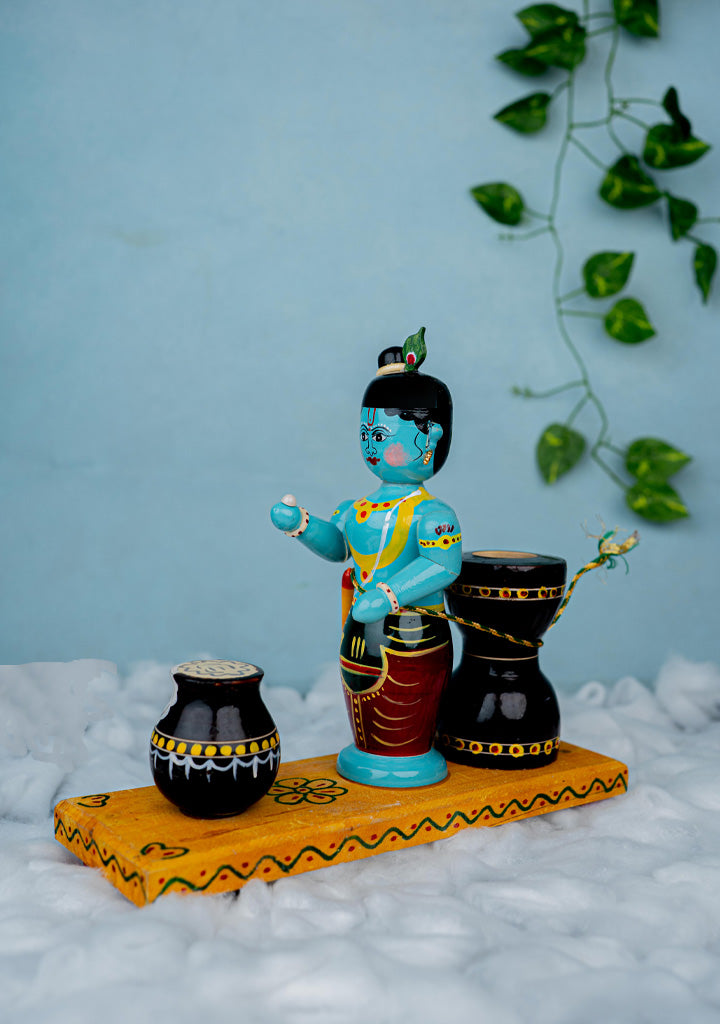 - This is a Hand-Painted Wooden Figurine Depicting Lord Krishna in his Child Form, popularly known as "Bal Krishna" (the Butter Thief).