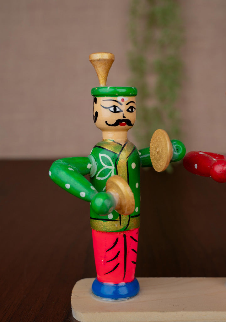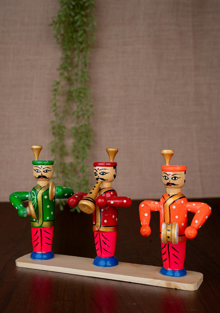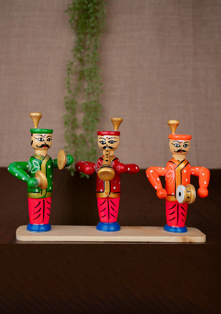 - This is a Vibrant, Hand-Painted Wooden Showpiece Depicting Three Traditional Indian Band Musicians.