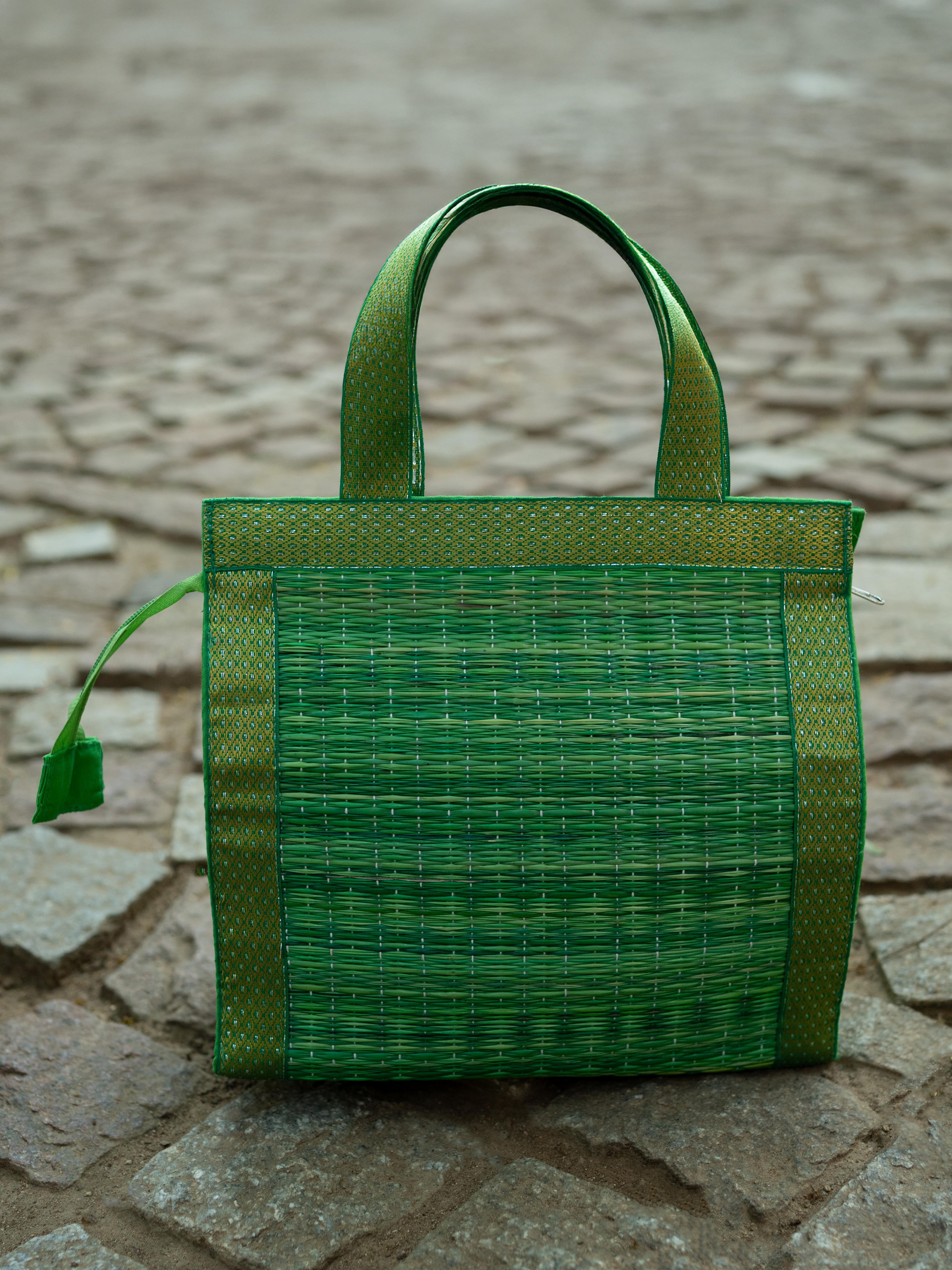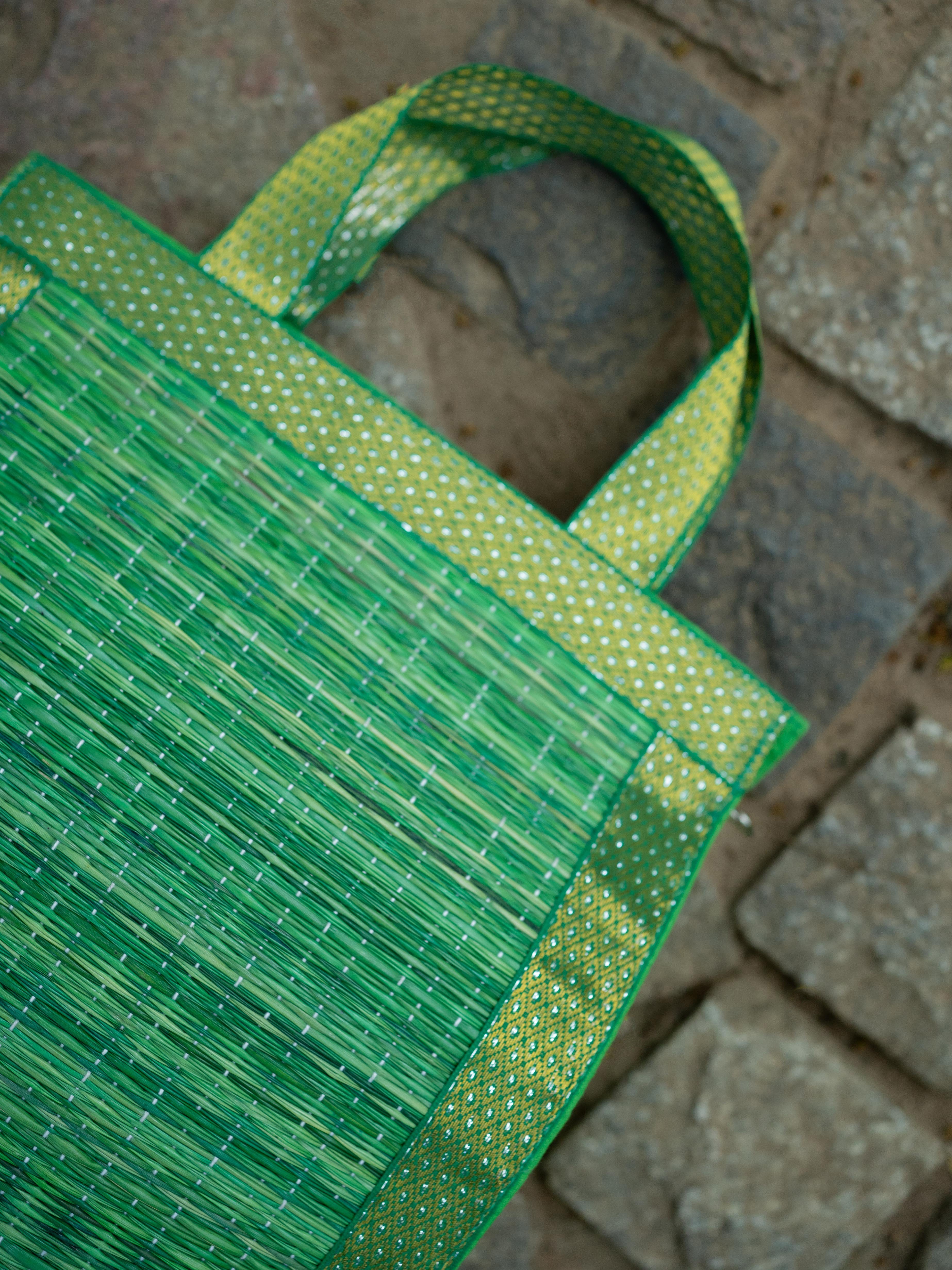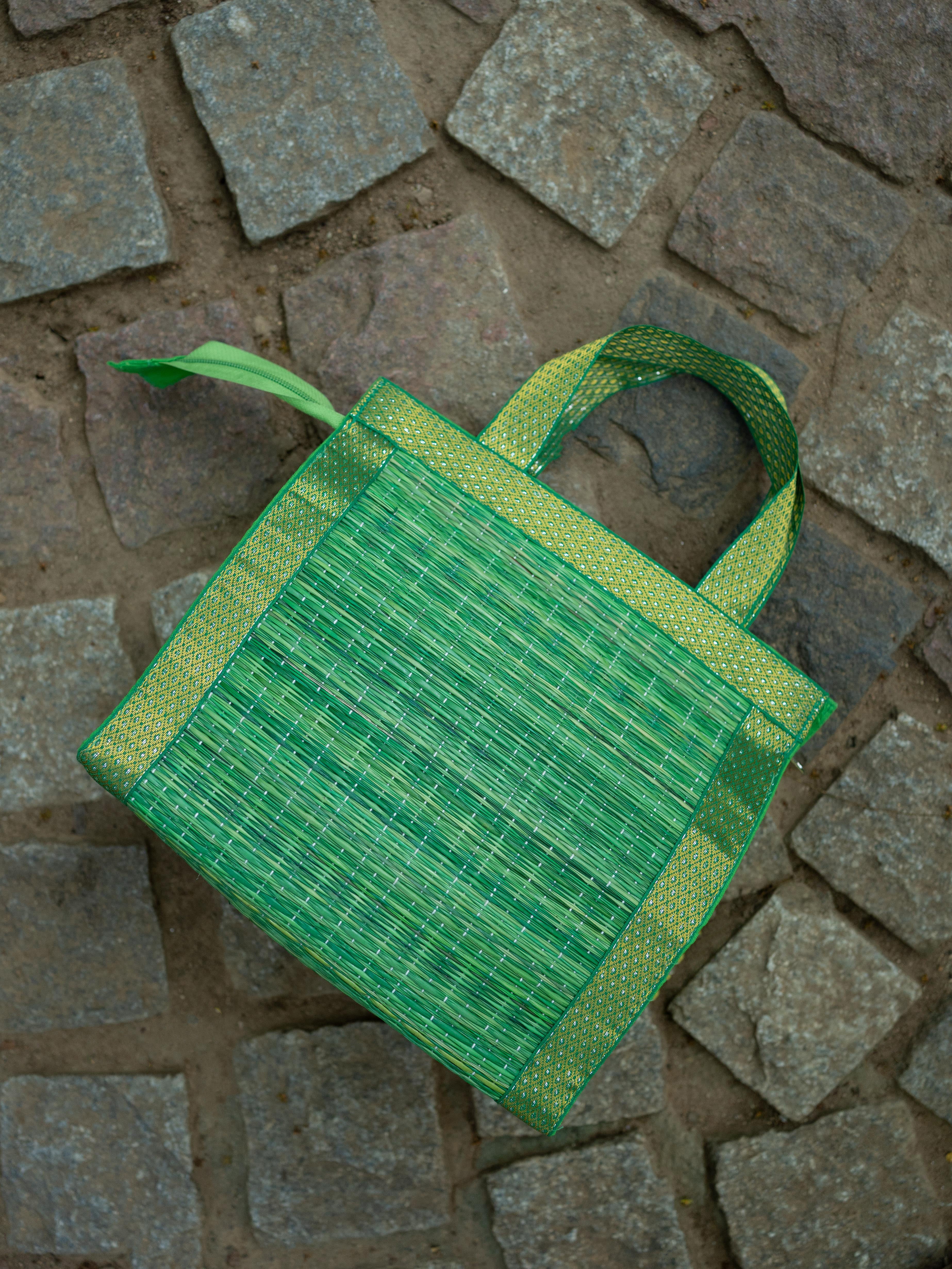 - Handcrafted Green Korai Bag, made from Traditional Korai Grass Weaving that Gives it a Natural, Eco-Friendly Appeal.