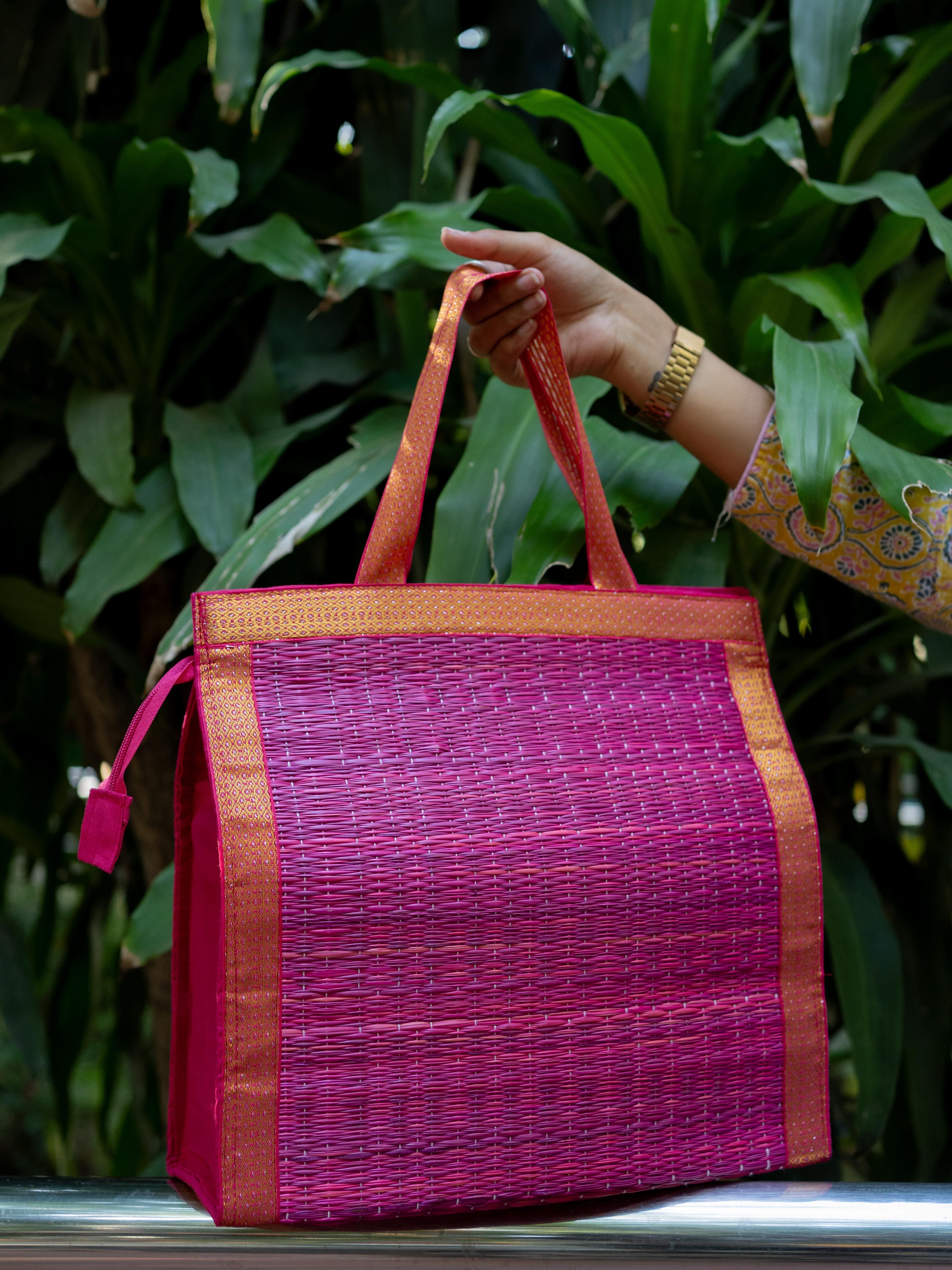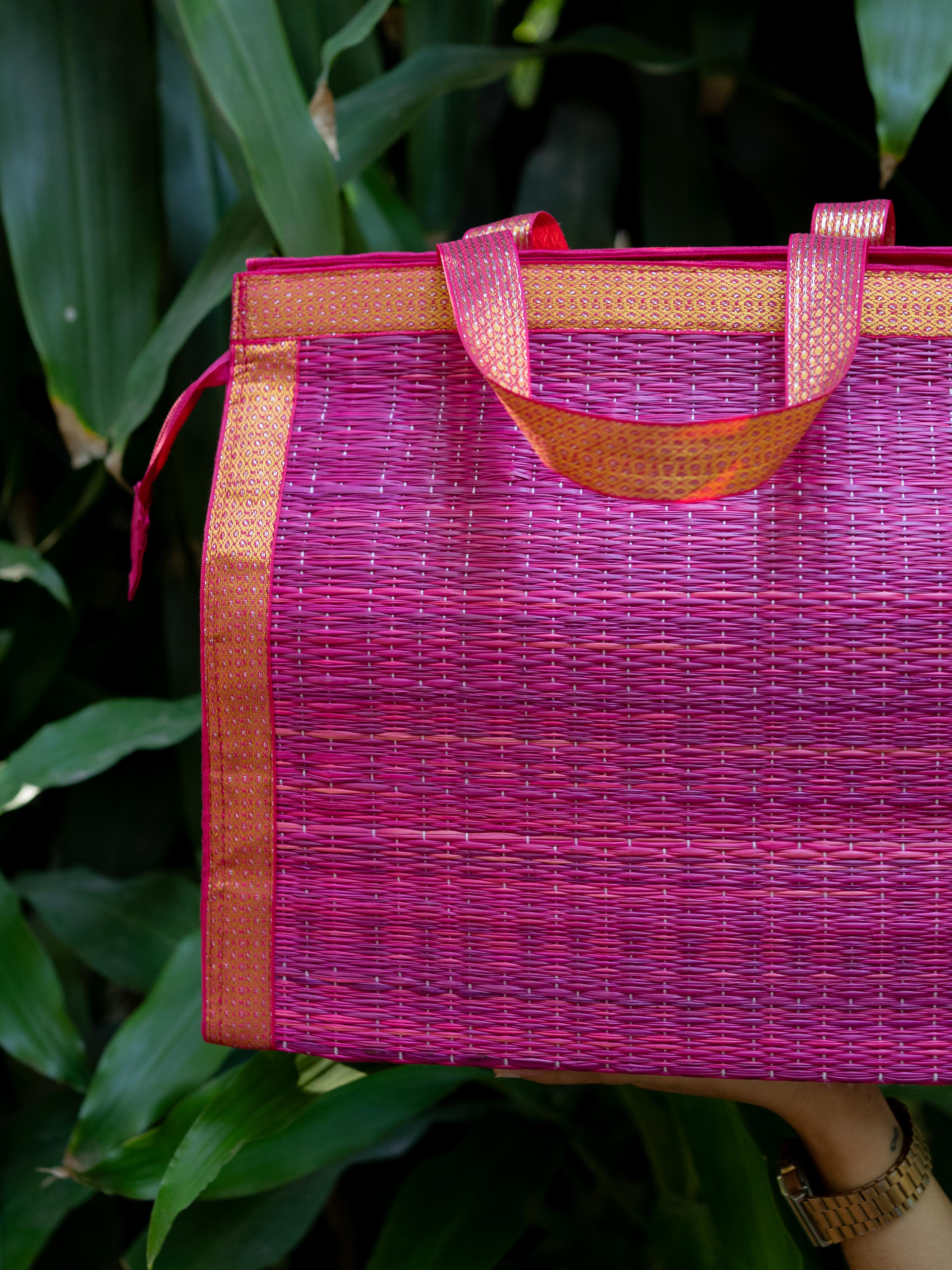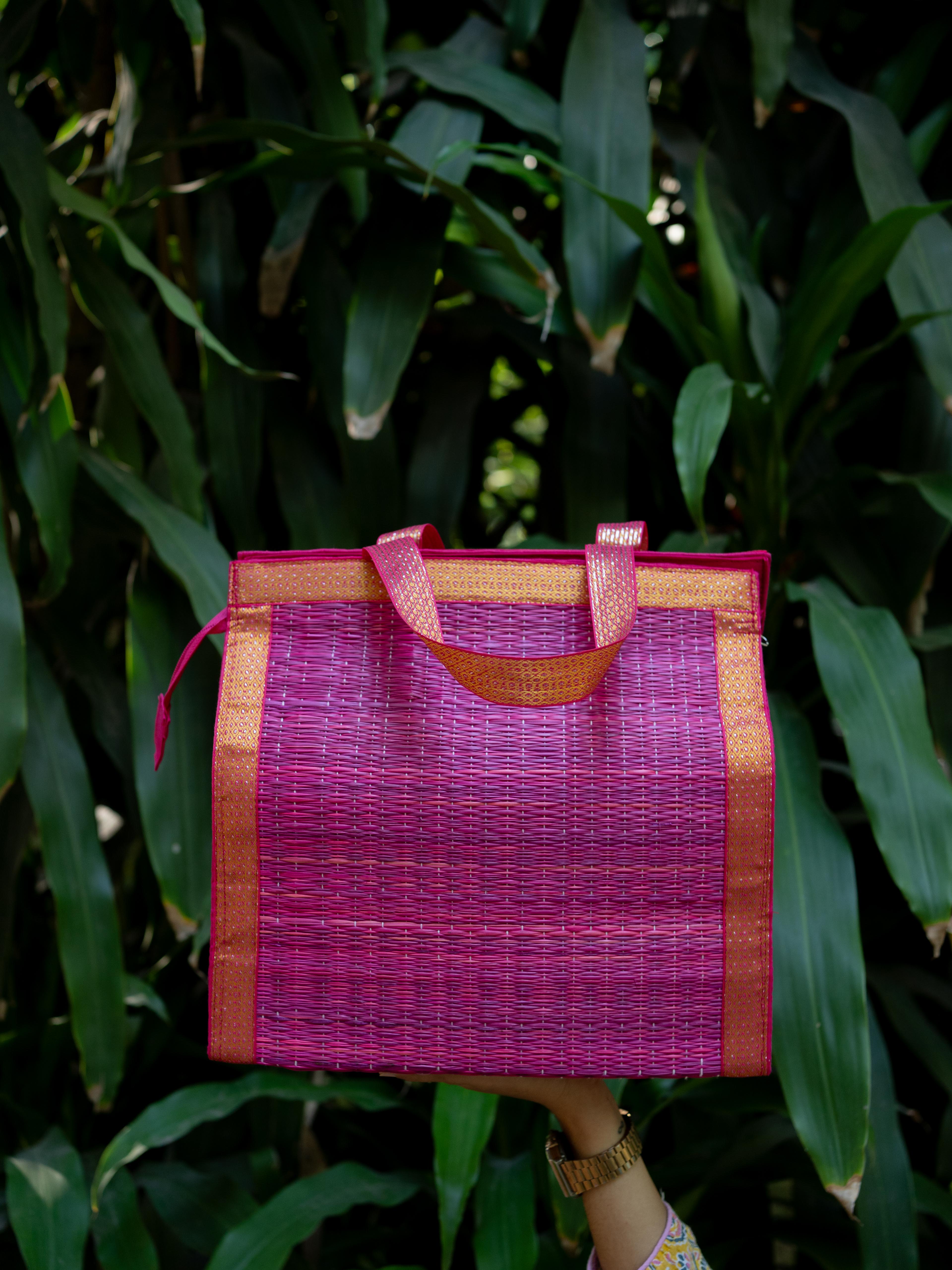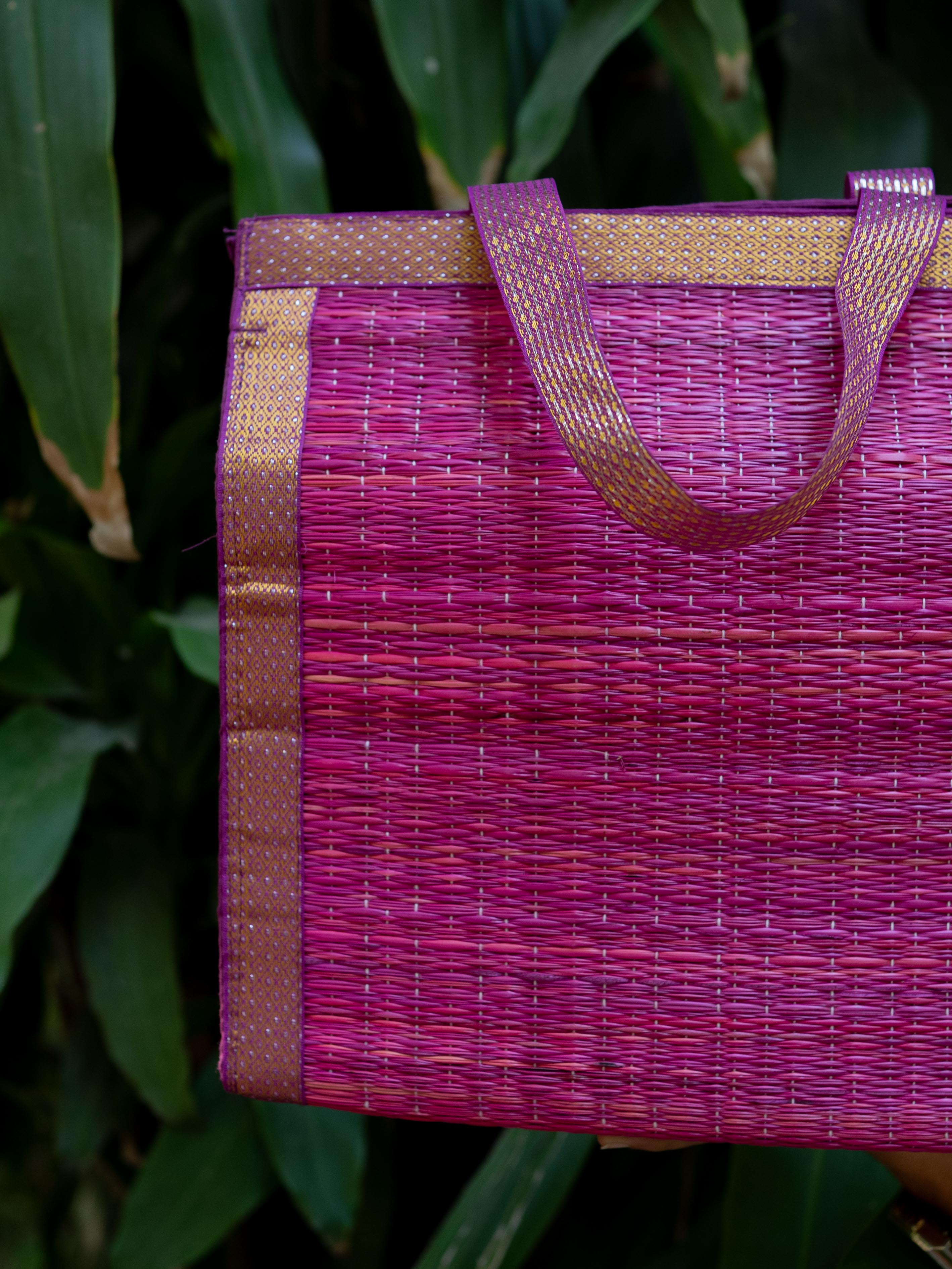 - Handcrafted Purple Korai Bag, made from Traditional Korai Grass Weaving that Gives it a Natural, Eco-Friendly Appeal.