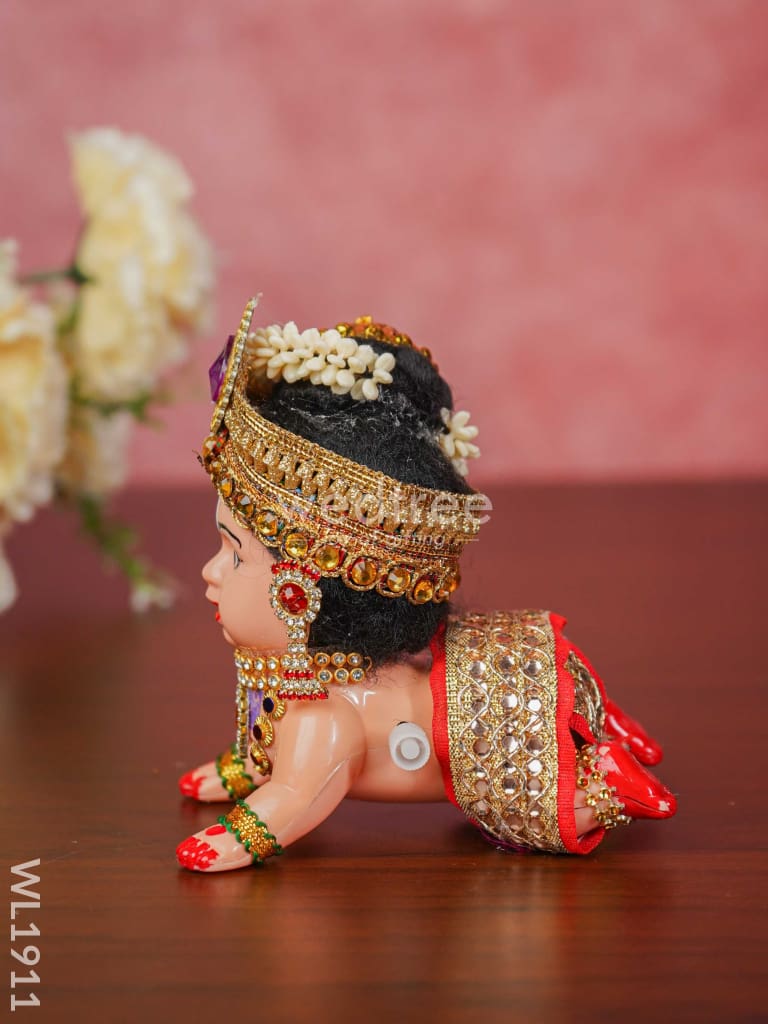 - Baby Krishna beautifully dressed in a silk cotton dhoti and adorned with jewelry sets!