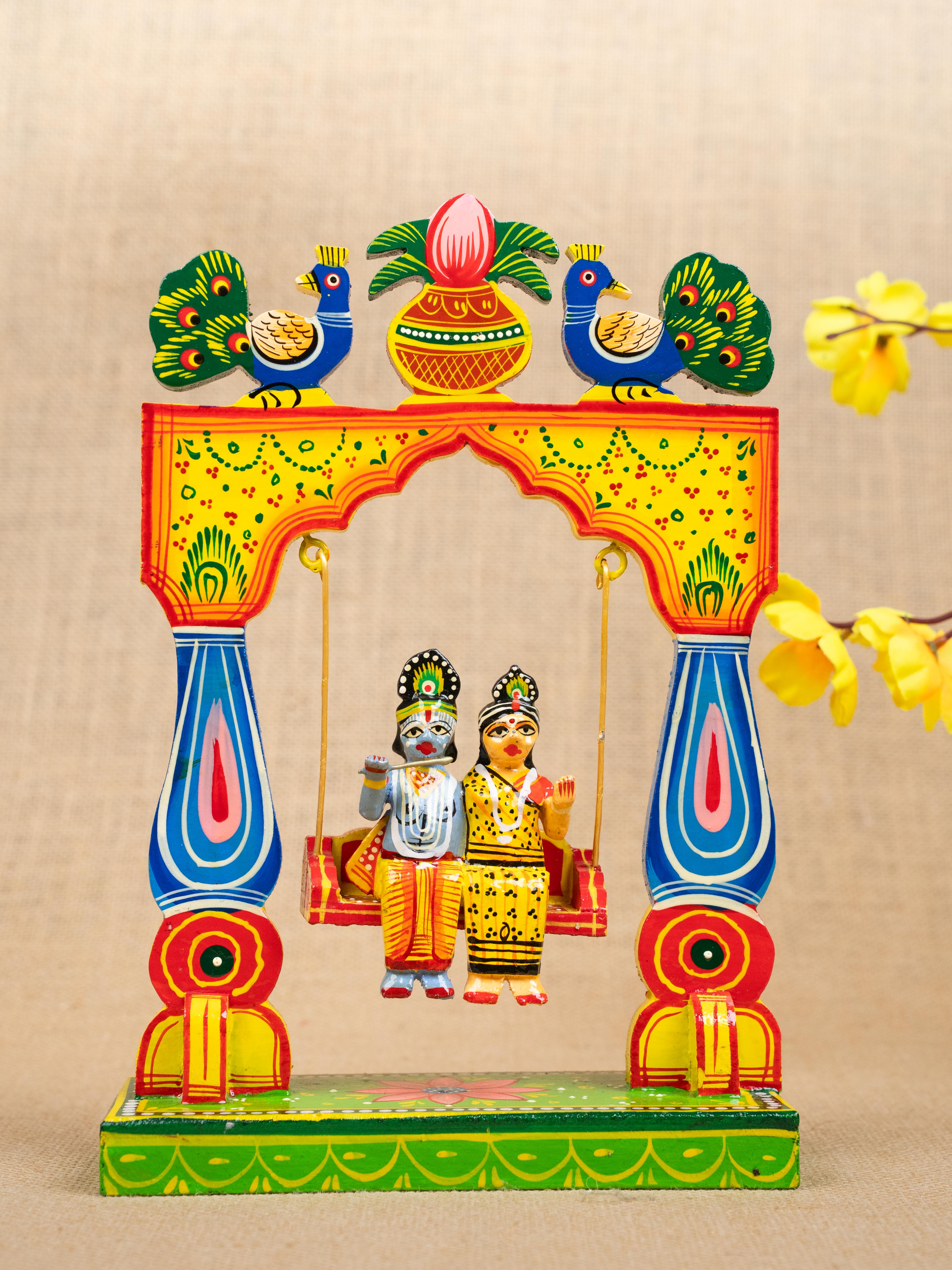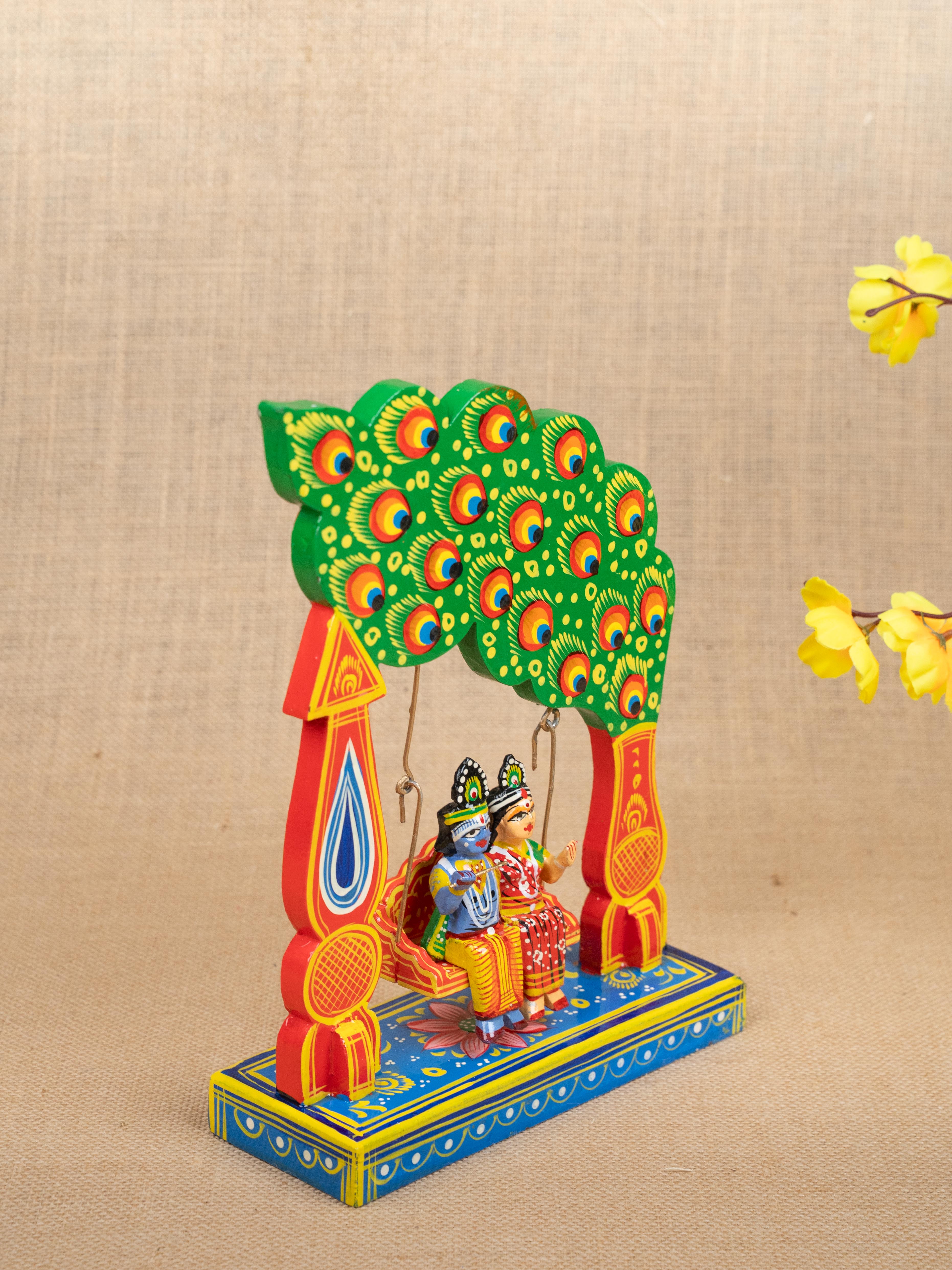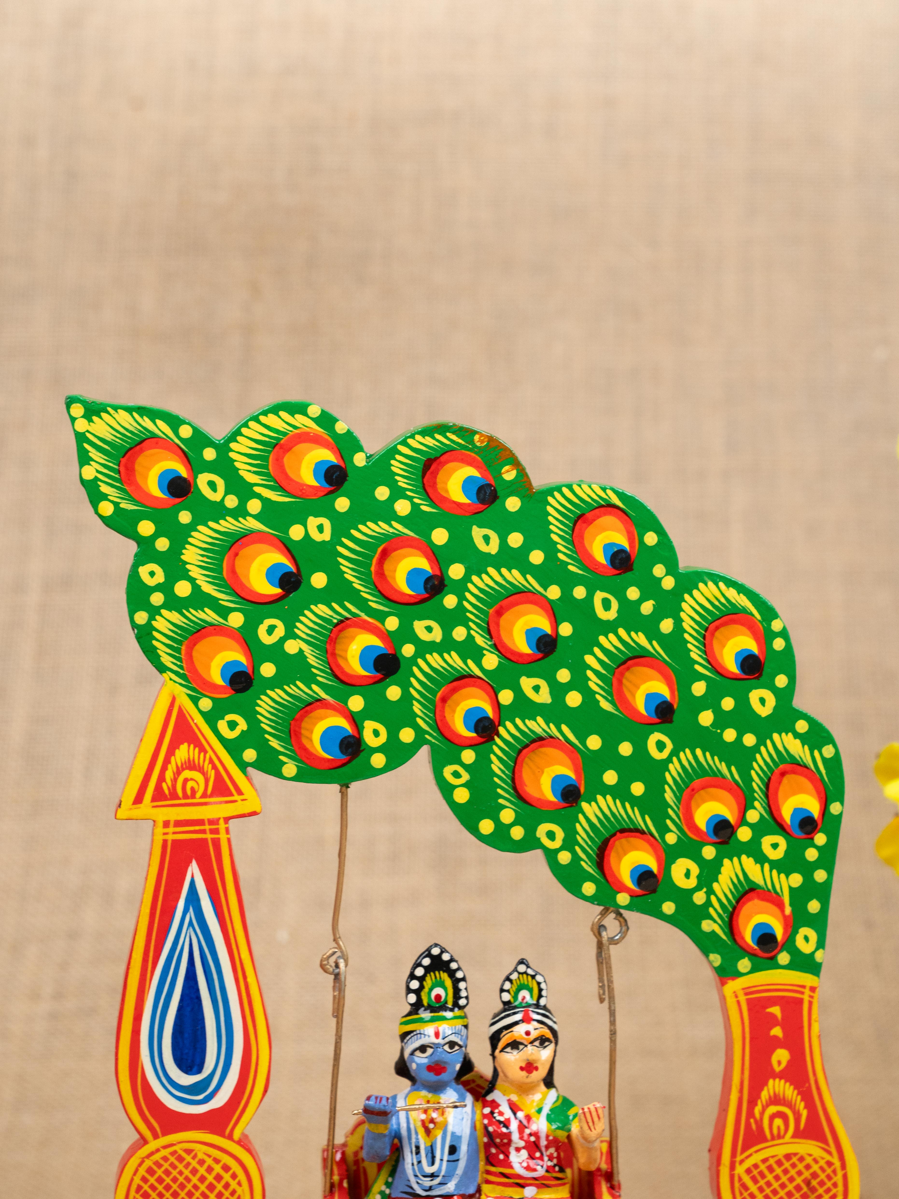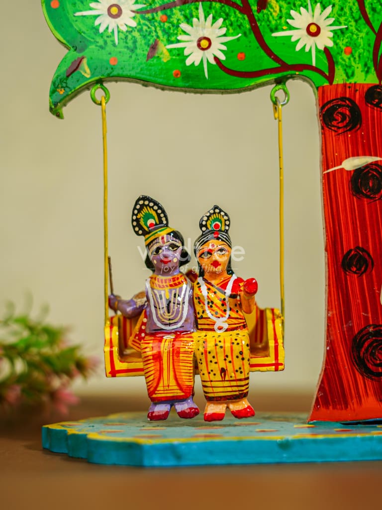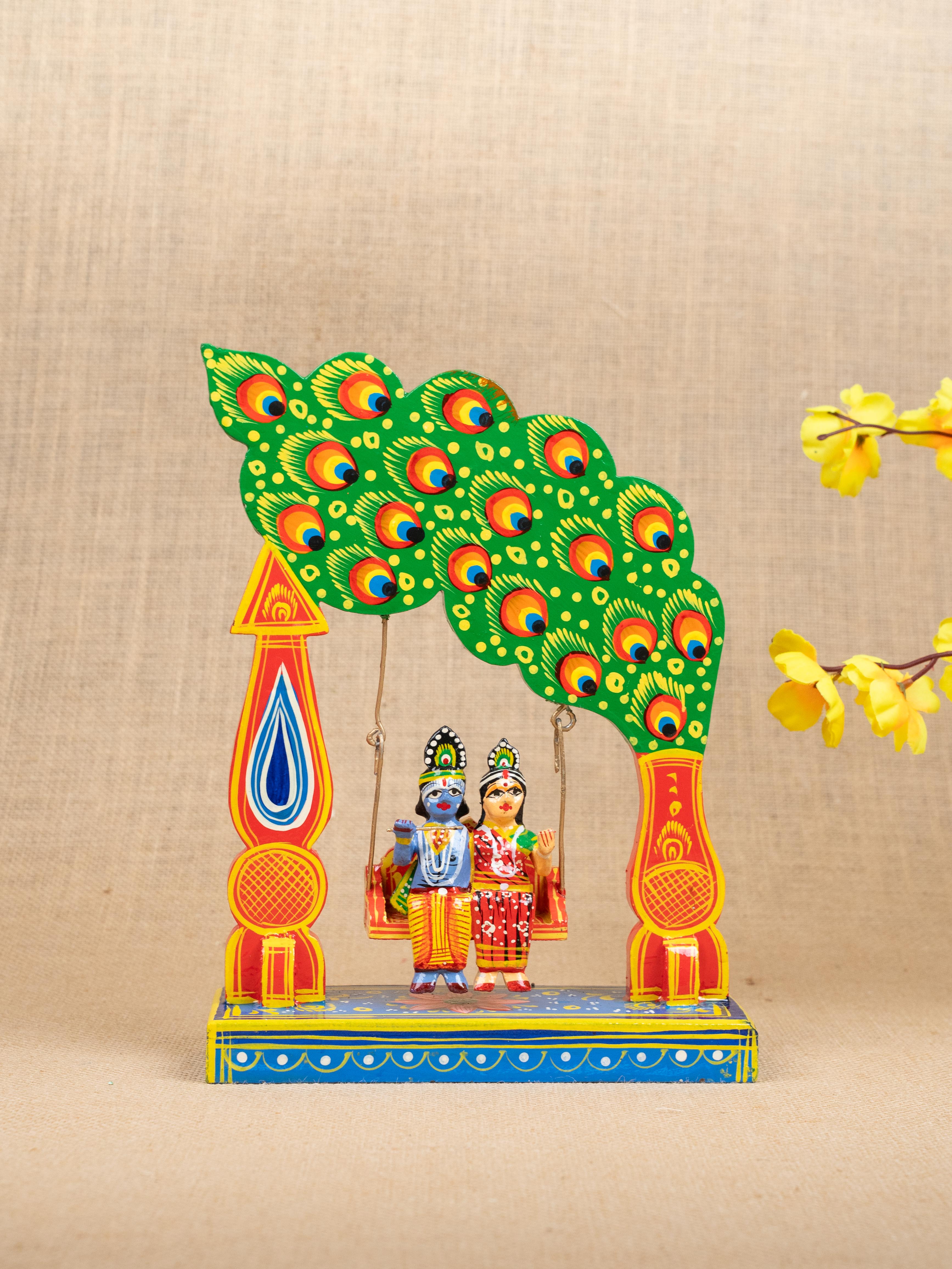 - It features Krishna & Radha beautifully swinging on Jhula and comes in 3 different designs - Tree, Peacock Feather and Peacock Mandap design.