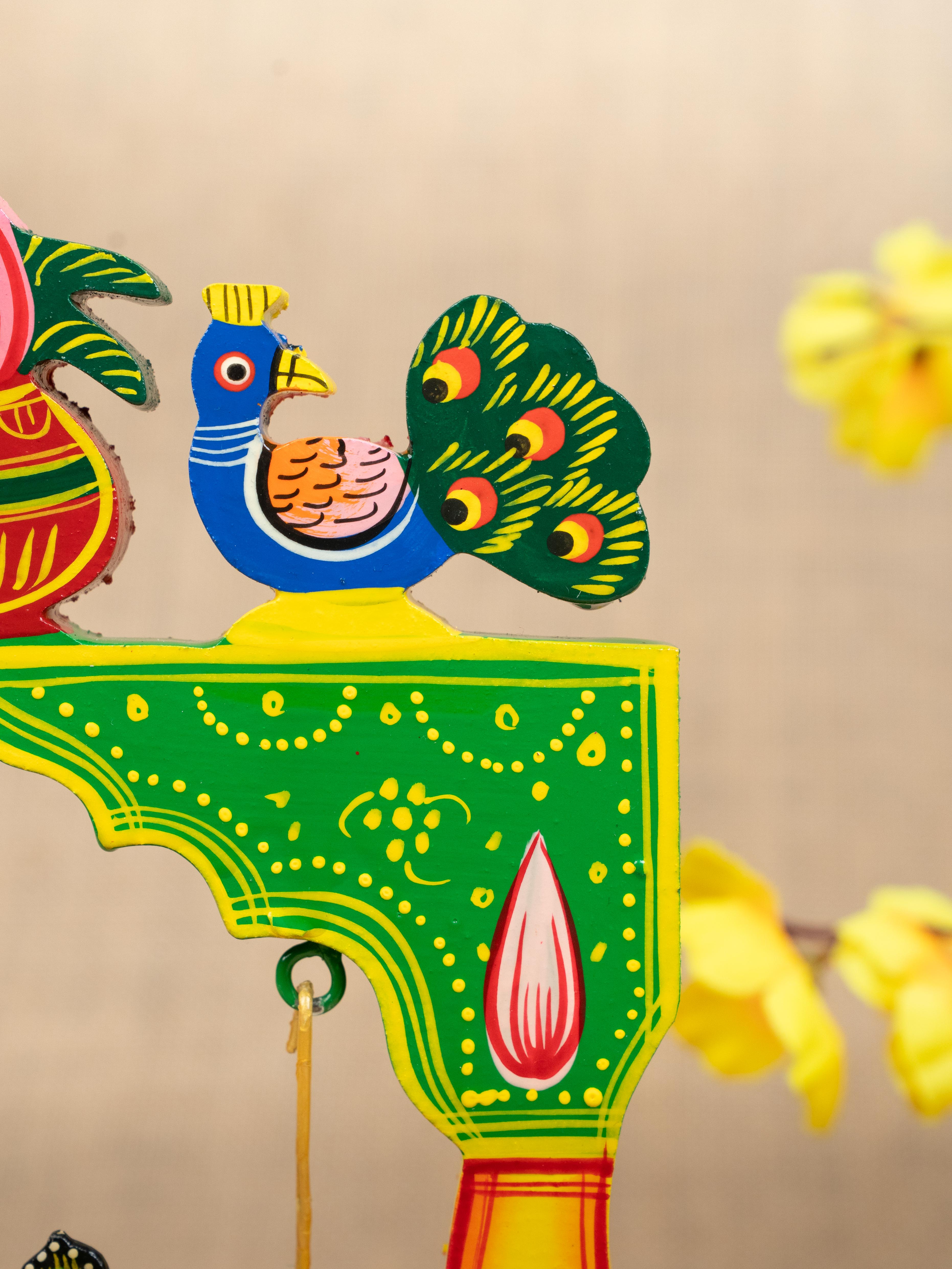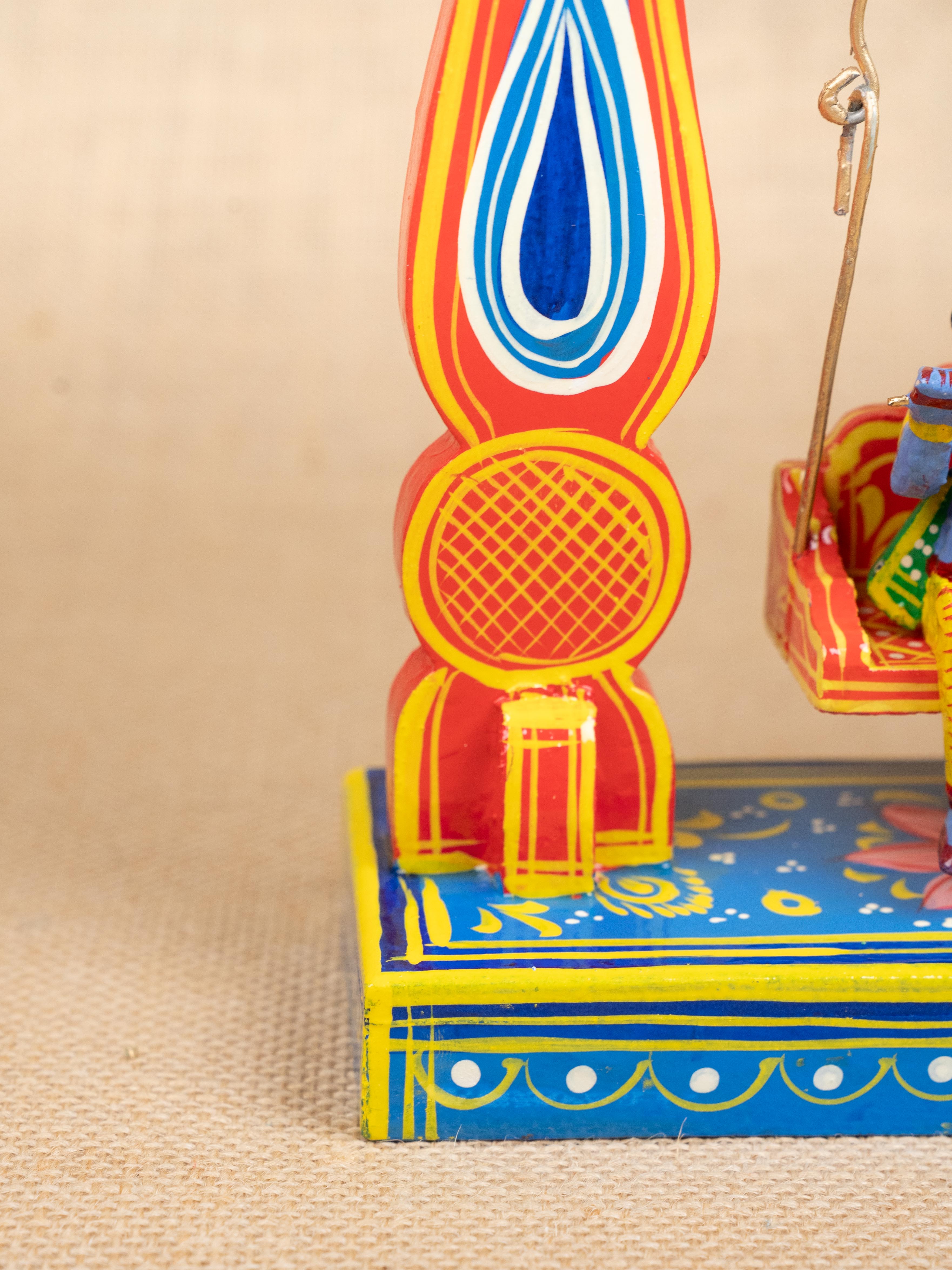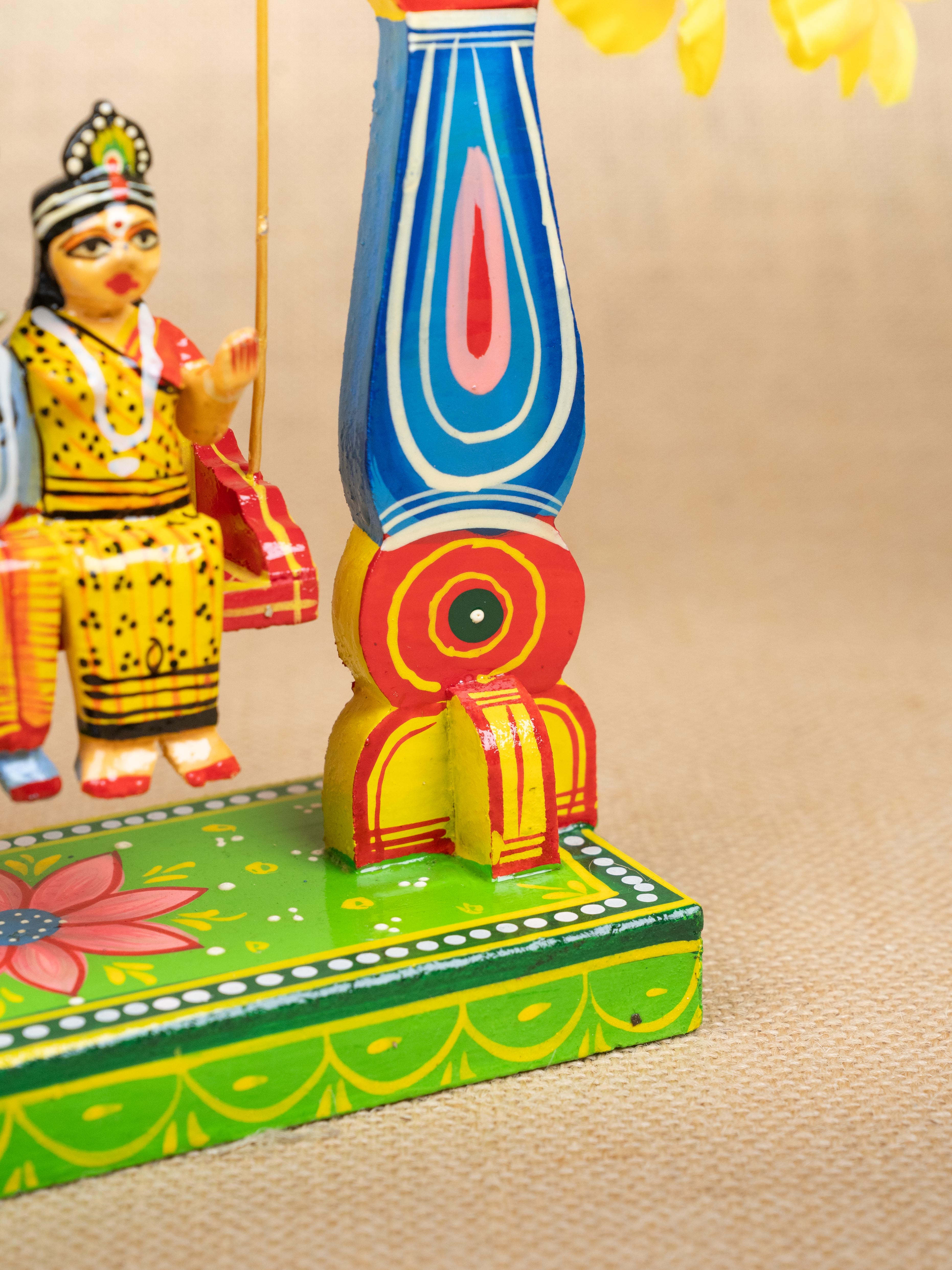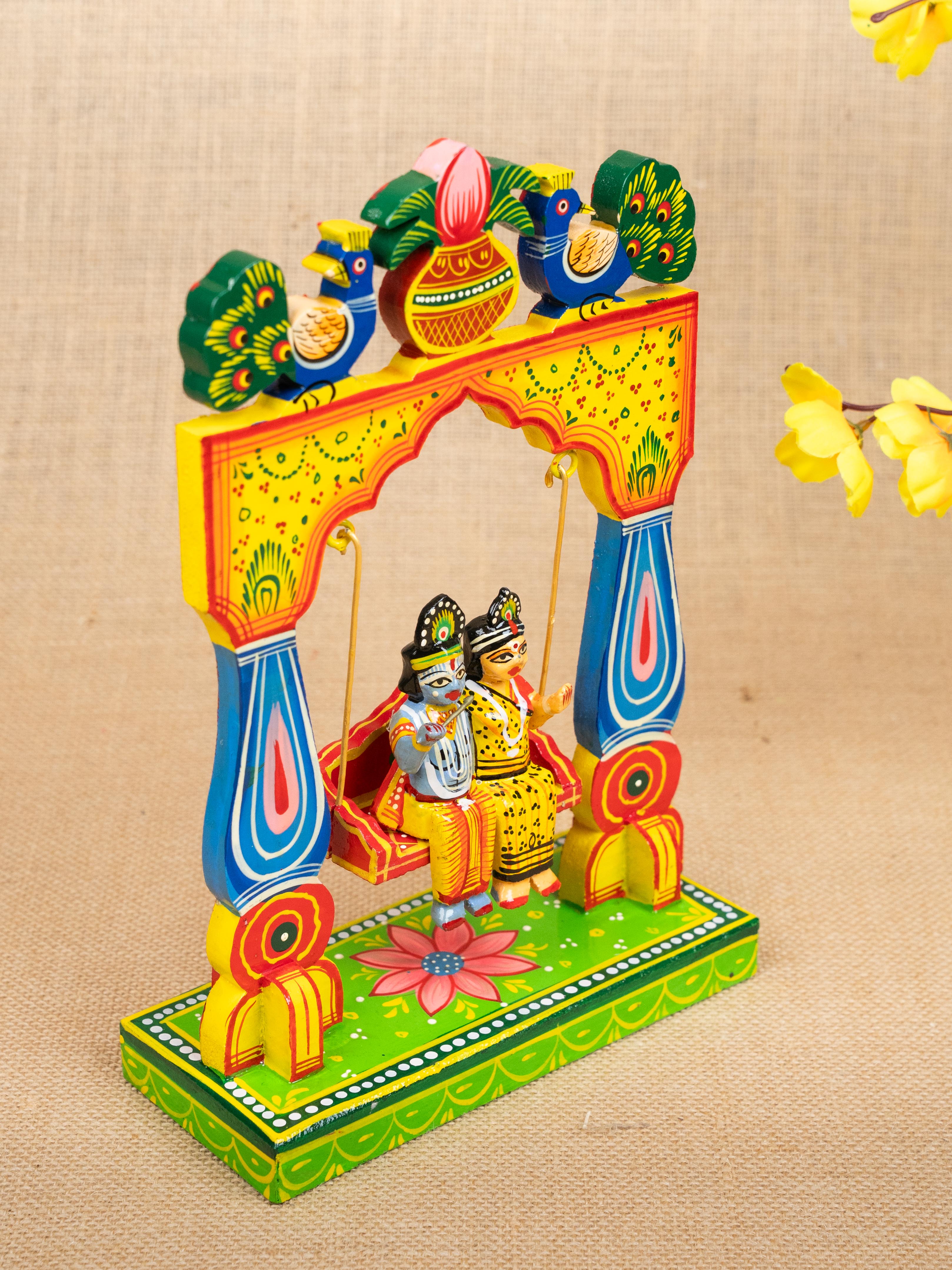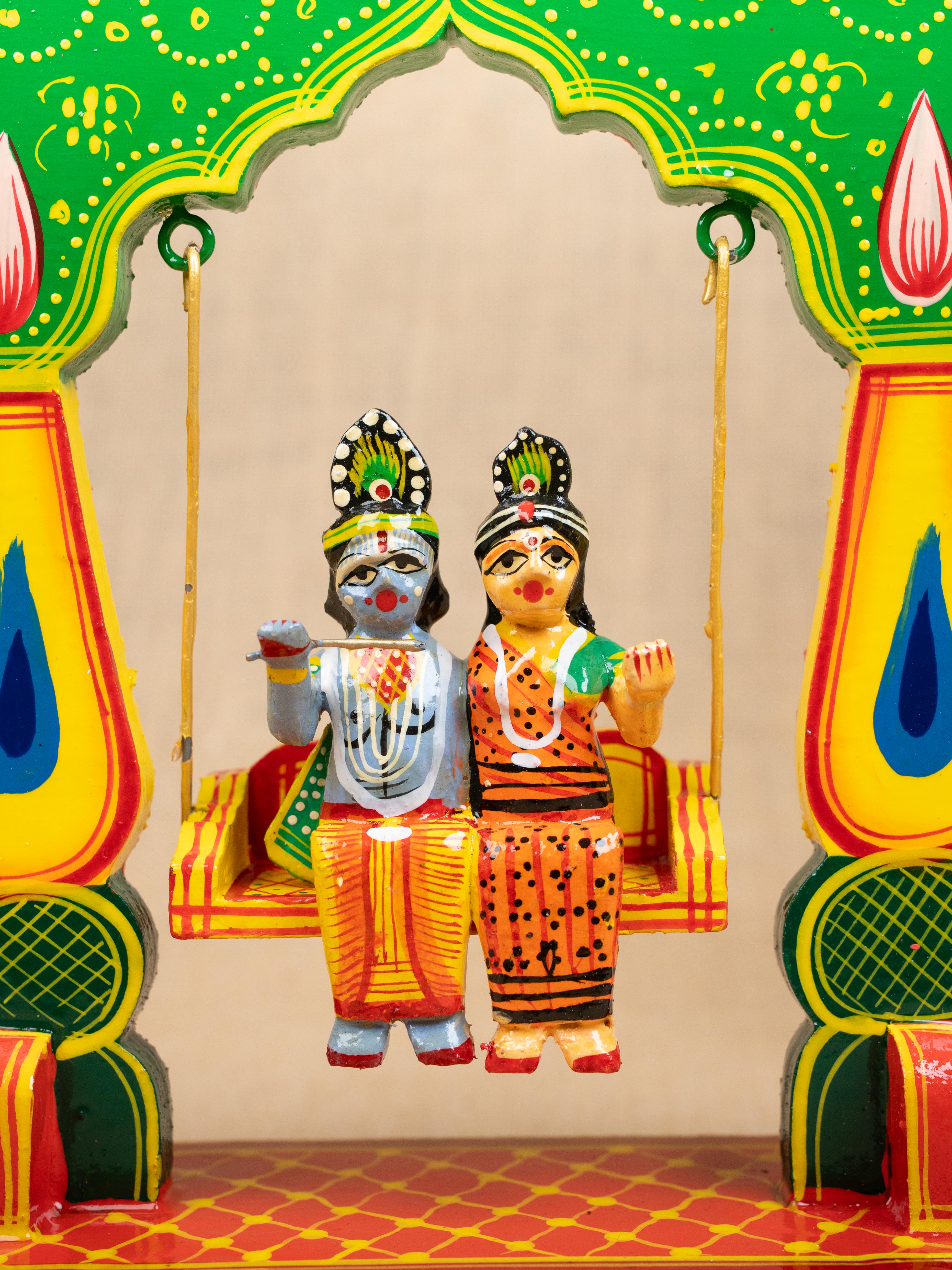 - It features Krishna & Radha beautifully swinging on Jhula and comes in 3 different designs - Tree, Peacock Feather and Peacock Mandap design.