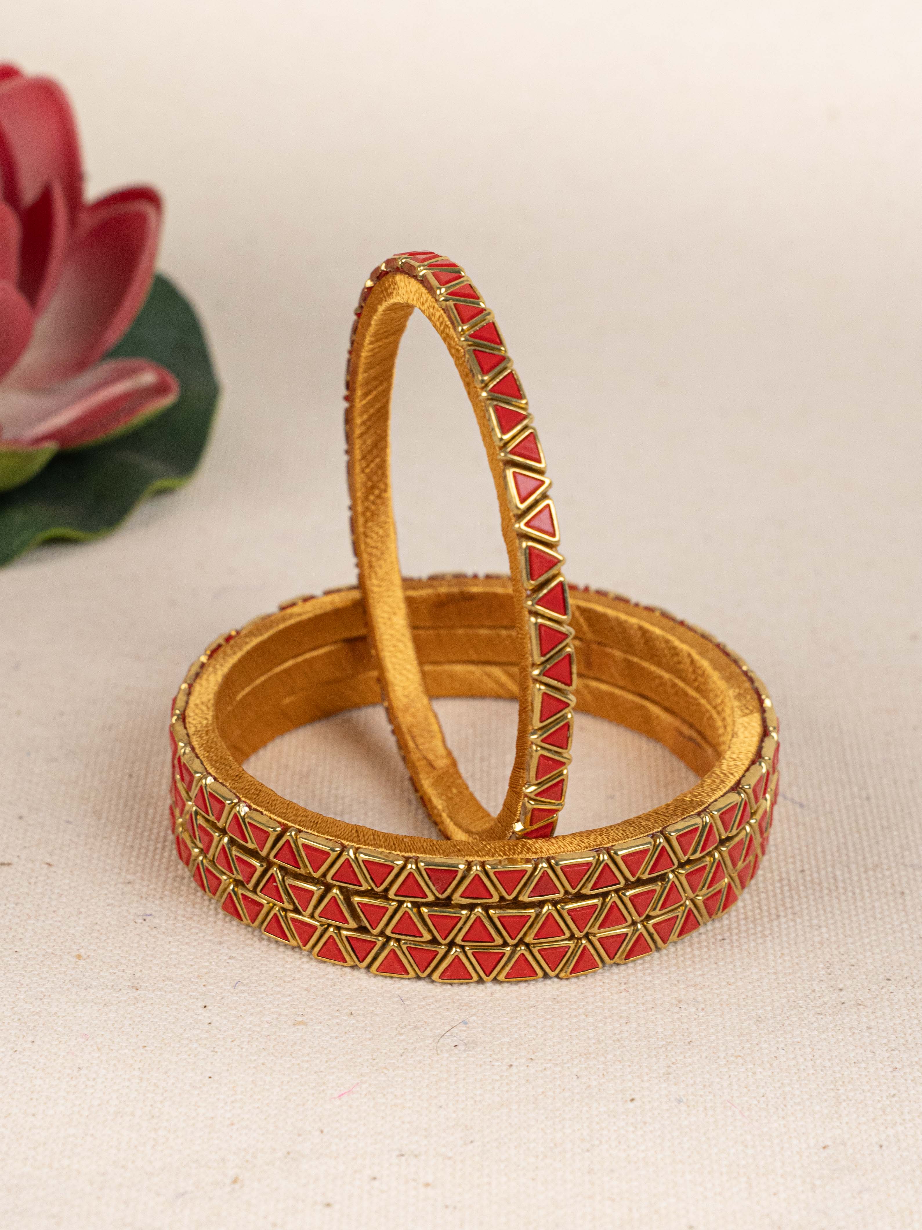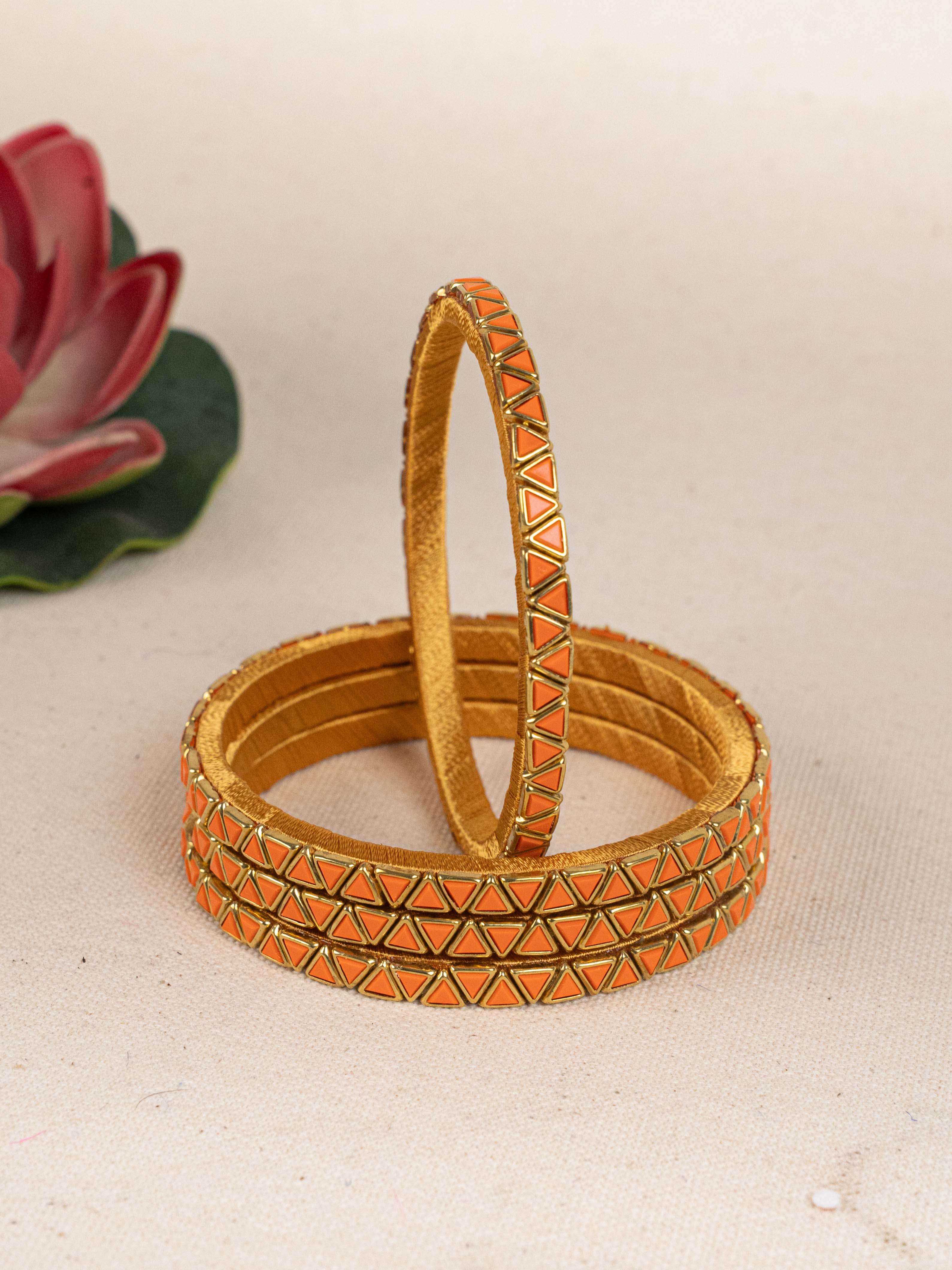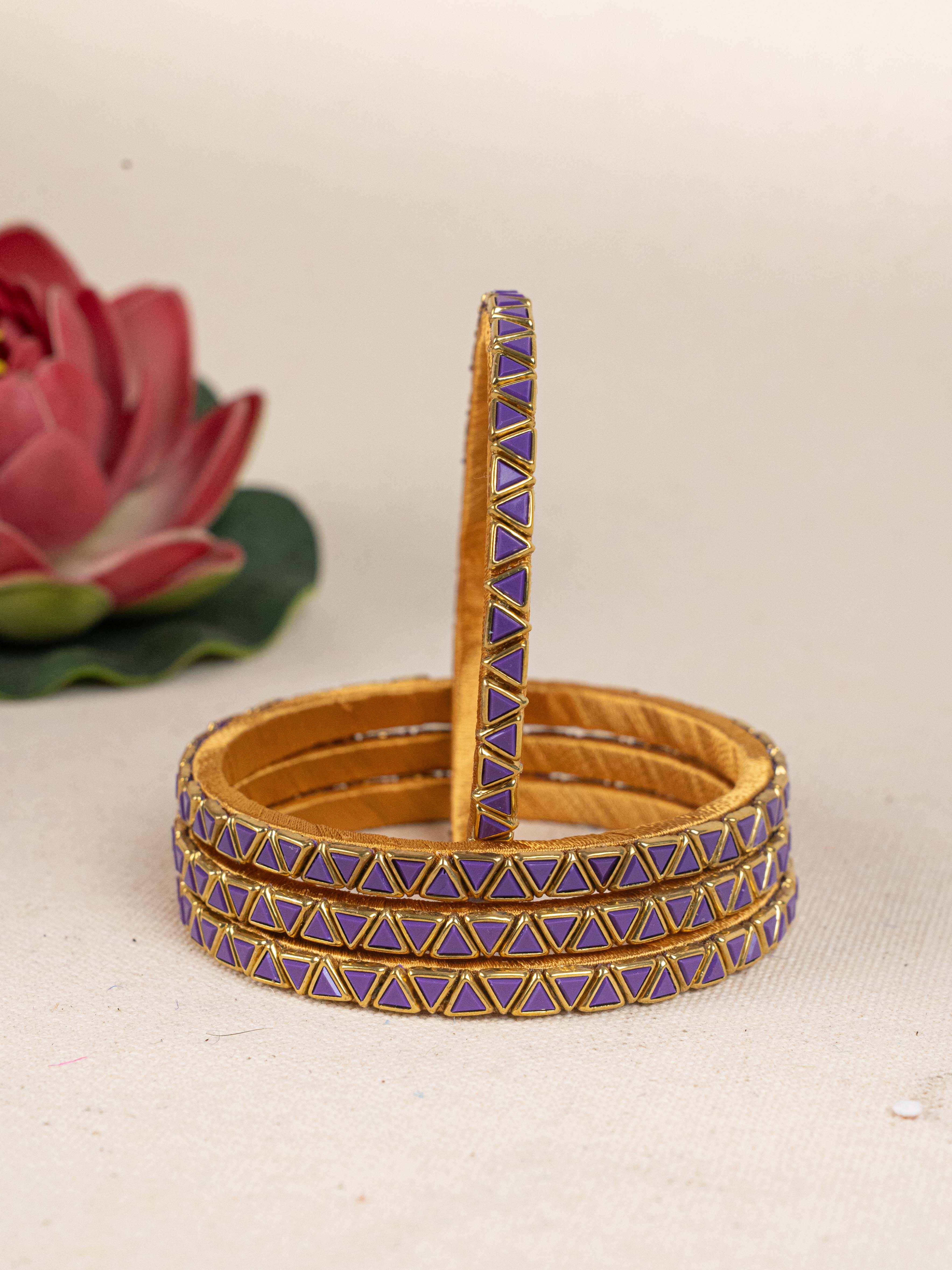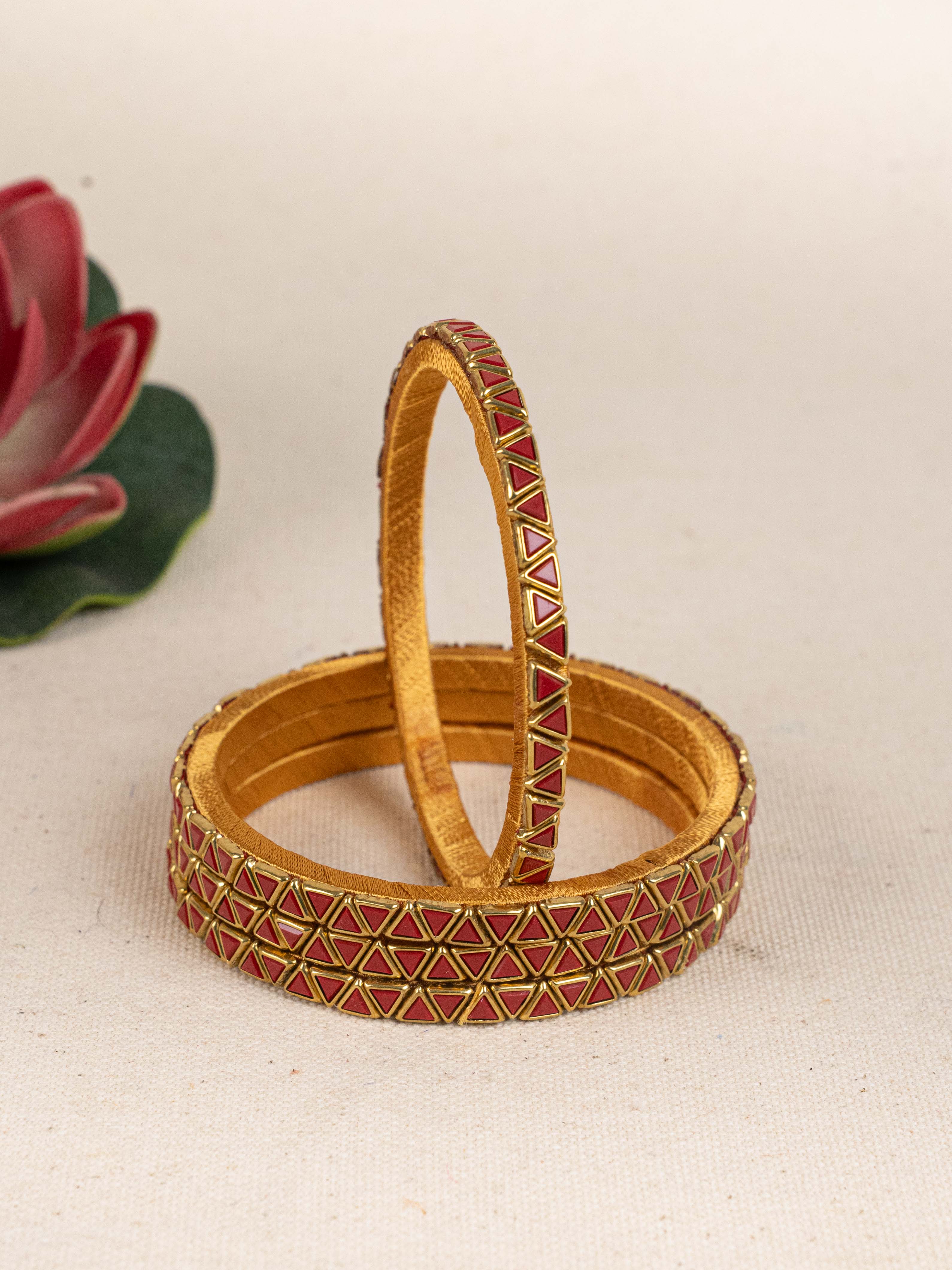 Make a Bold Style Statement with this Striking Set of 4 Bangles, Crafted with a Unique Geometric Pattern.