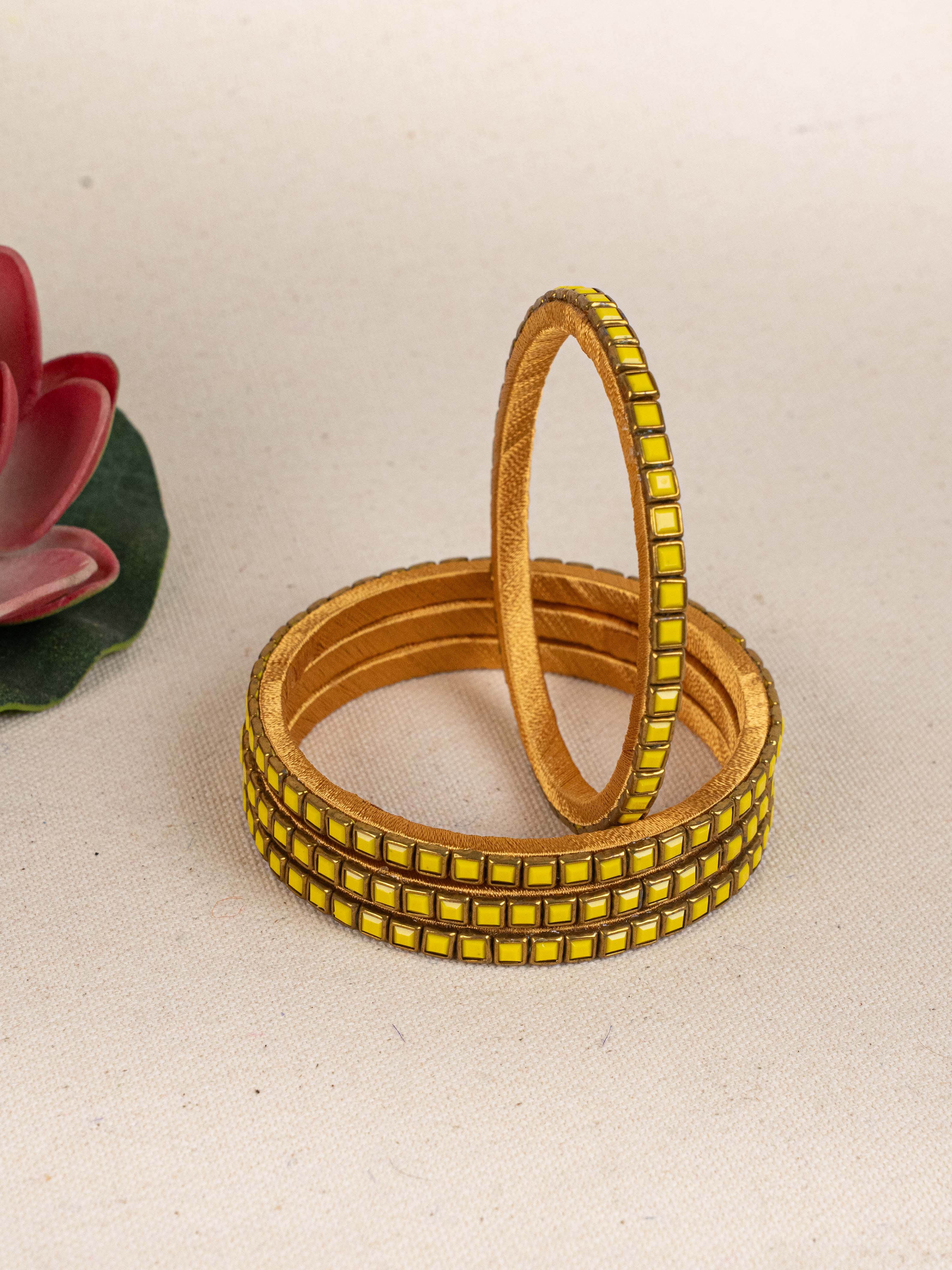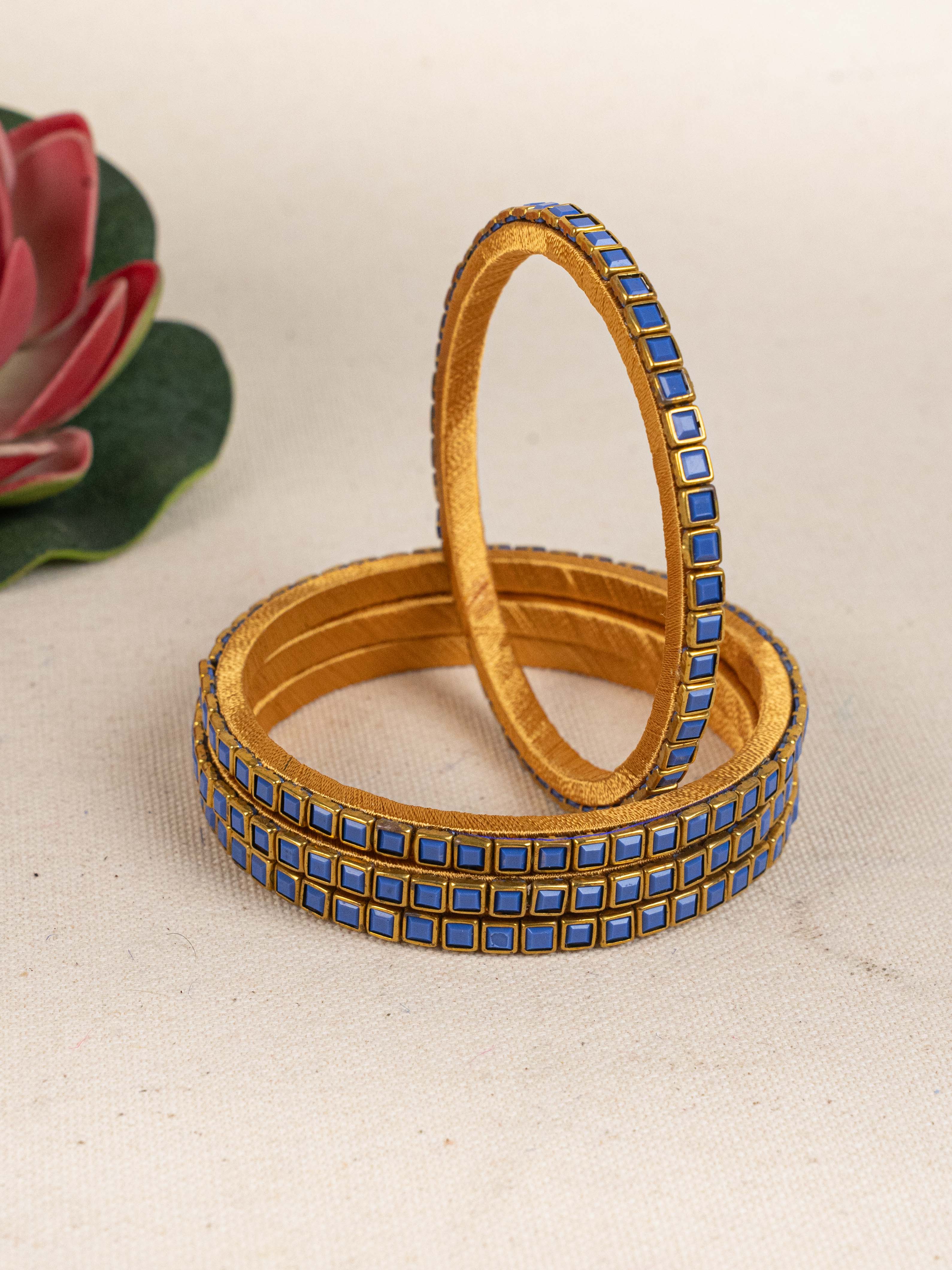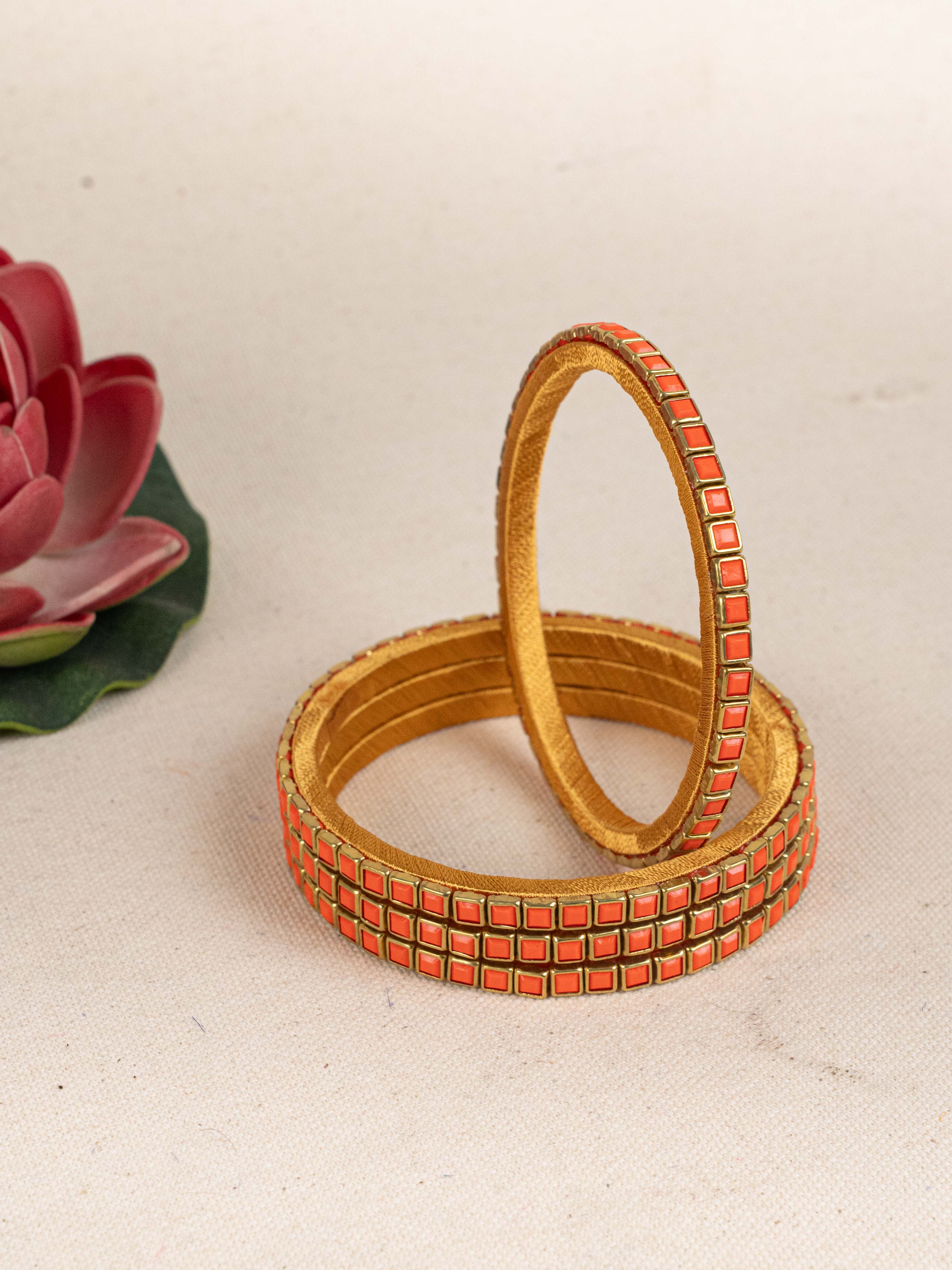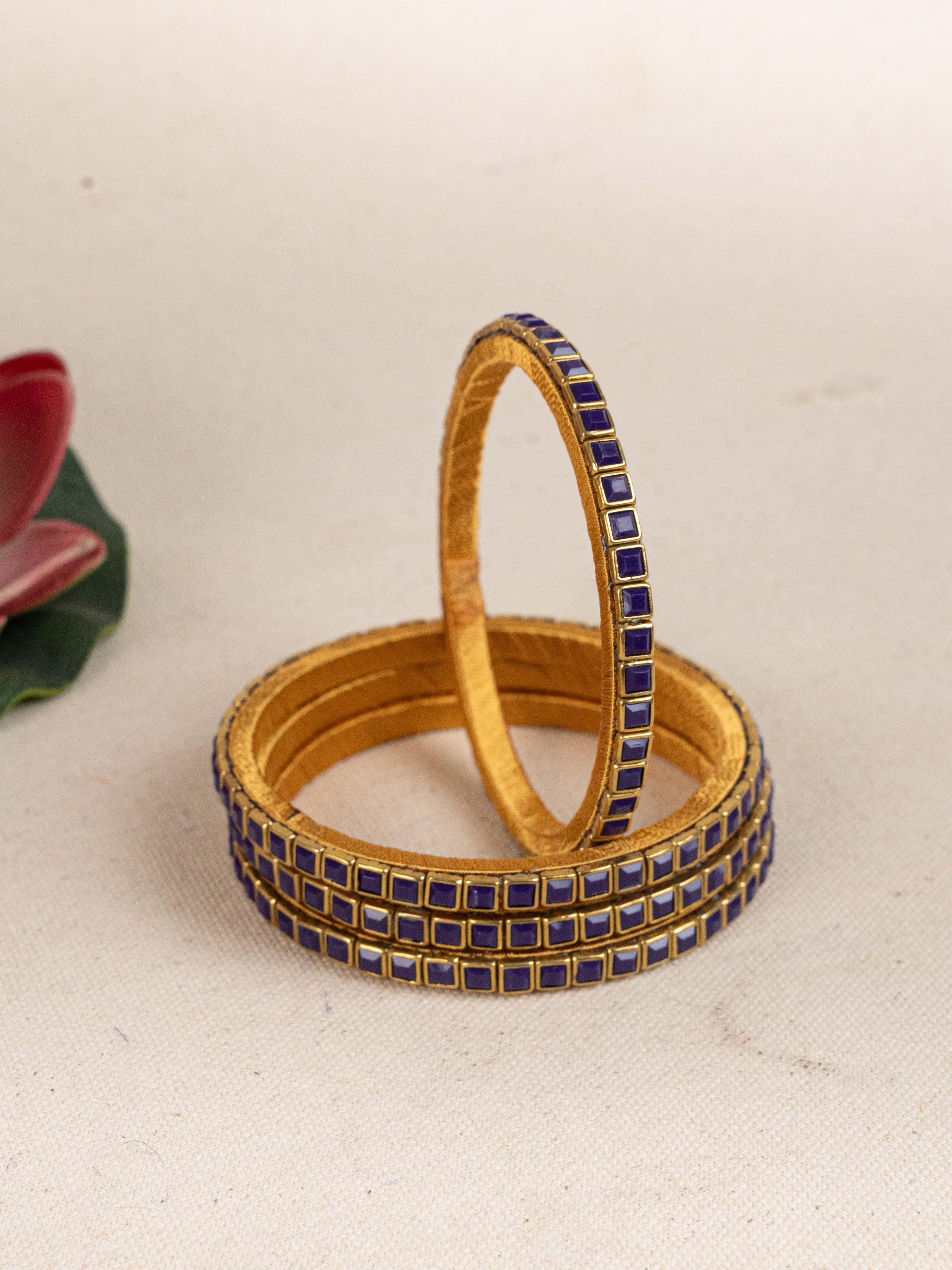 Make a Bold Style Statement with this Striking Set of 4 Bangles, Crafted with a Unique Geometric Pattern.
