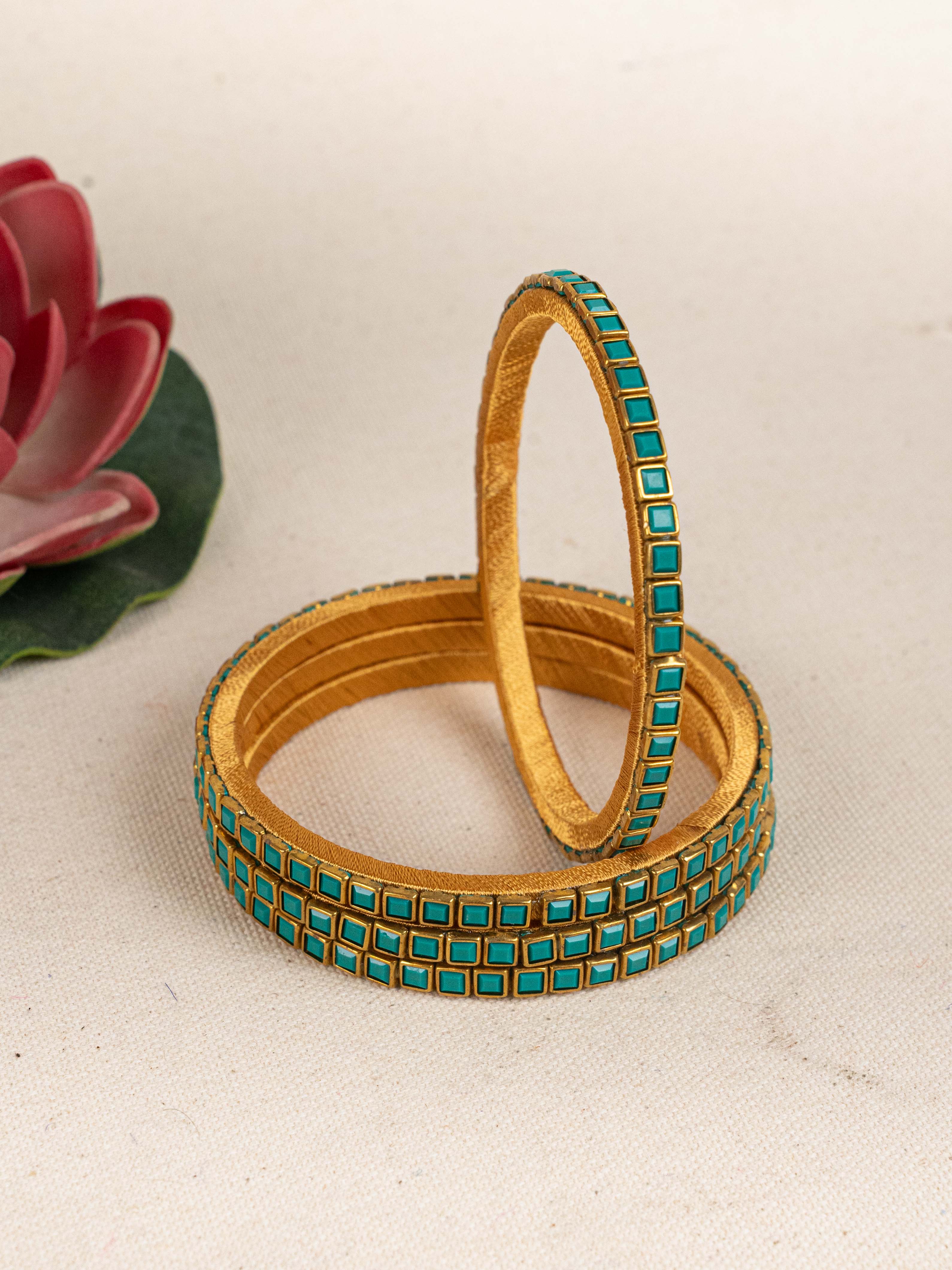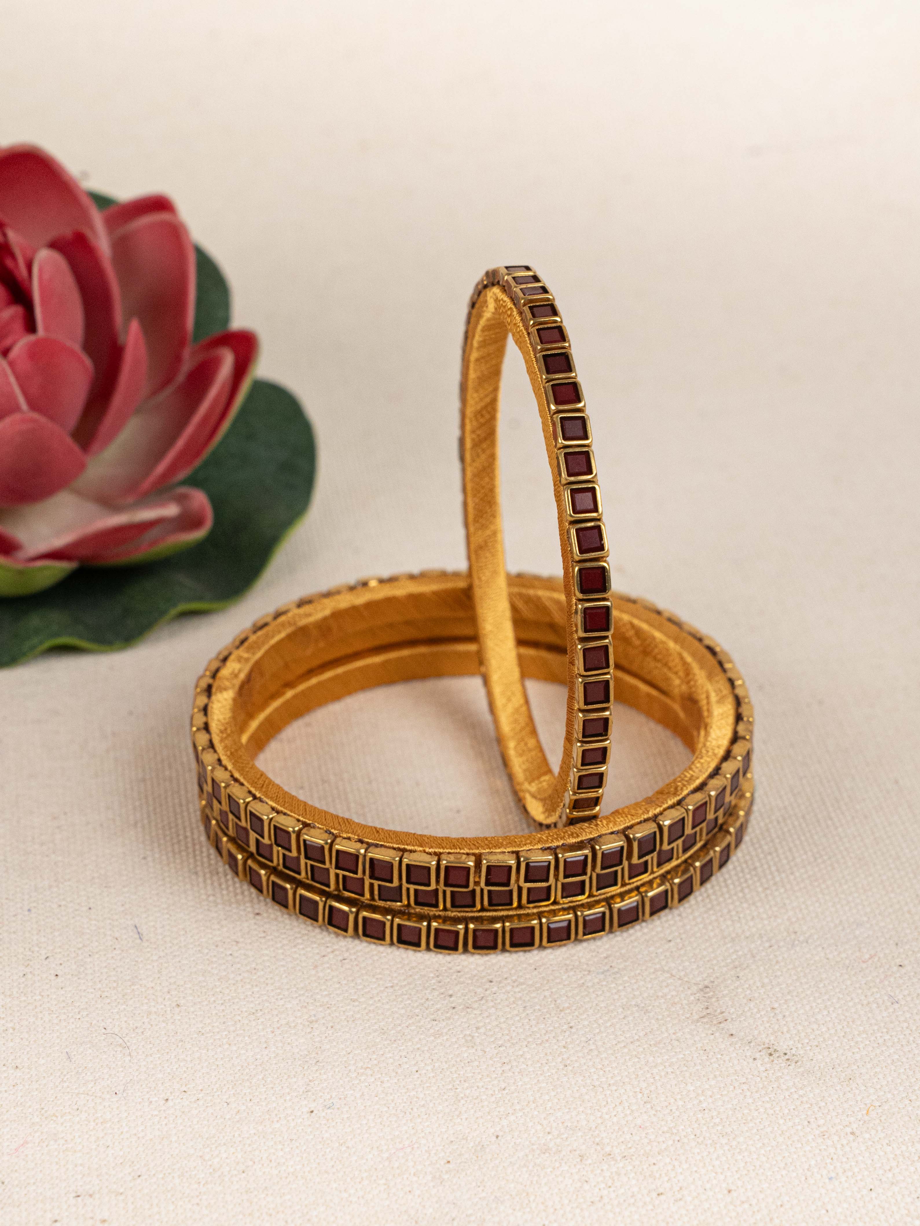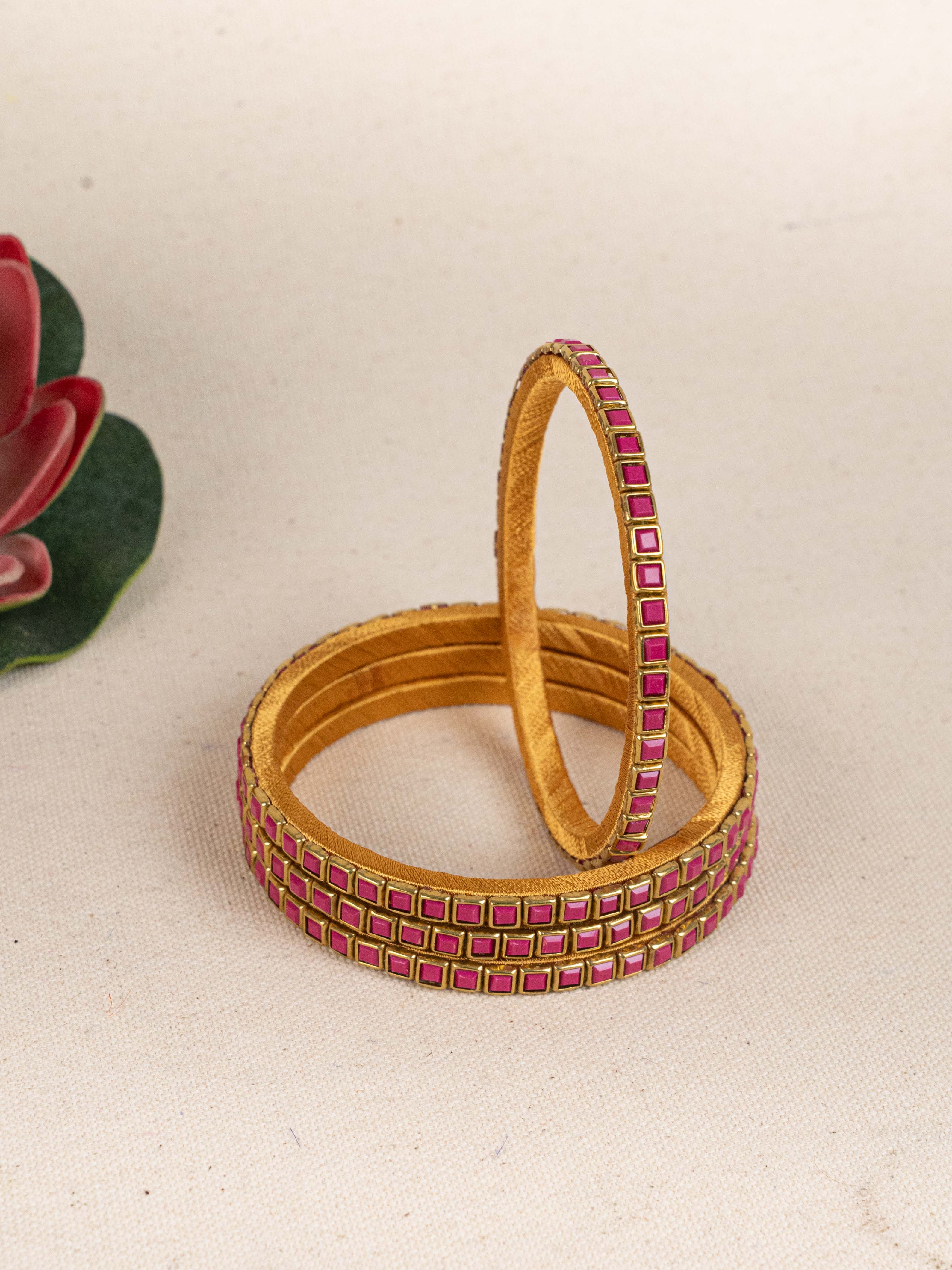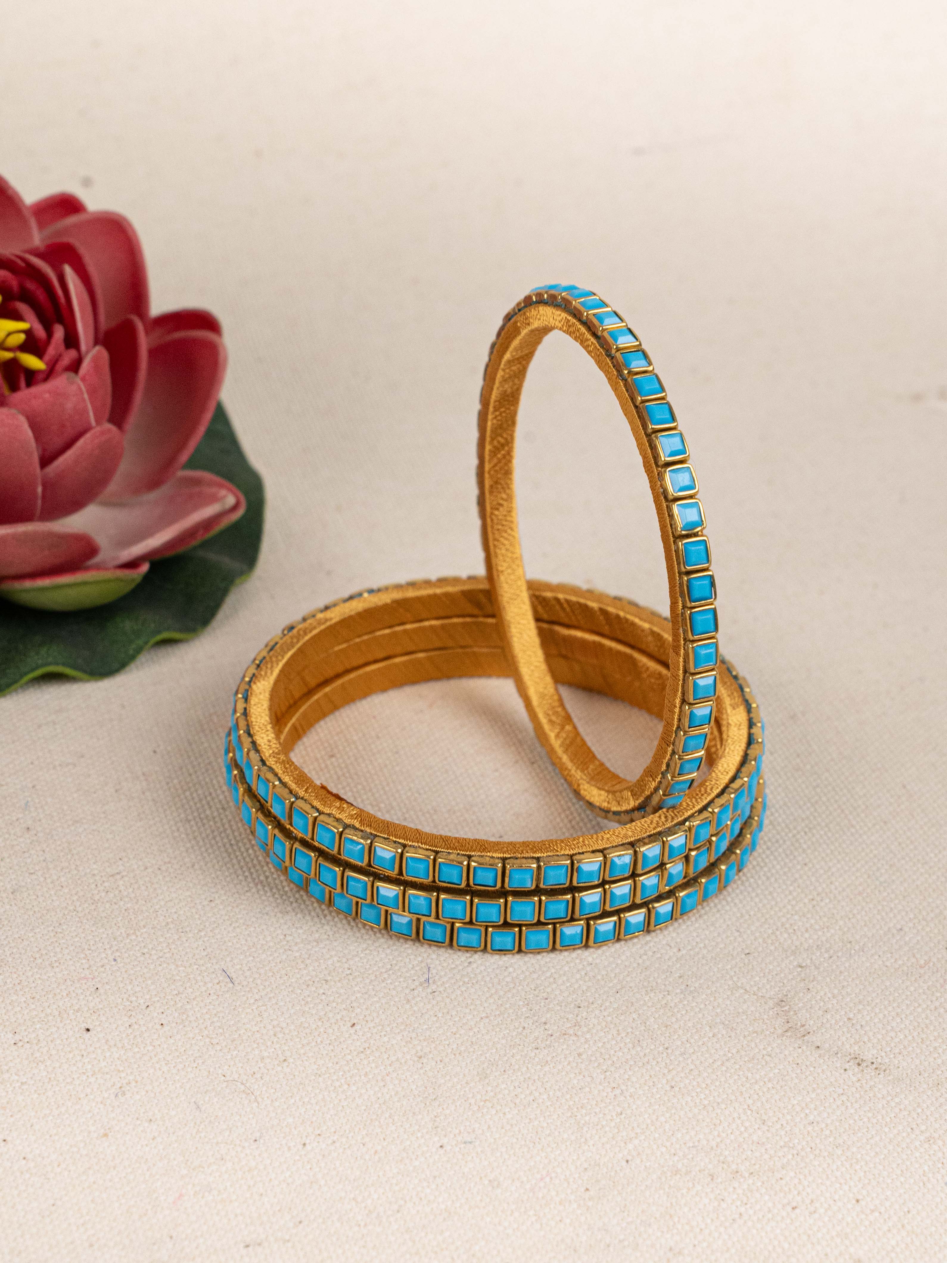 Make a Bold Style Statement with this Striking Set of 4 Bangles, Crafted with a Unique Geometric Pattern.
