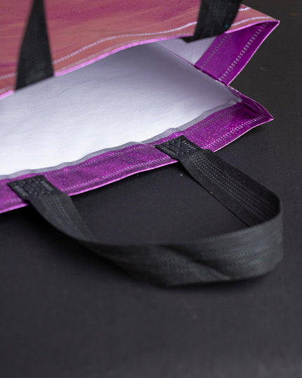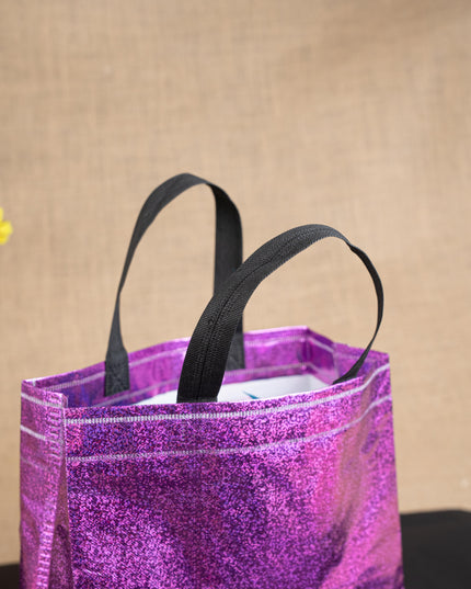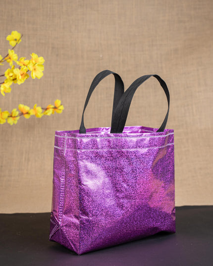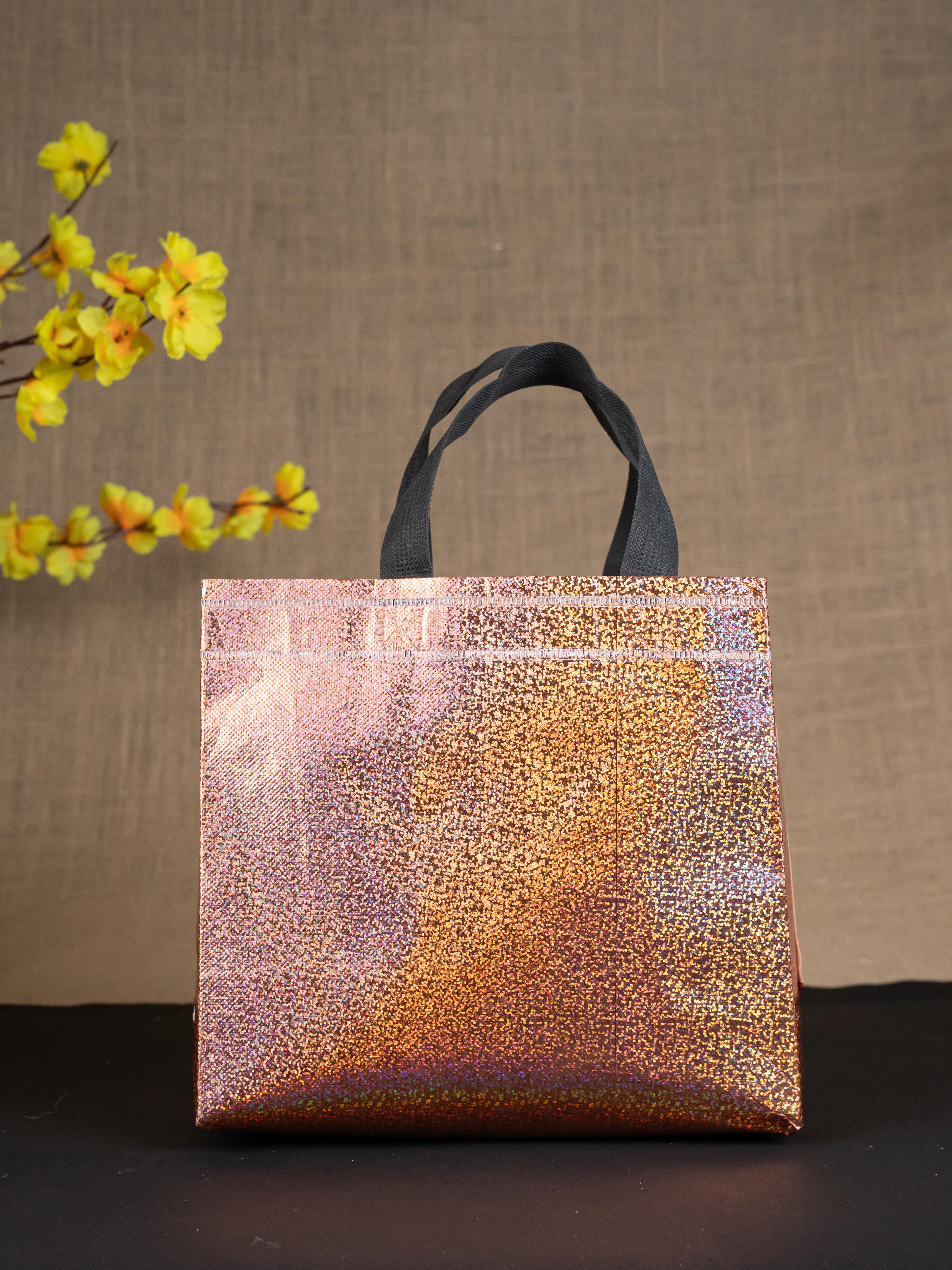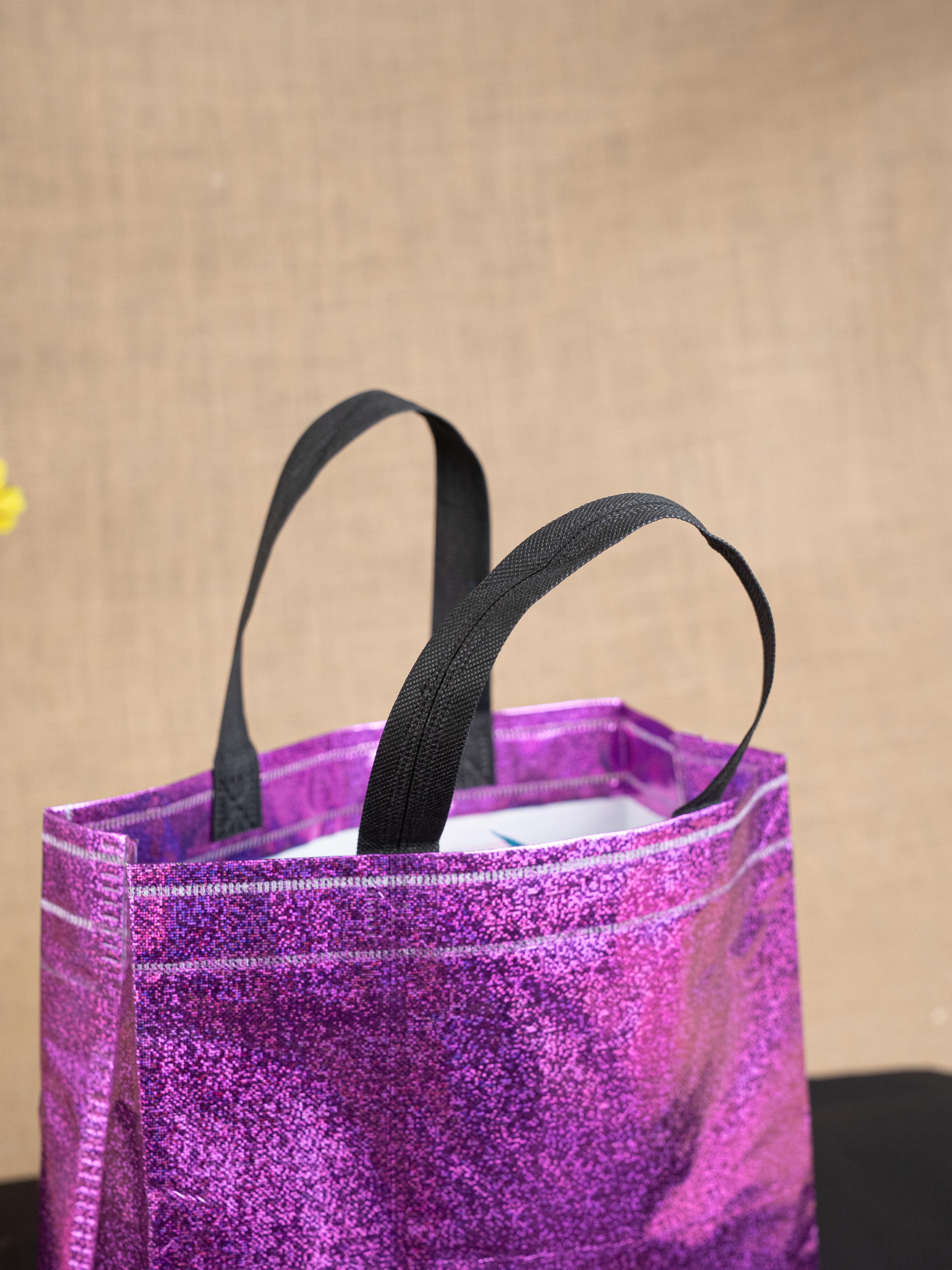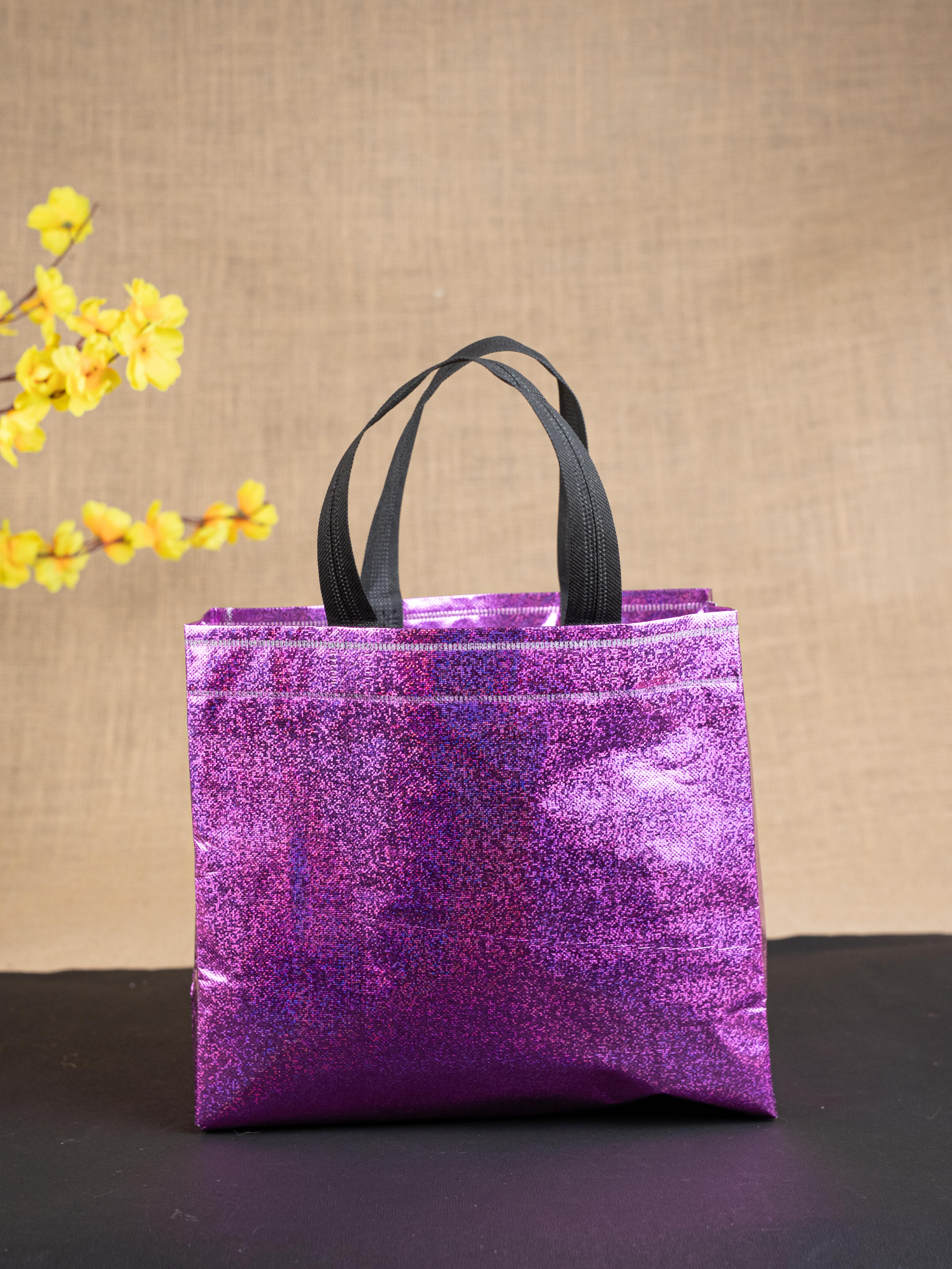 - Laminated non woven glitter handbag - a perfect blend of fashion and functionality!