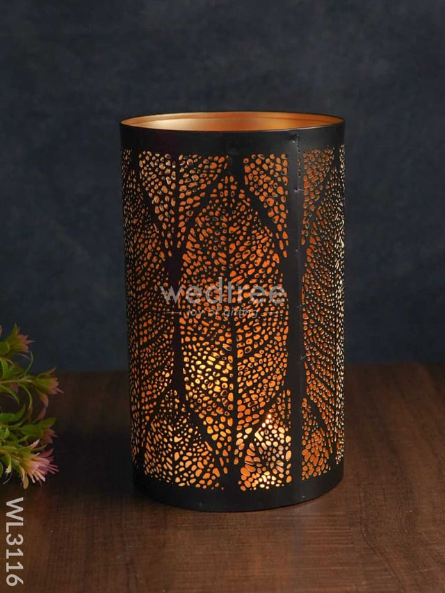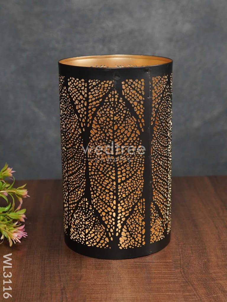 Black Matte Votive in Leaf Design Jhaali Pattern - Big - WL3116
