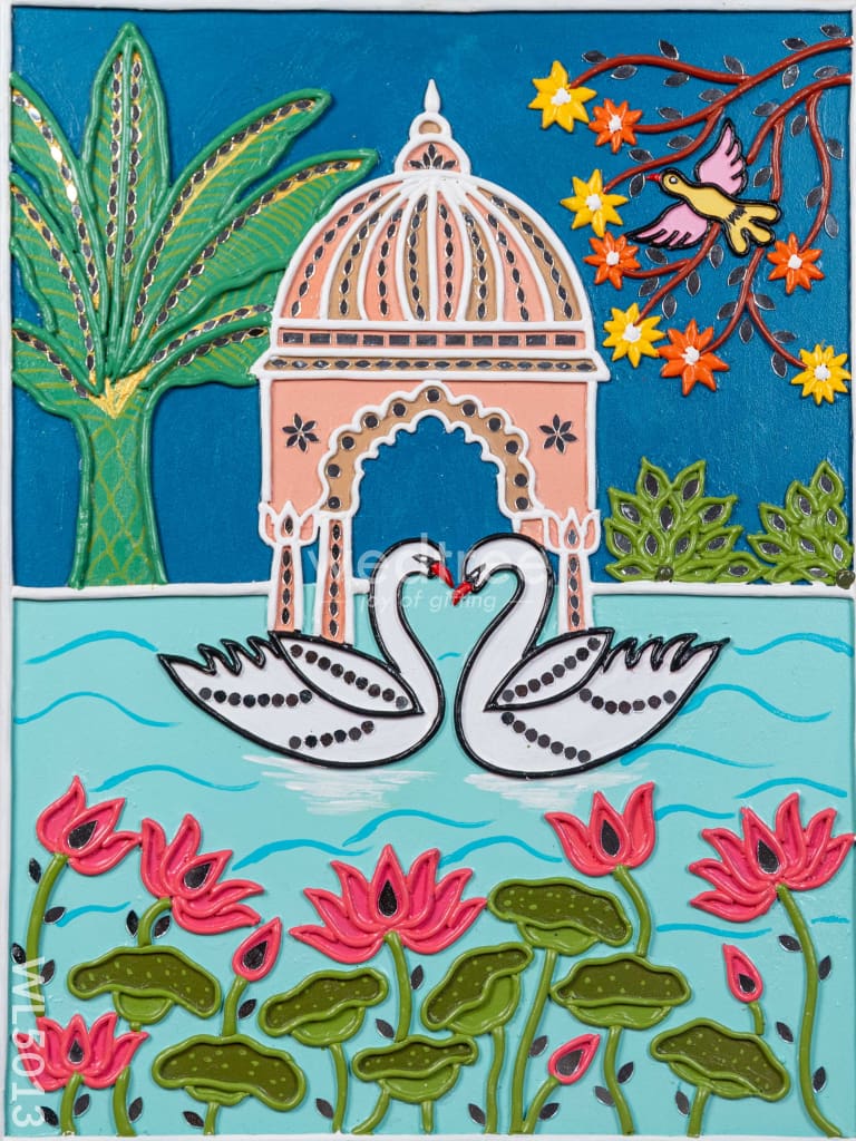 Graceful and Radiant, this Lippan Art Swan Beautifully Captures the Elegance of the Swan Through the Traditional Mud and Mirror Craft of Kutch, Gujarat.