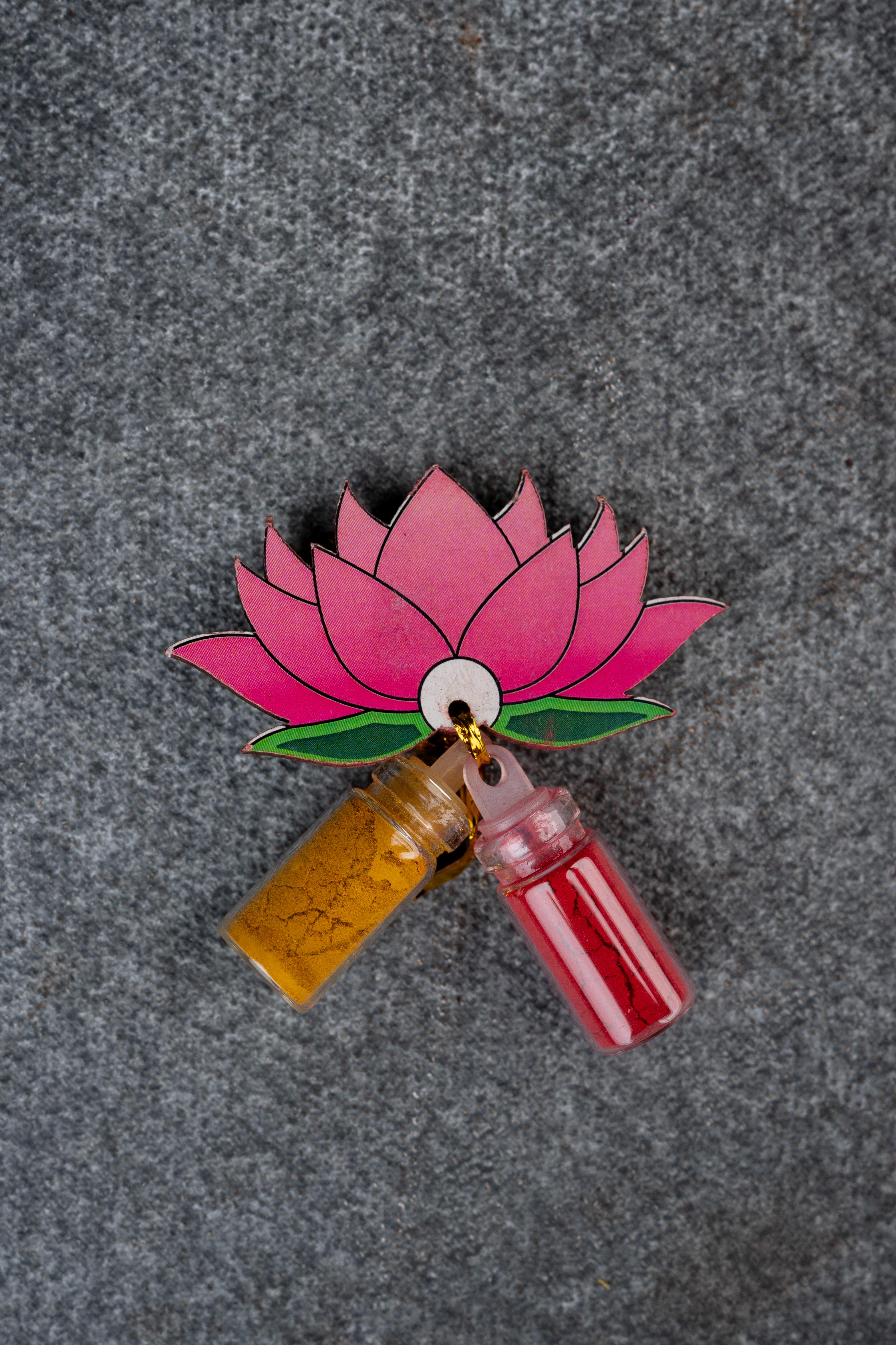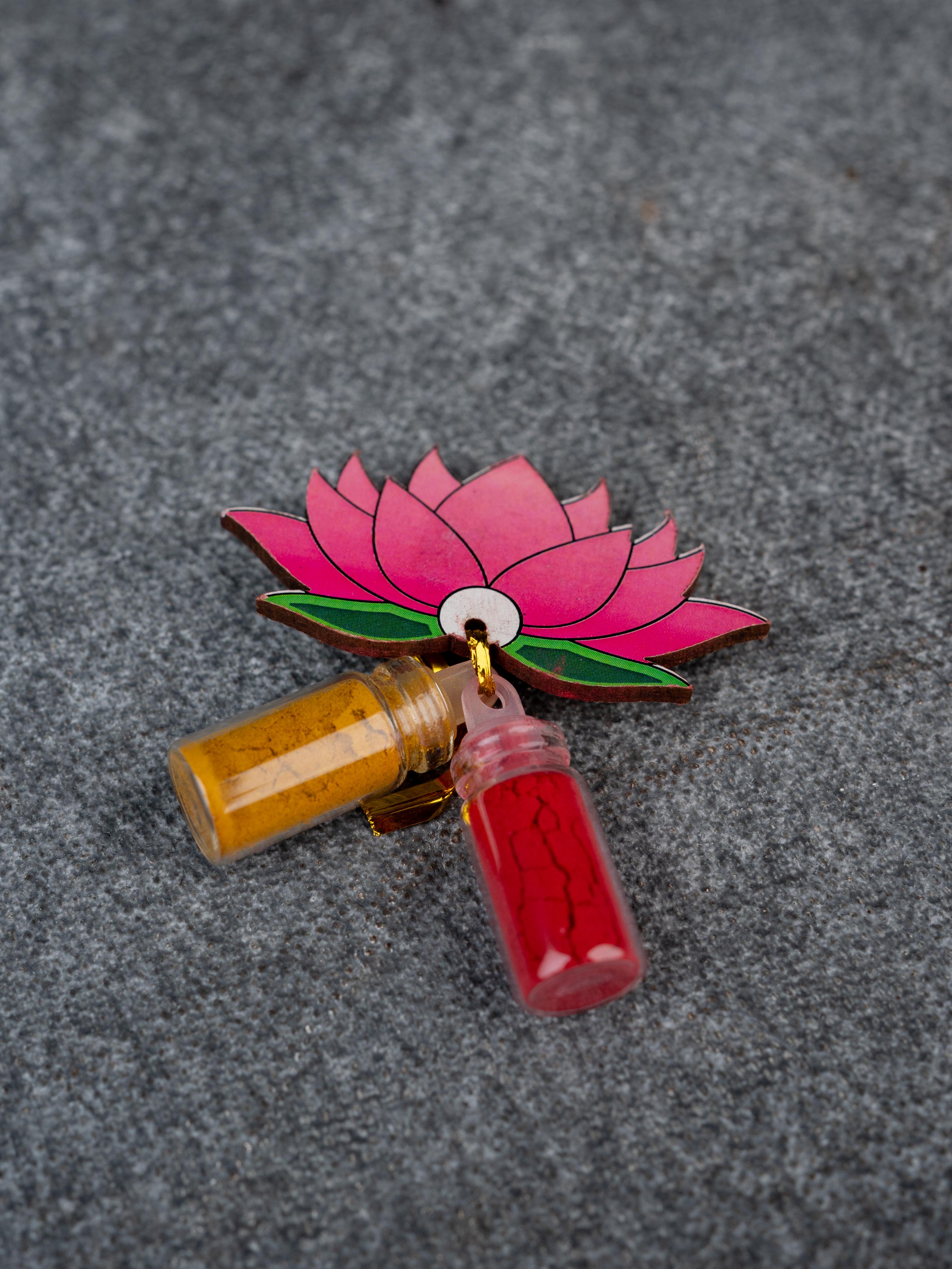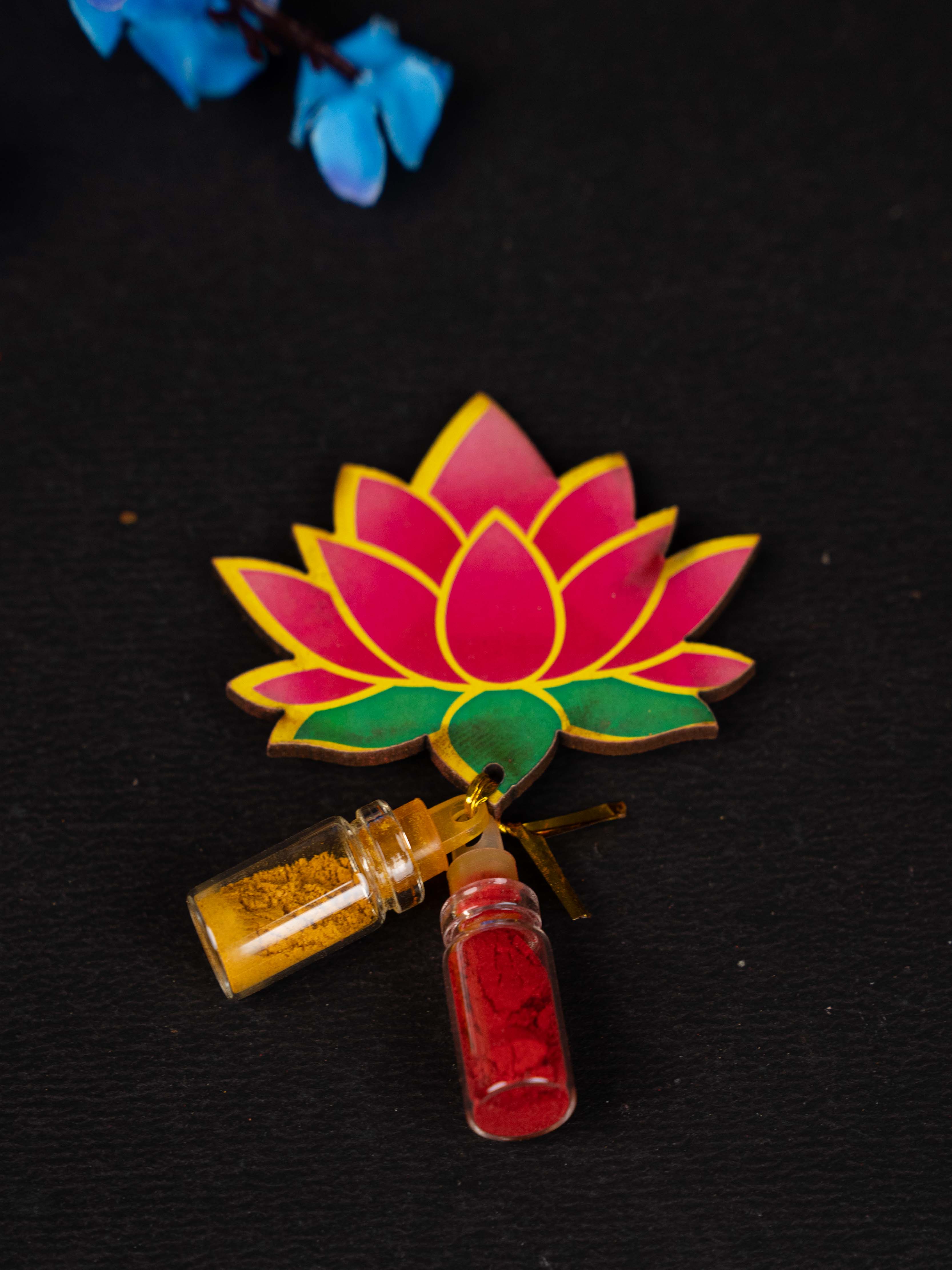 - Beautifully Designed Decorative Magnet with Haldi Kumkum Featuring a Vibrant Lotus Flower.