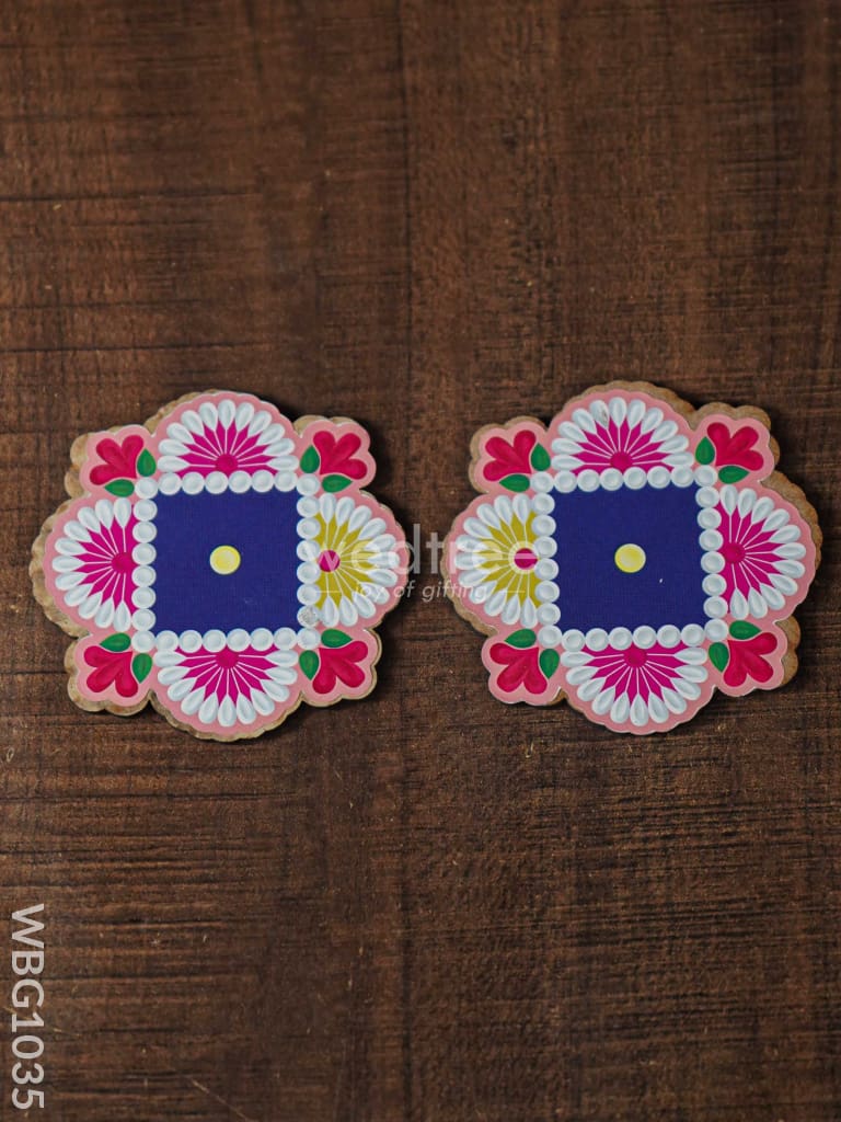 - These coasters are printed with beautiful rangoli and other traditional desings.