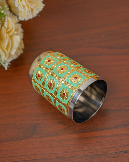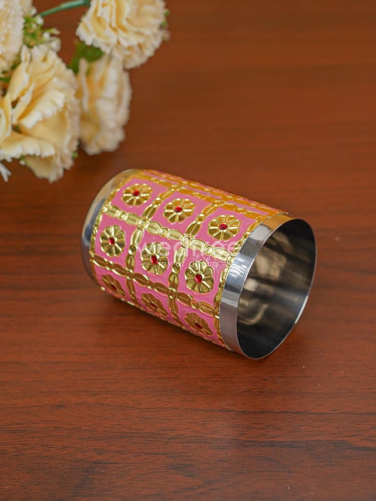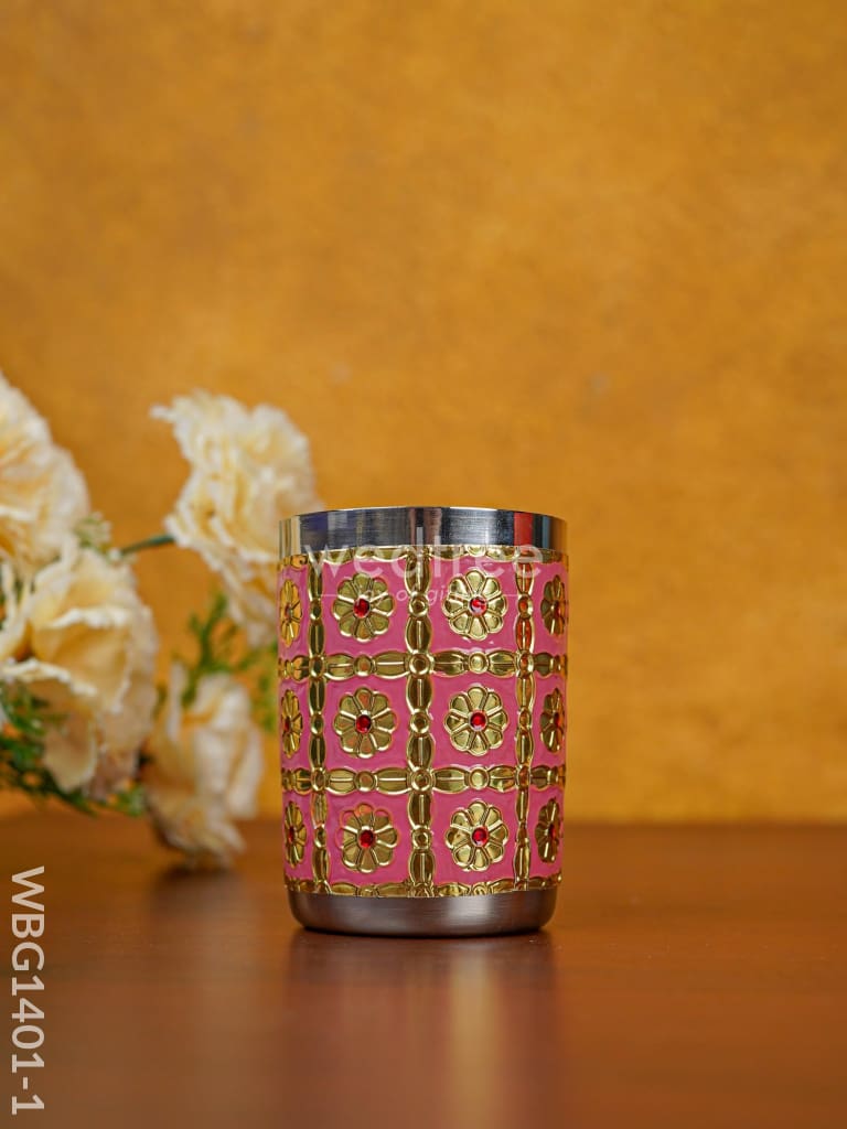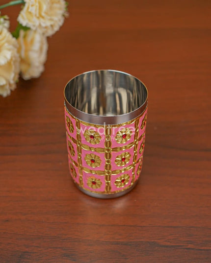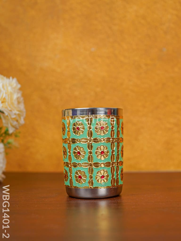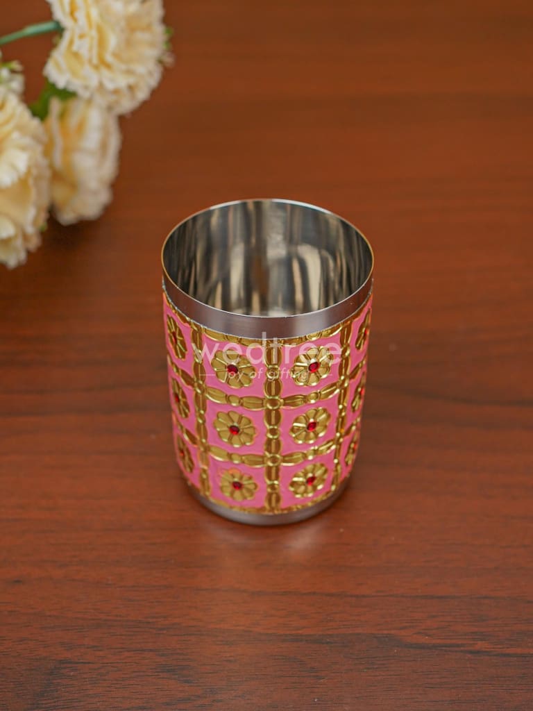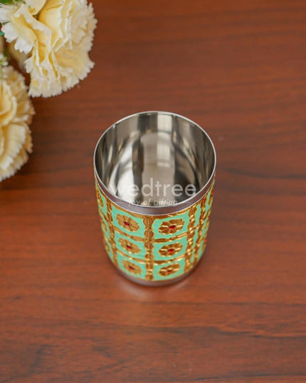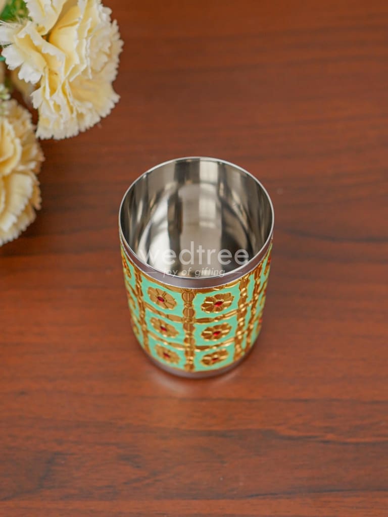 - This glass is made of stainless steel and embellished with Meenakari work on the outer surface.