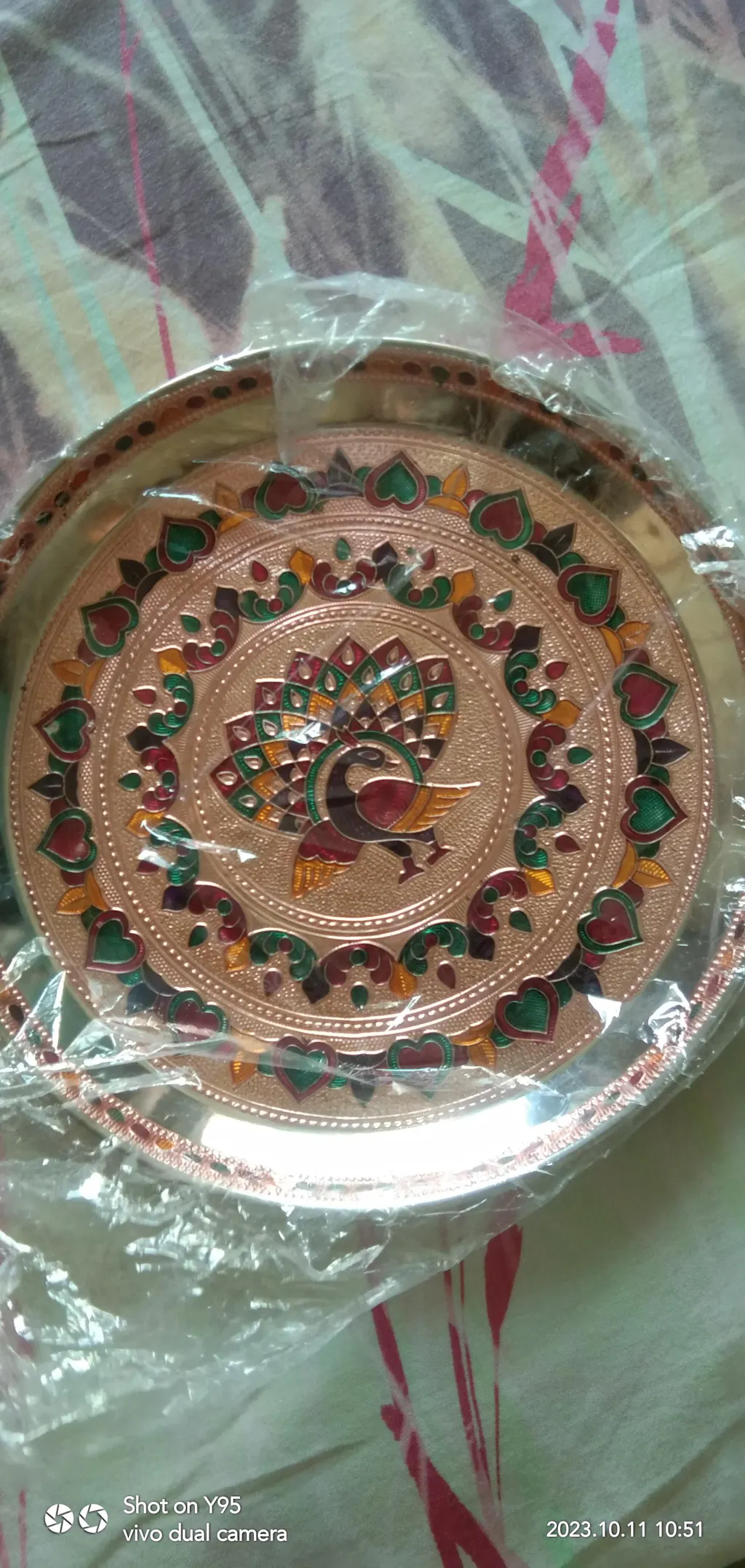 - With a graceful peacock motif in the centre surrounded by beautiful floral designs, this plate comes with Copper Finish.