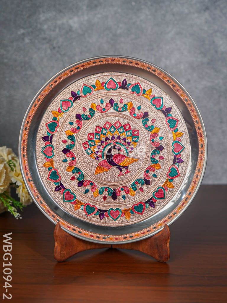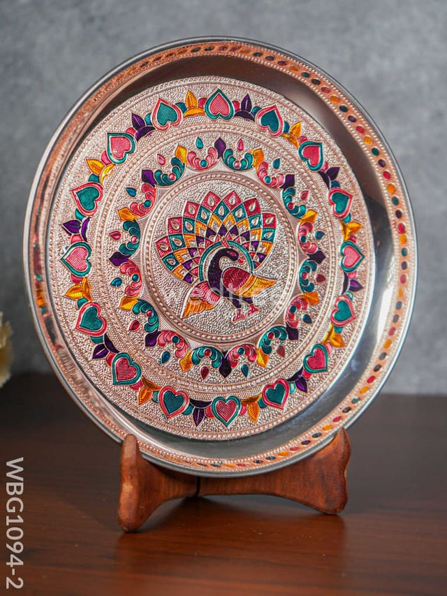 Meenakari Peacock Plate with Copper Finish - 9 inch - WBG1094-2