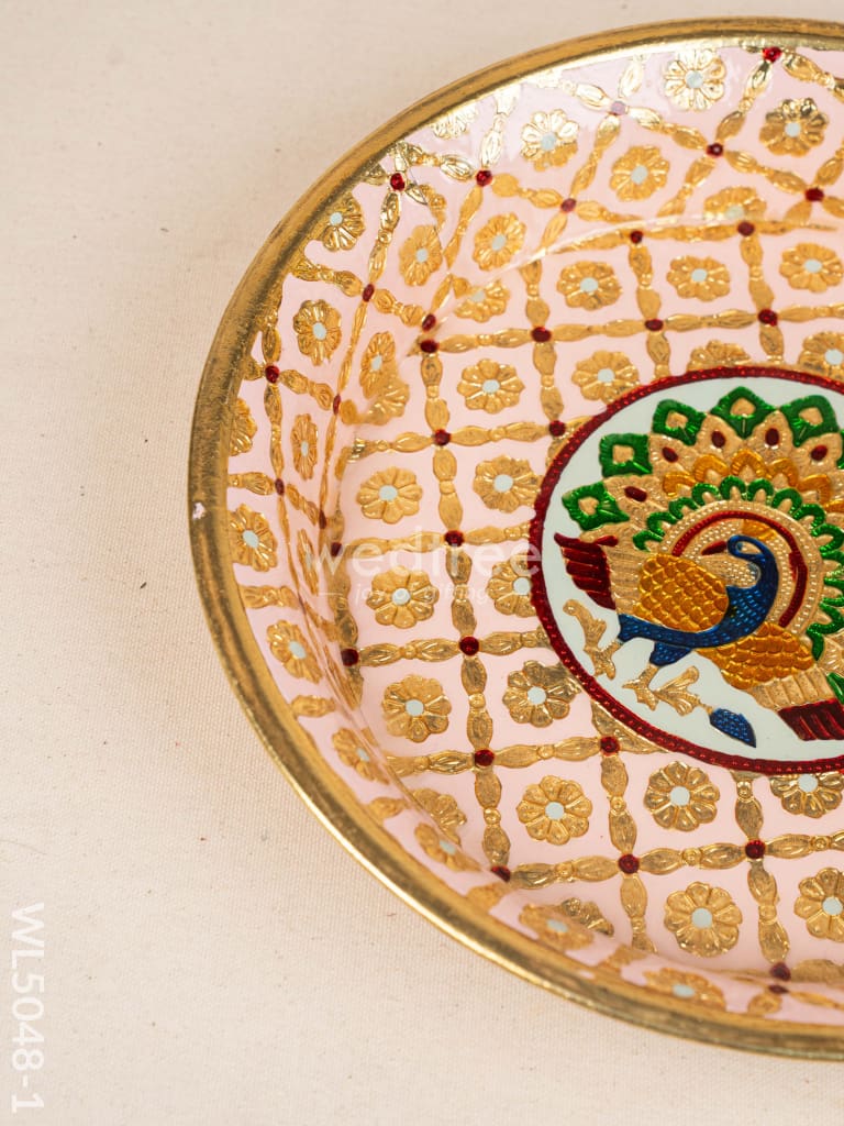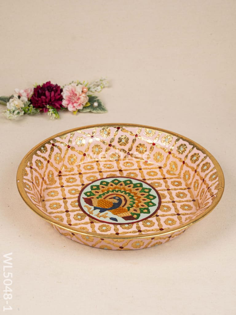 Meenakari Thambaalam Plate - 12 inch - Pink - WL5048-1