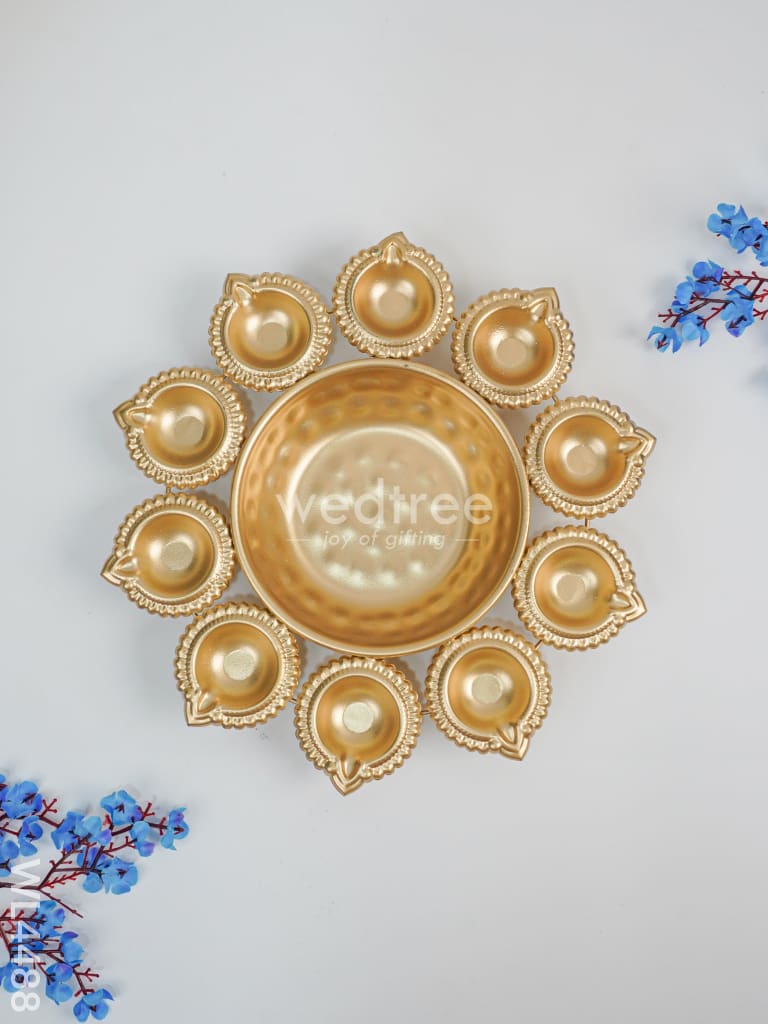 Metal Decor Urli with Diyas - WL4488