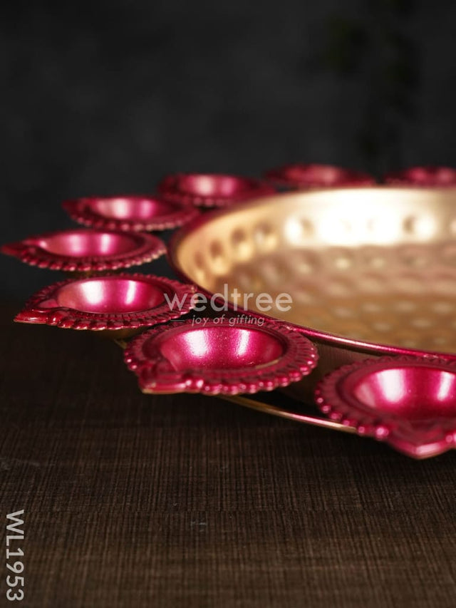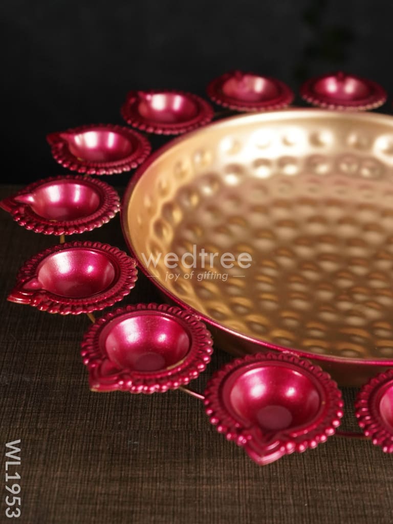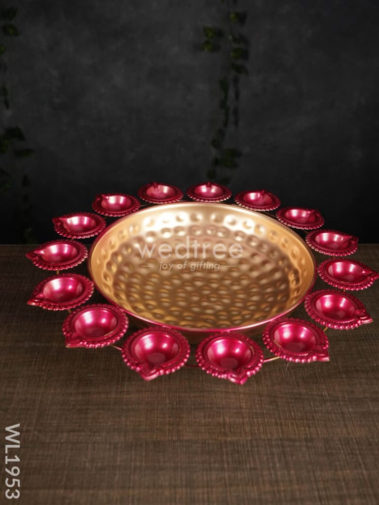 - This urli is made out of metal and has hand painted diyas surrounded giving it a festive look.