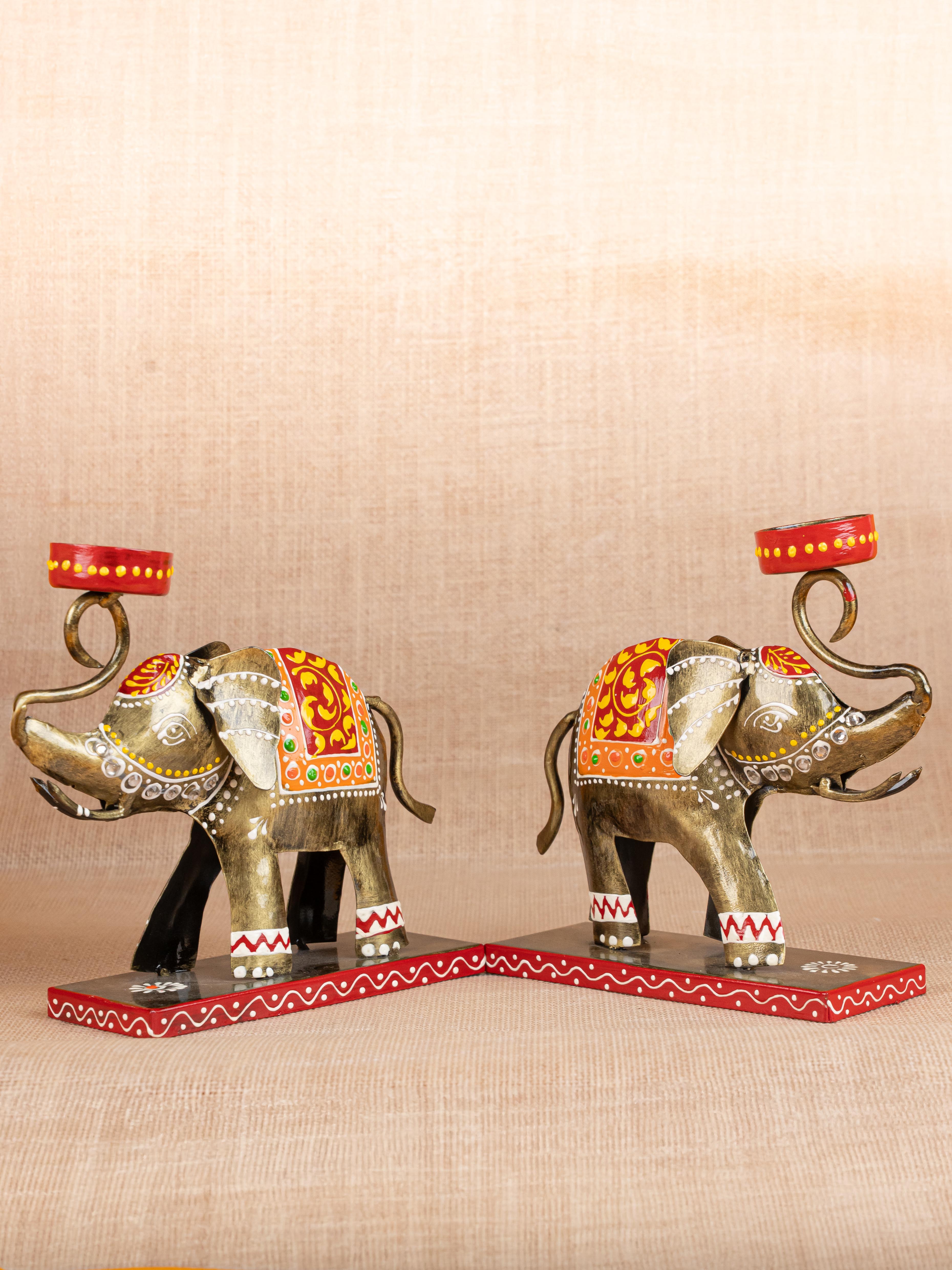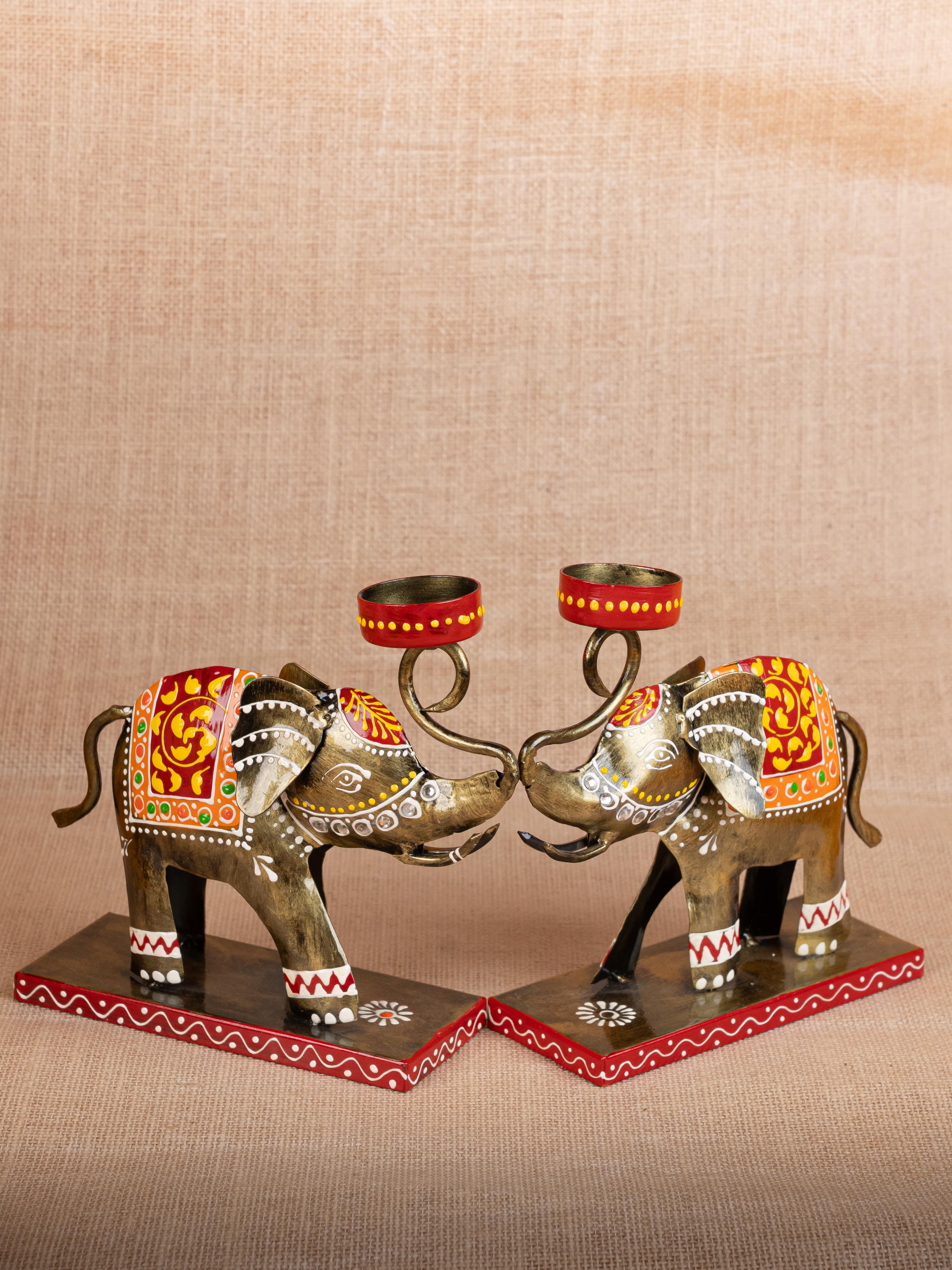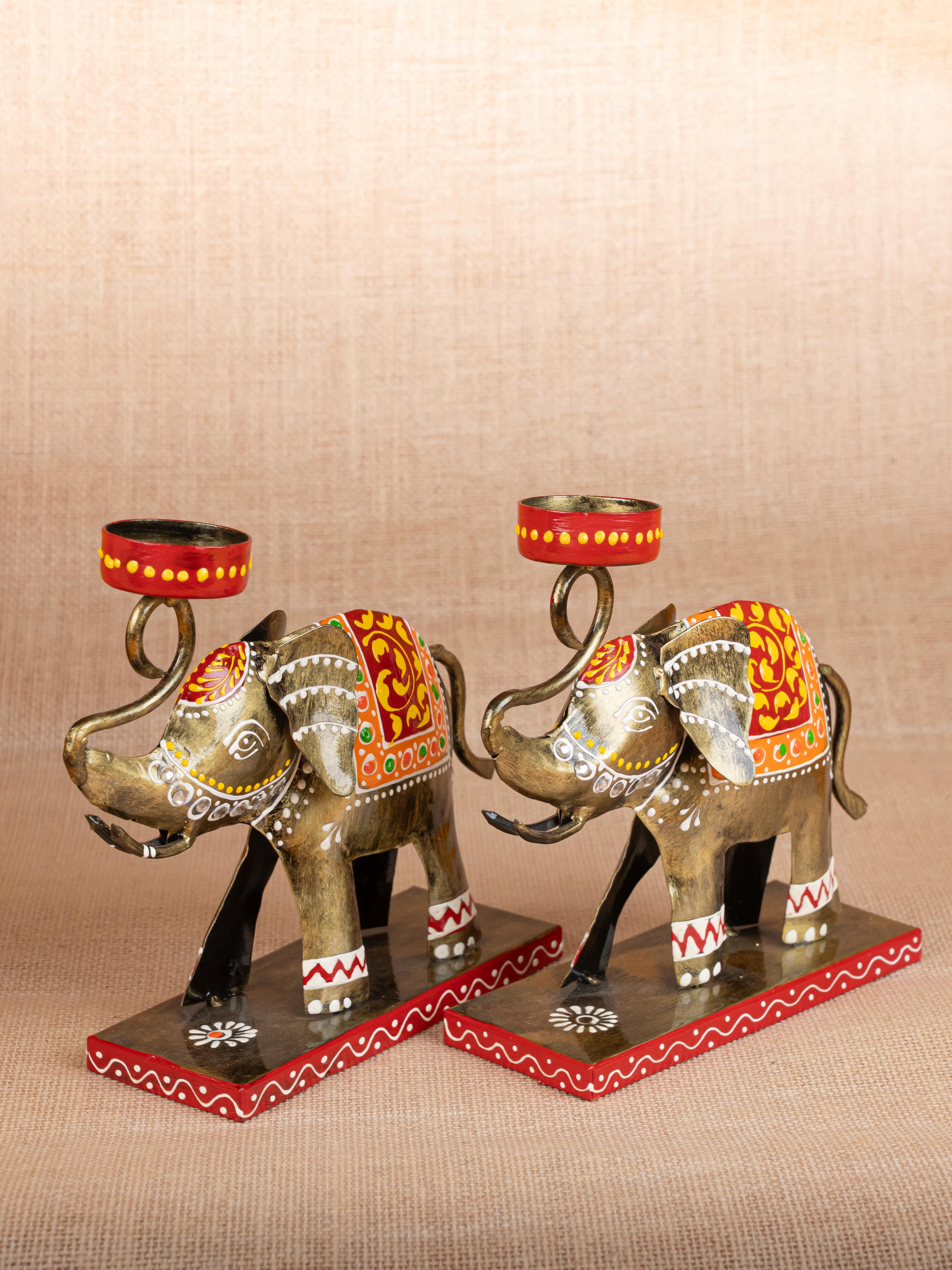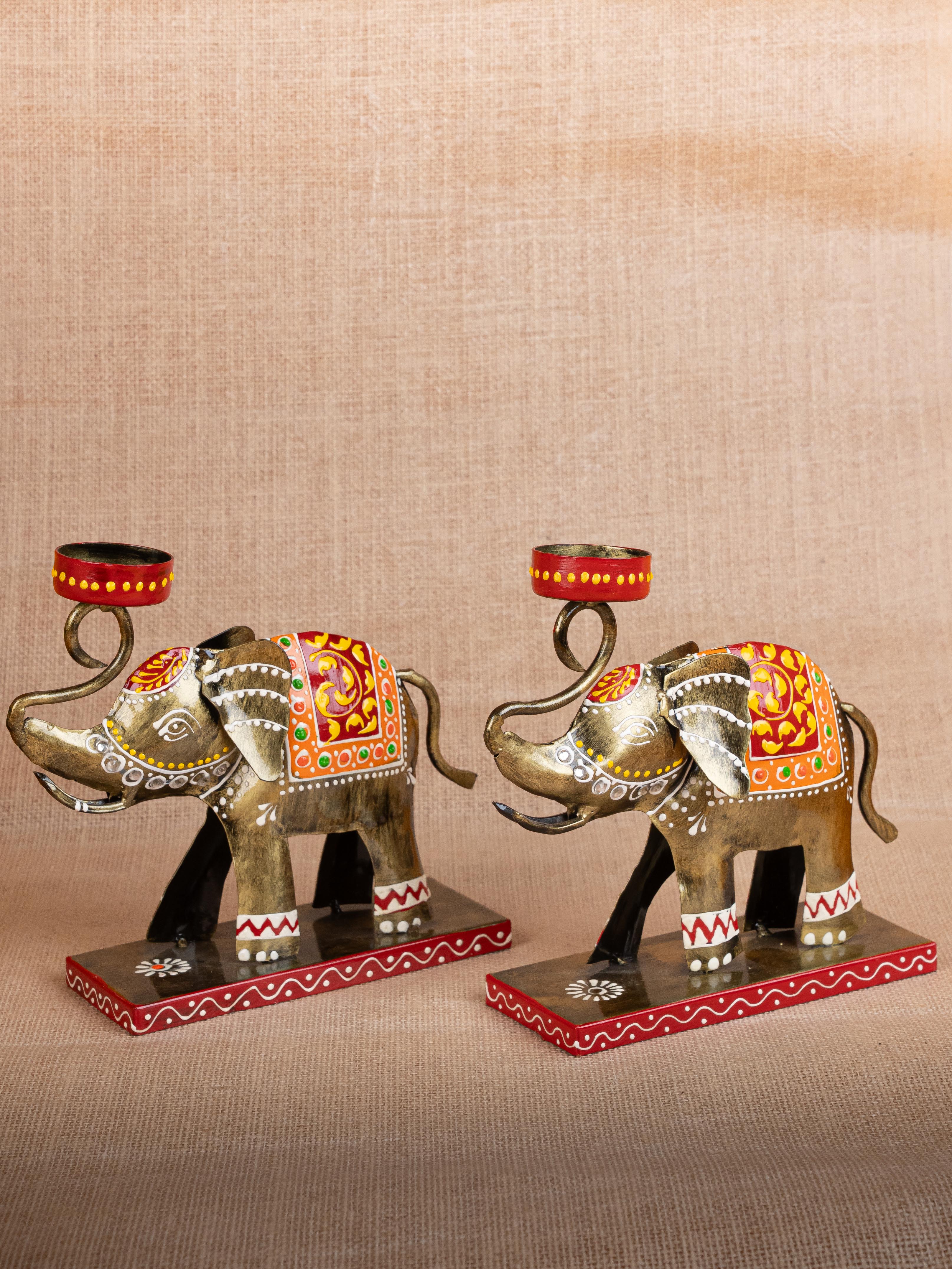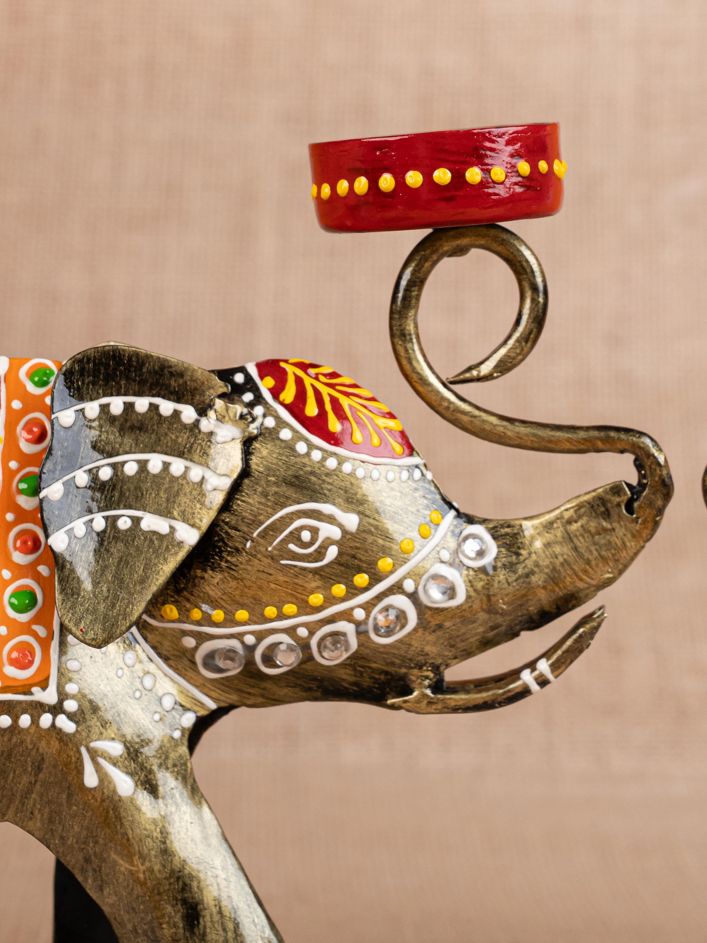 Metal Handpainted Elephant T Light Holder - Set of 2 - WL5260