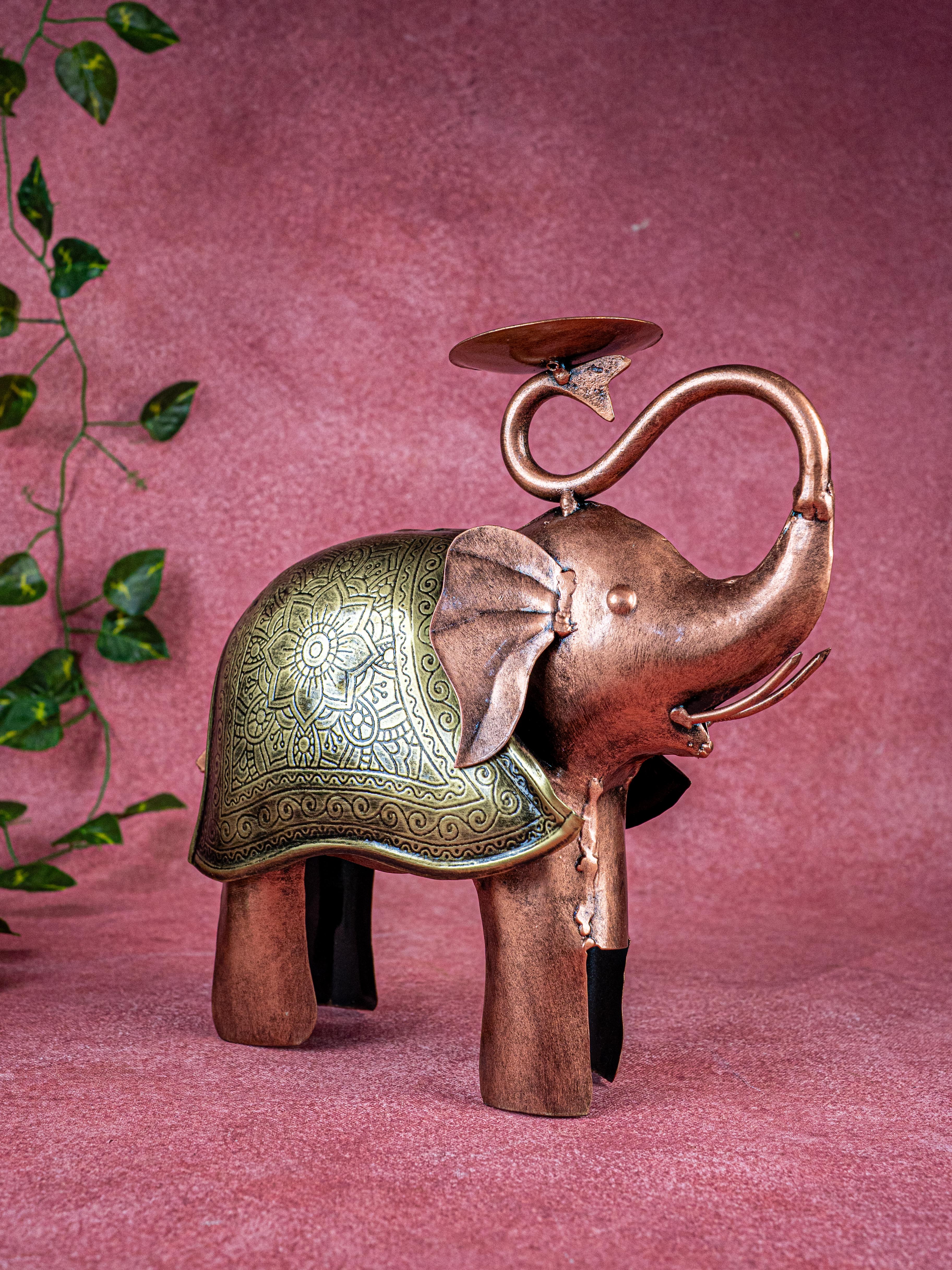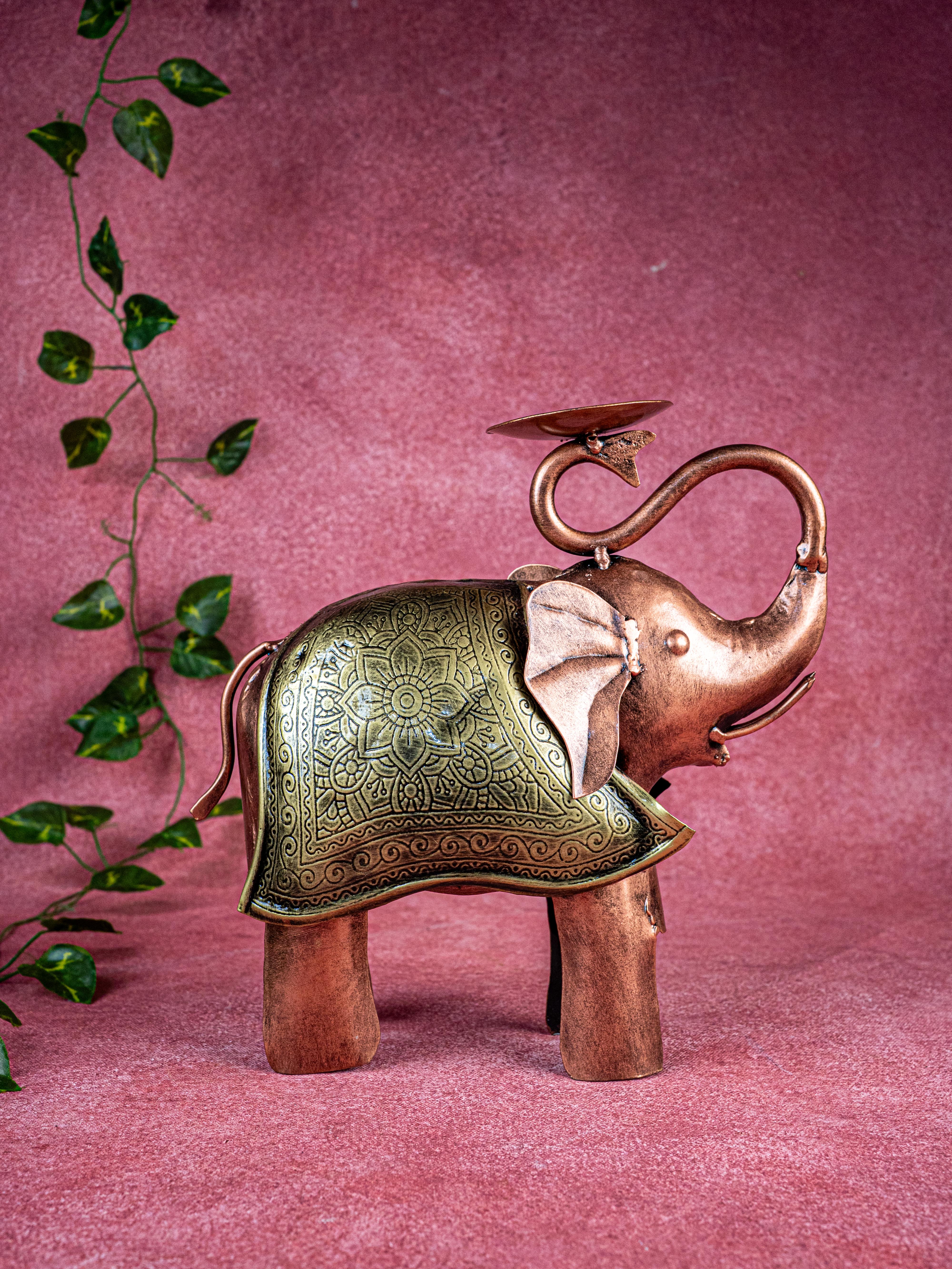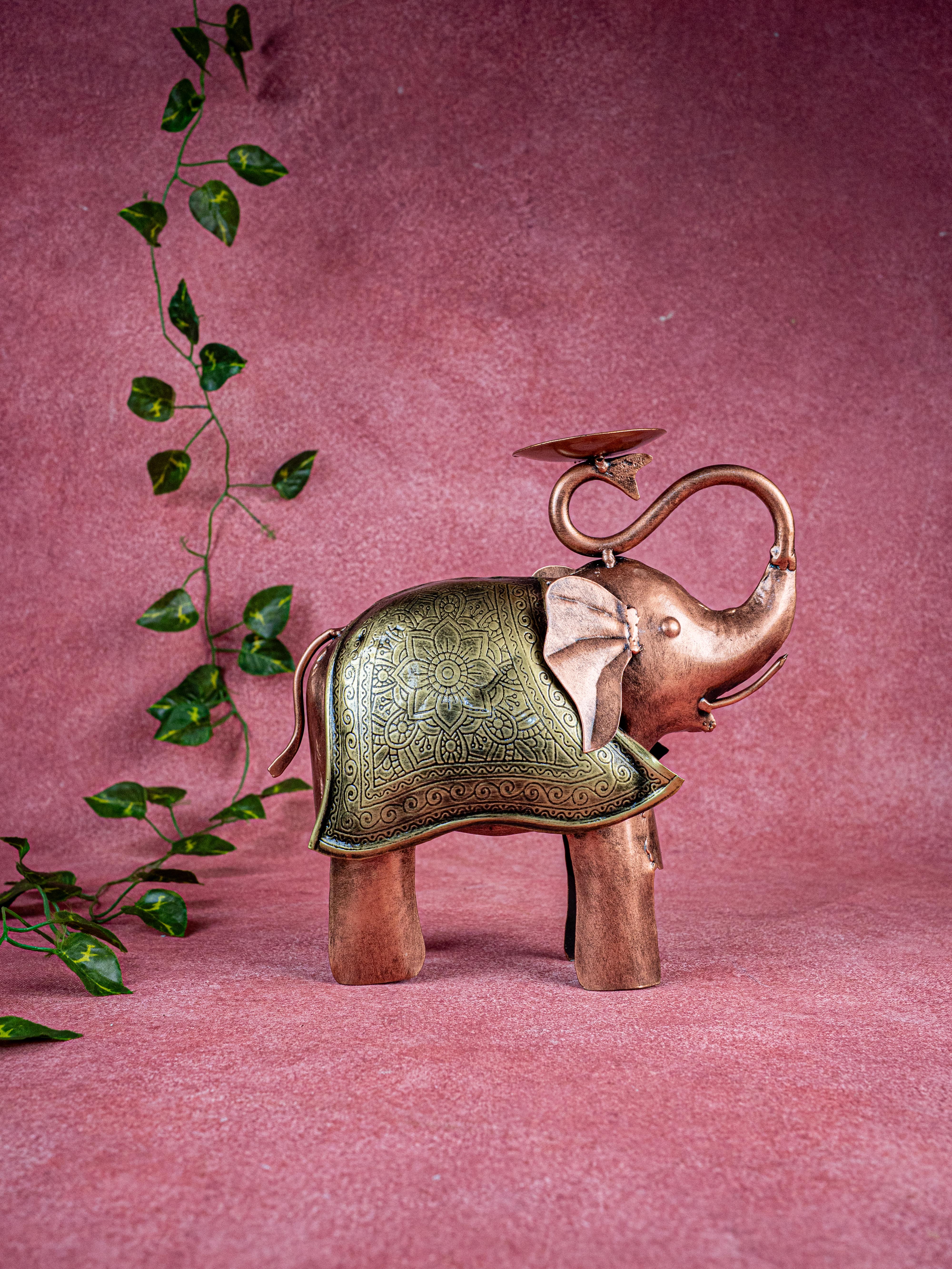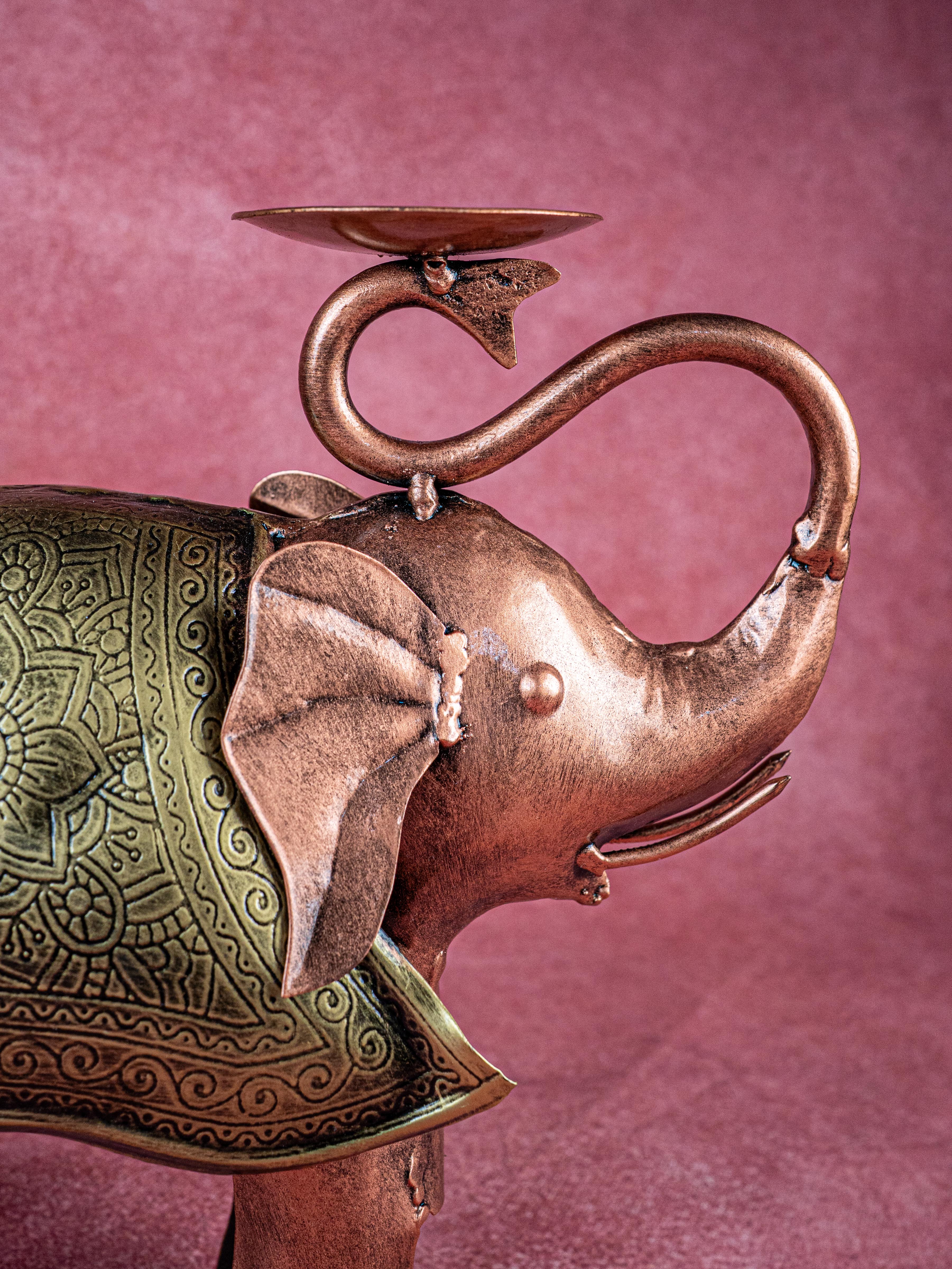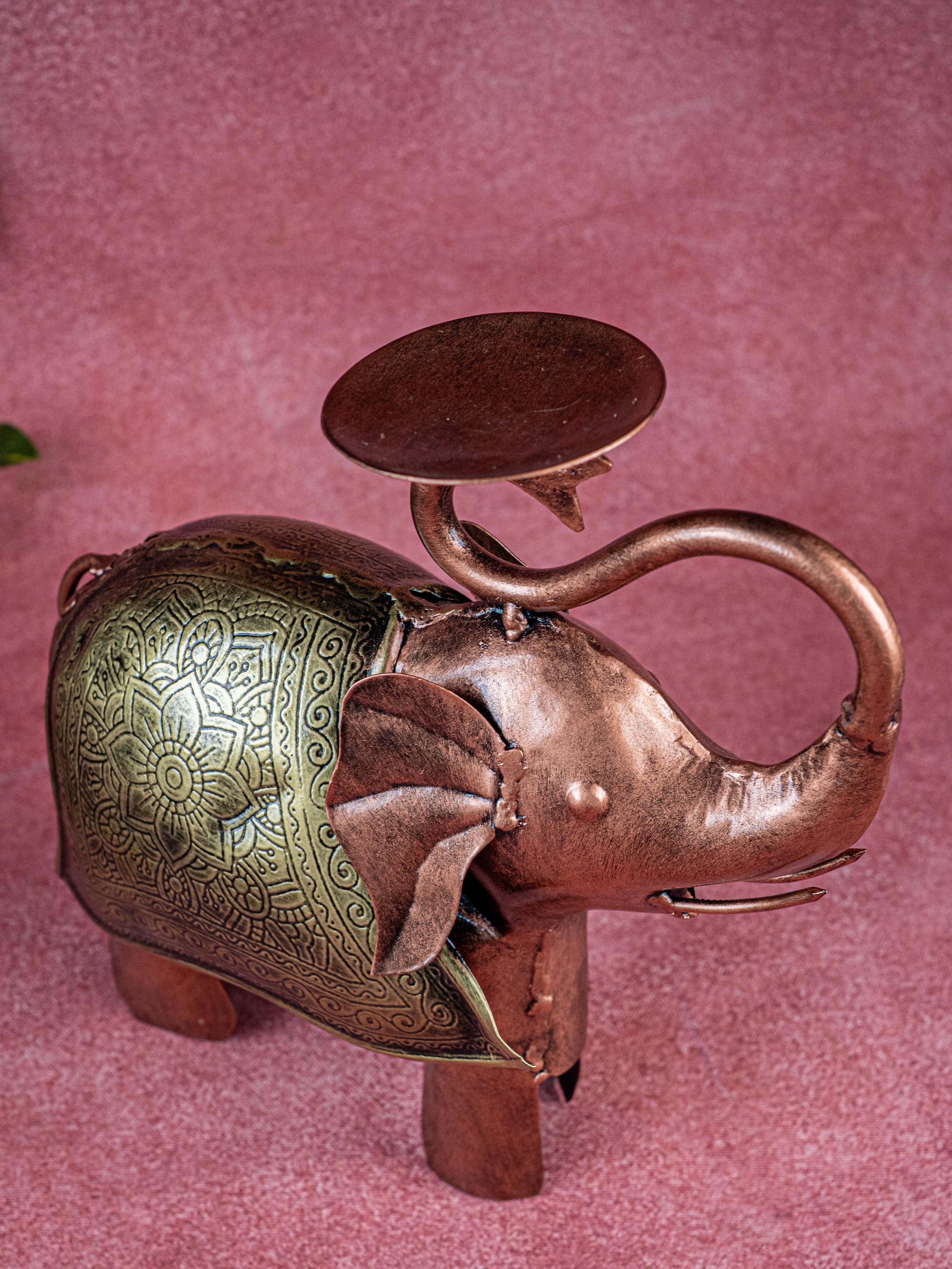 - Enlighten your home decor with this delightful metal elephant T-light holder.