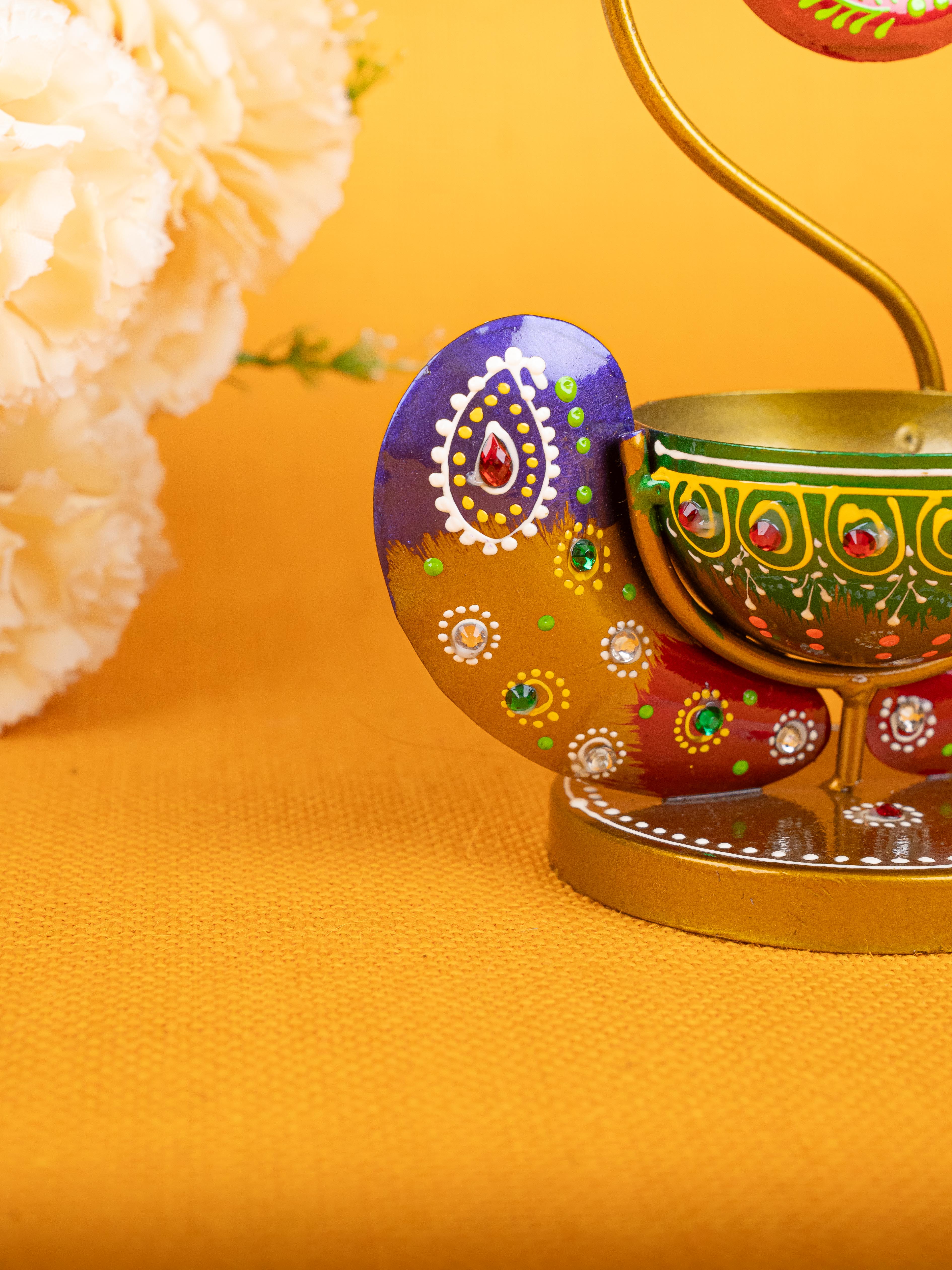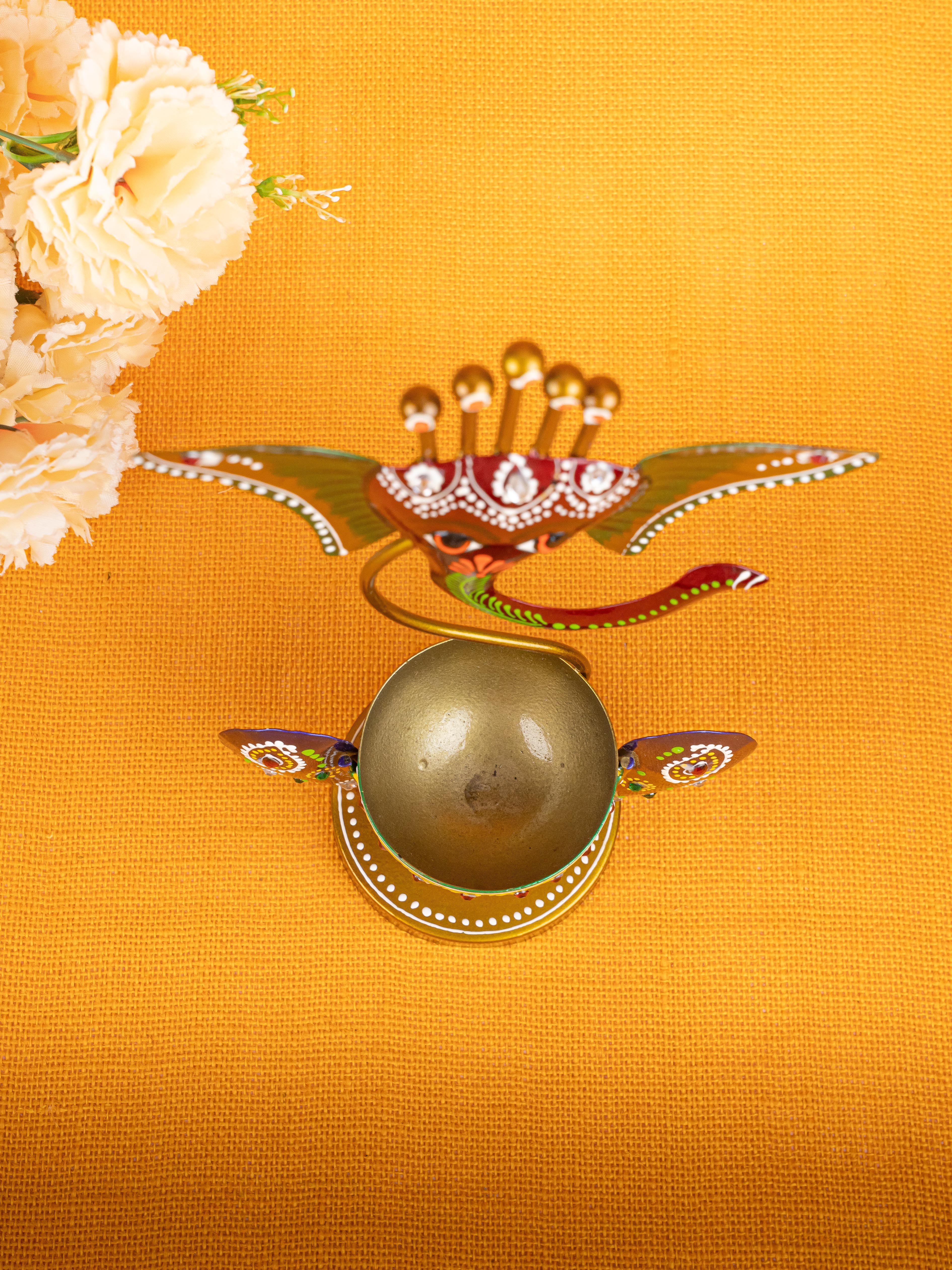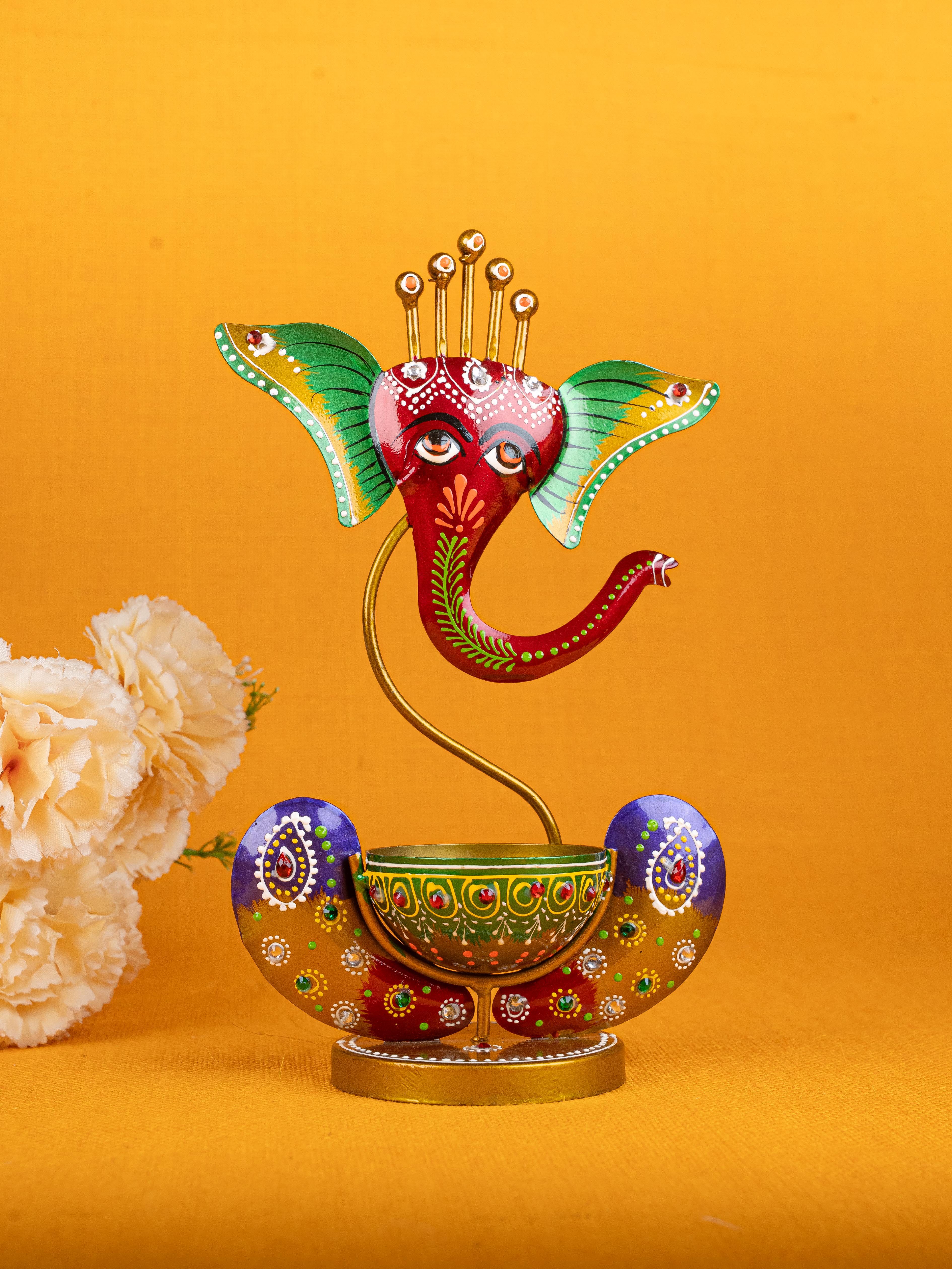 Metal Handpainted Ganesha T Light Holder - W3351-2