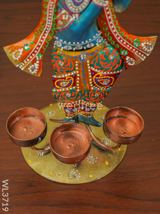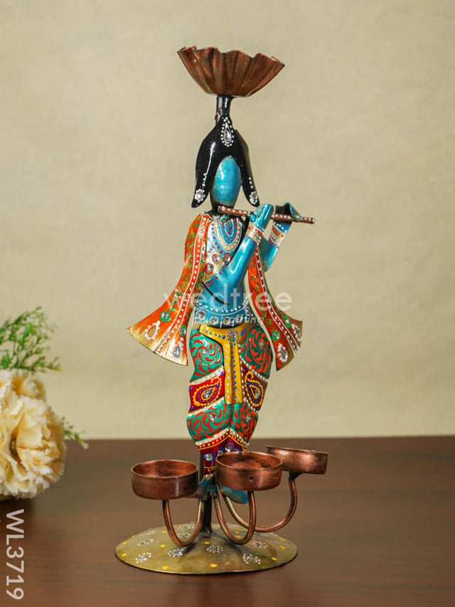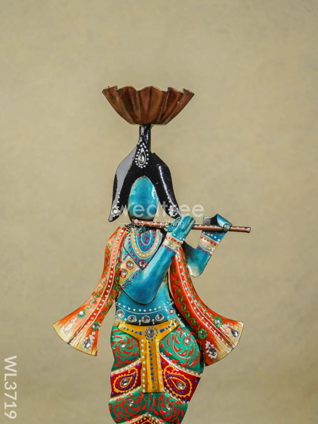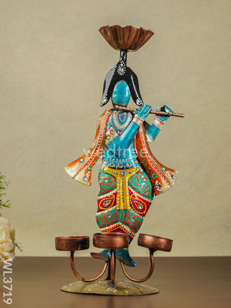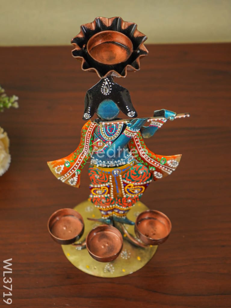 Metal Handpainted Krishna T Light Holder - WL3719