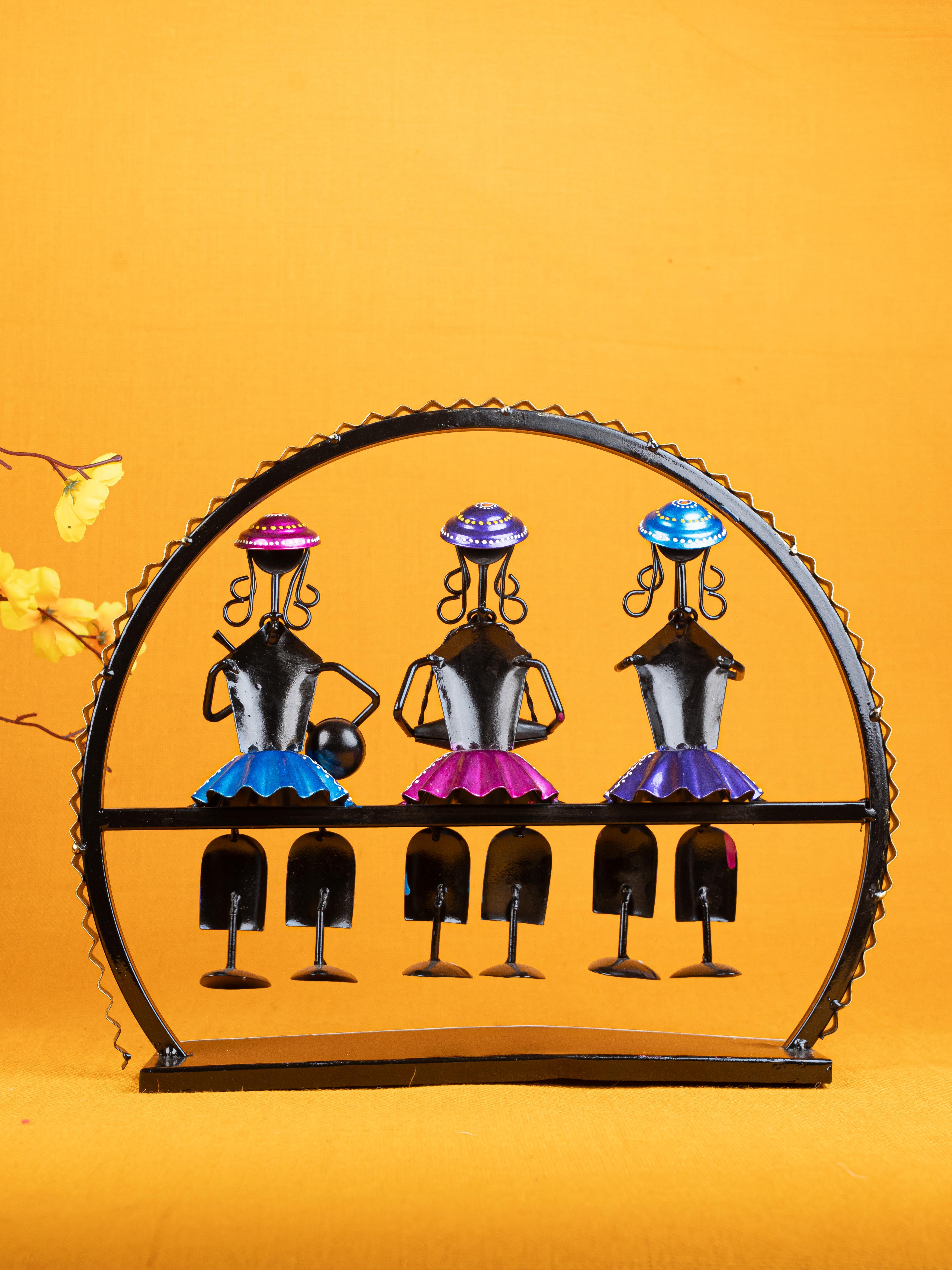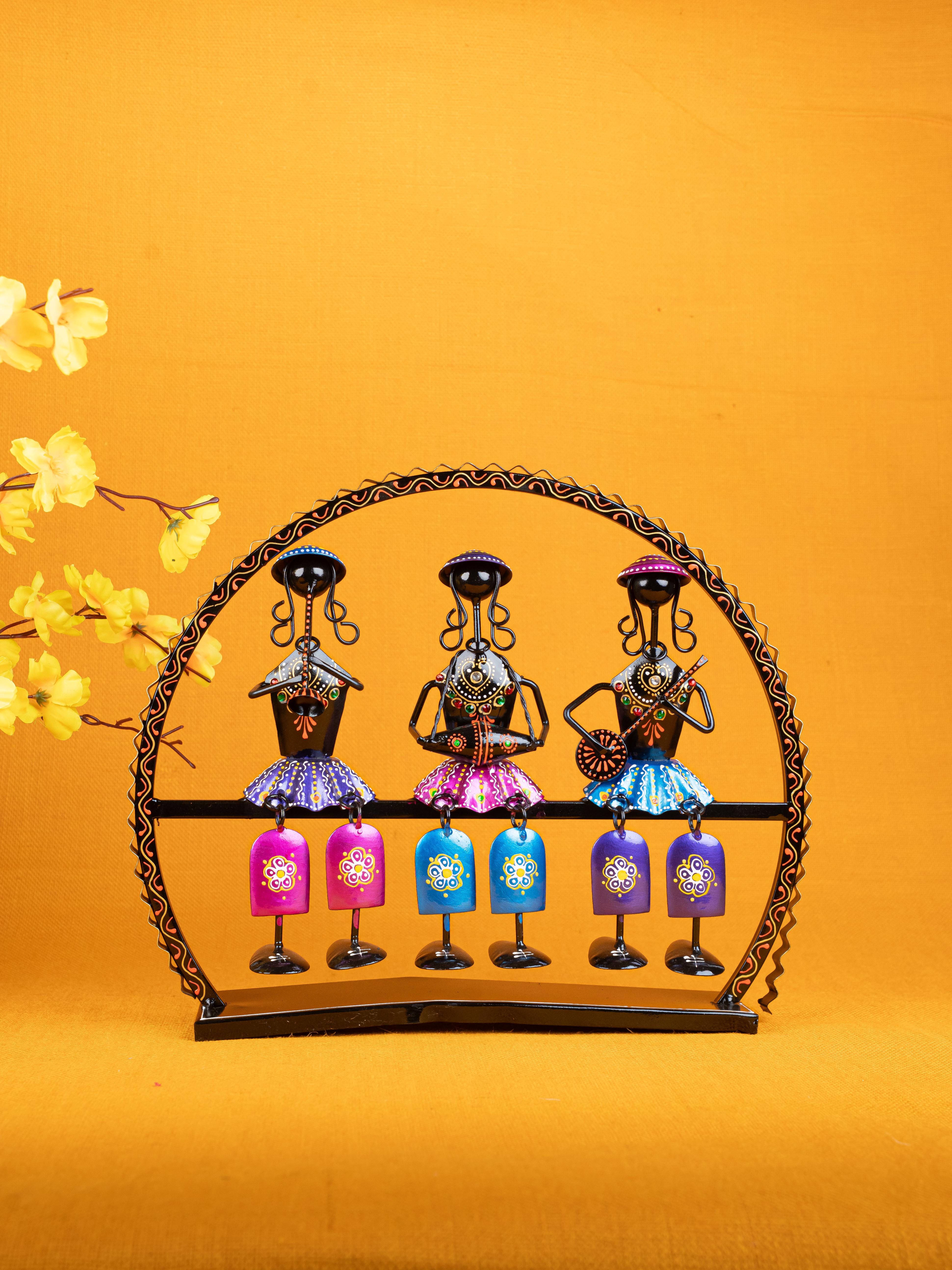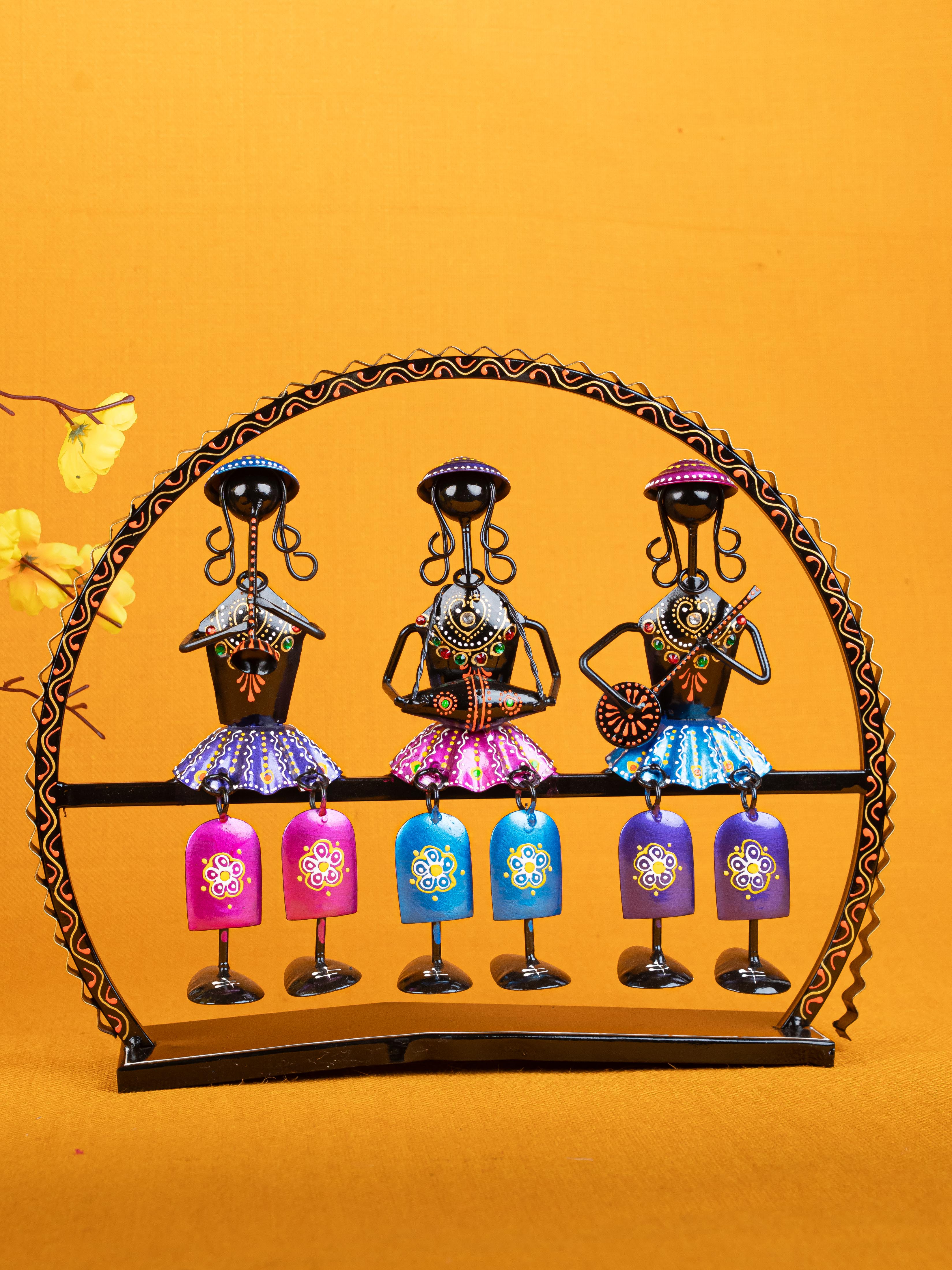 - Gorgeous metal showpiece, featuring 3 musician dolls with different musical instruments seated on a swing.