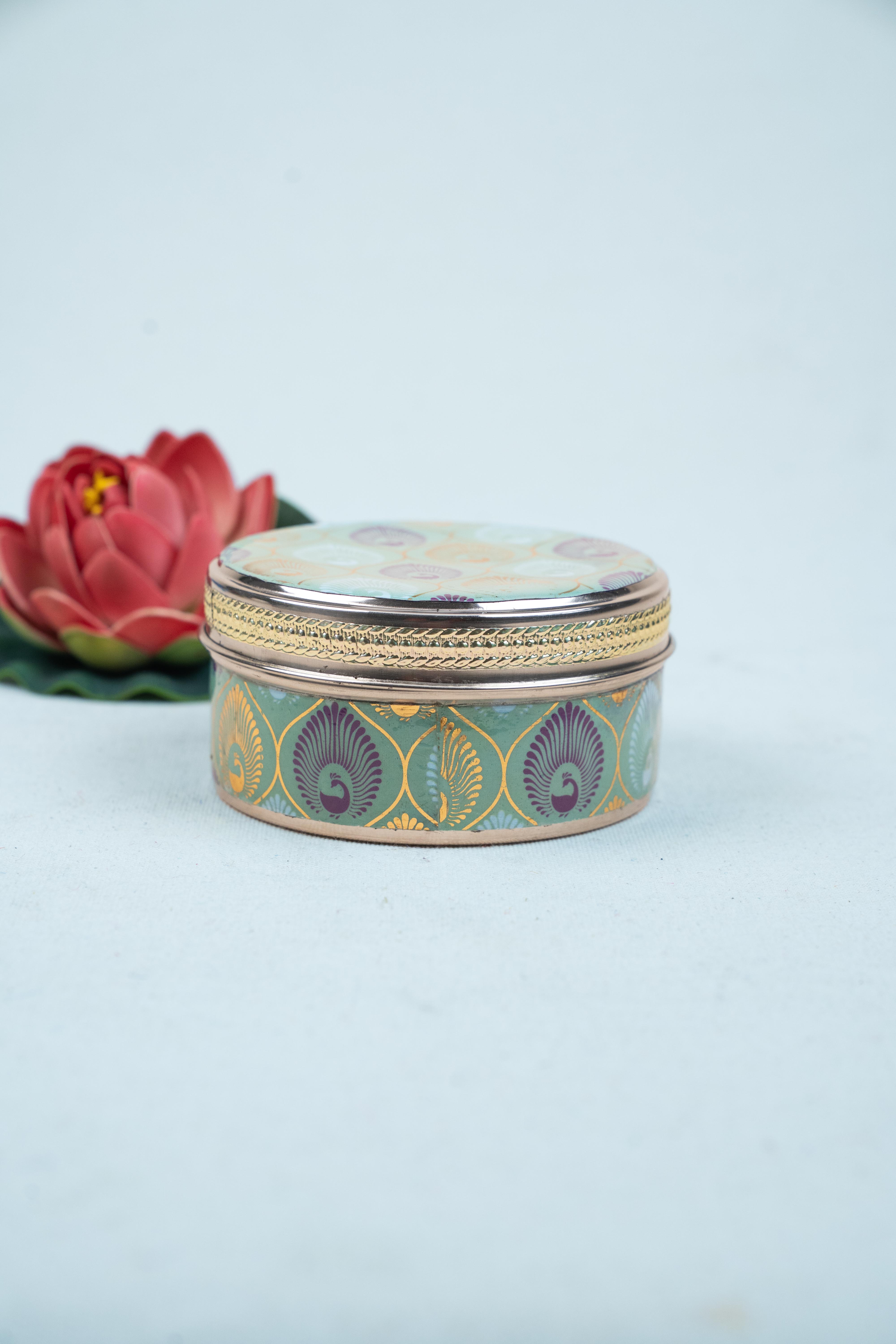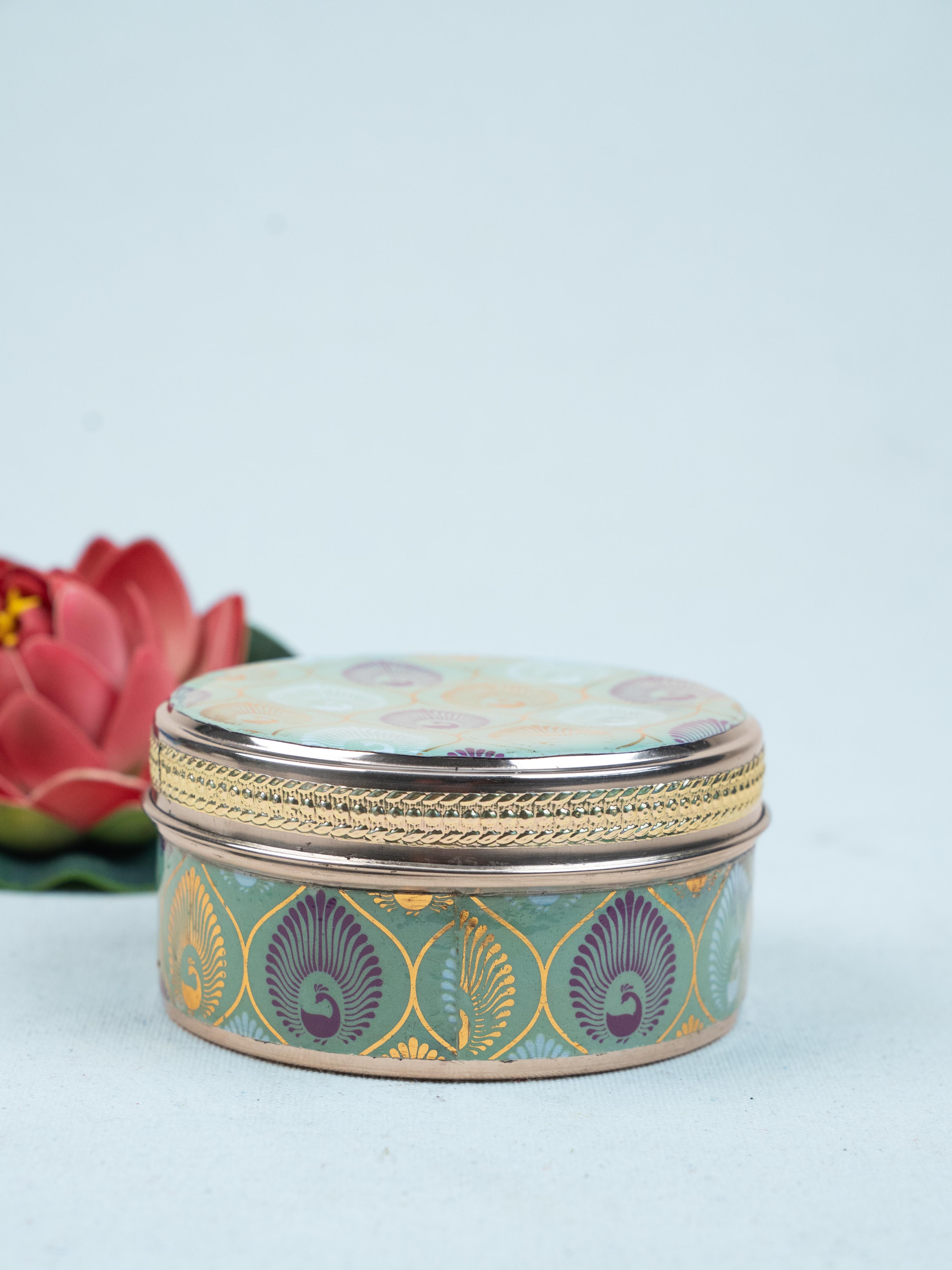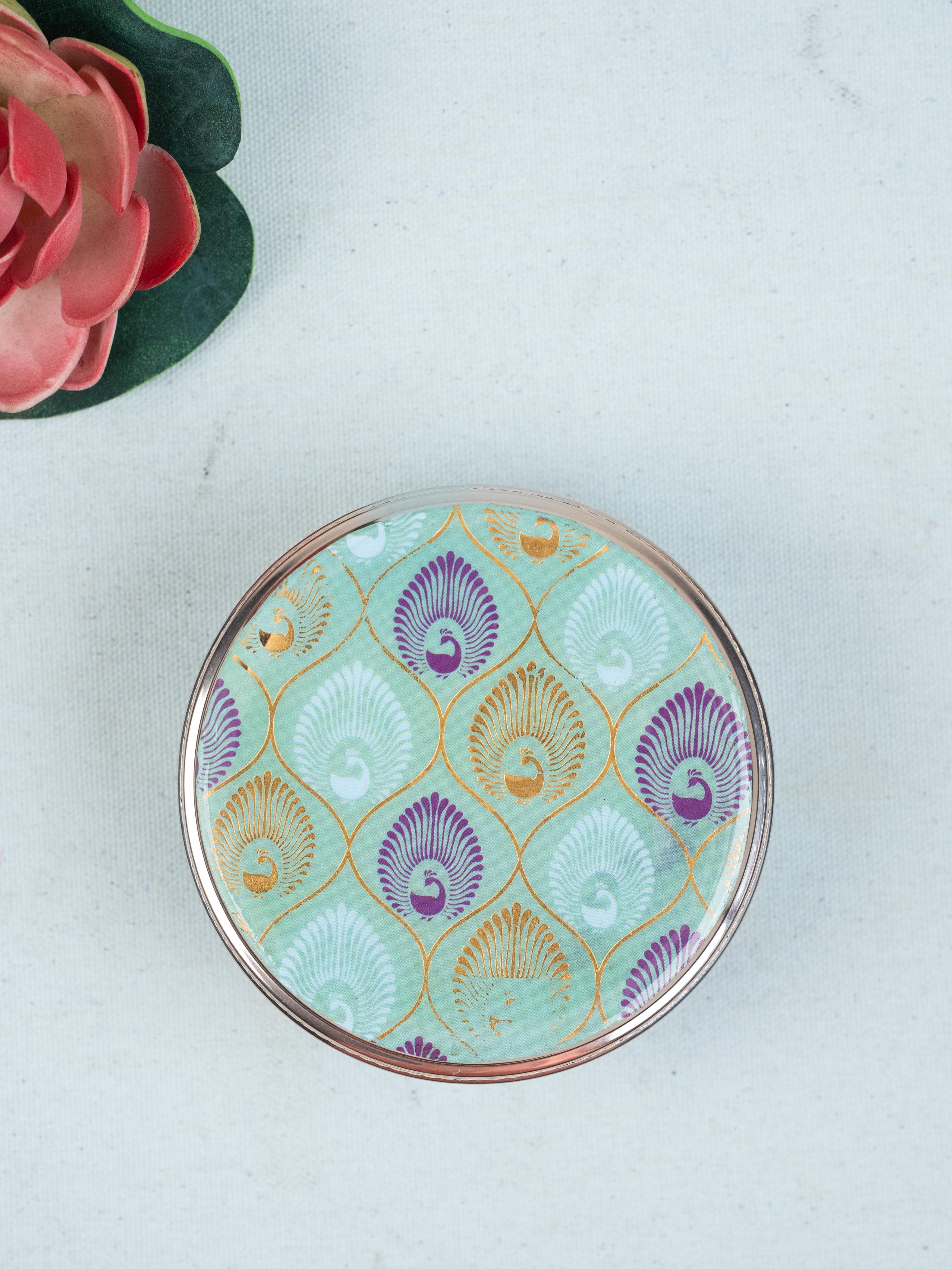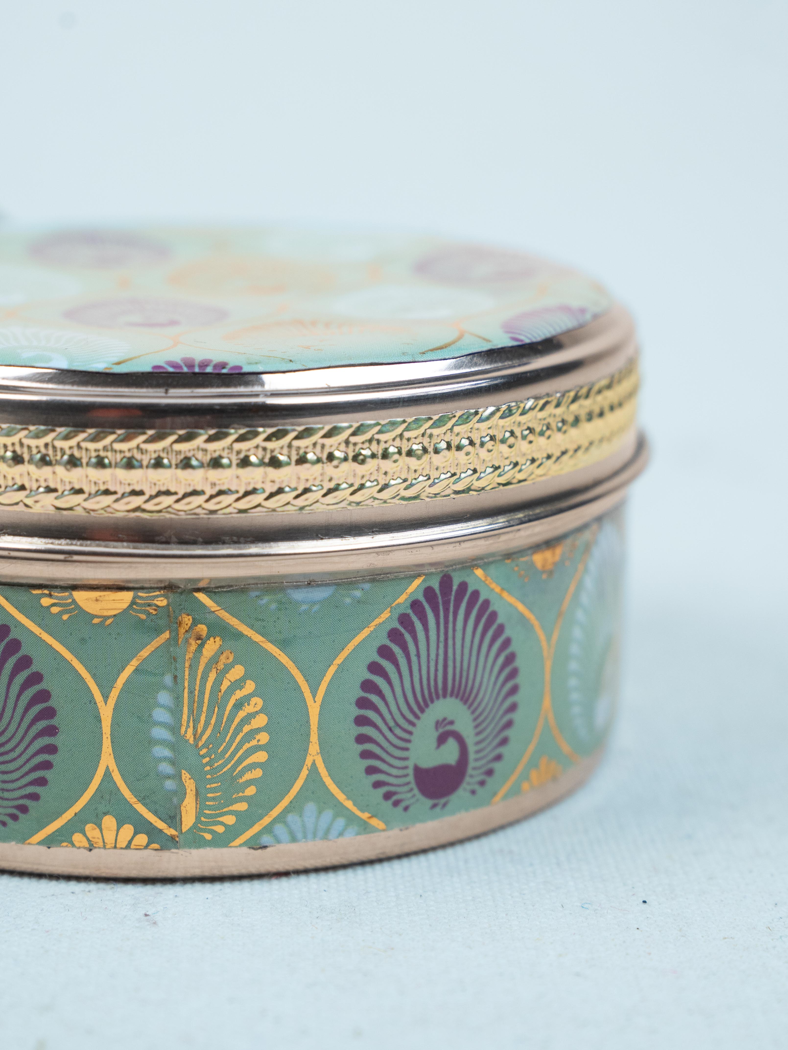 Digital Printed Meenakari - Peacock Design Poori Box - 4 inch - WBG1779