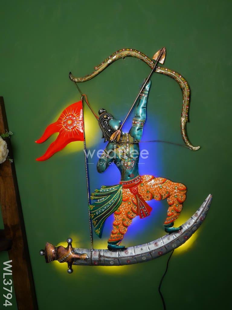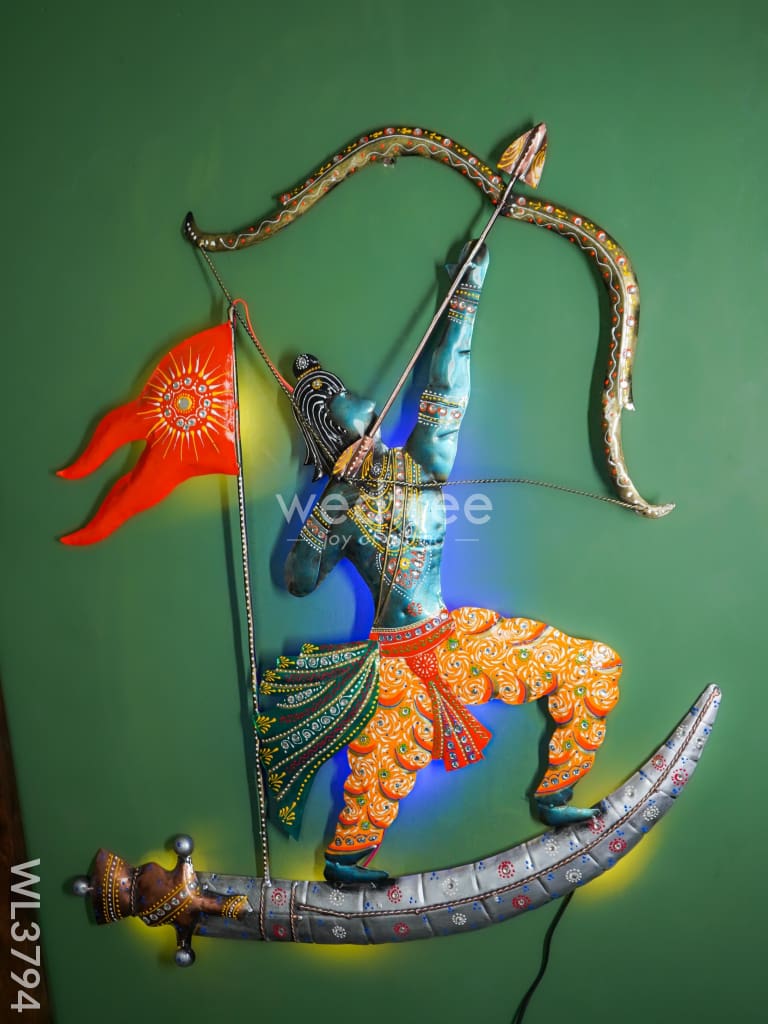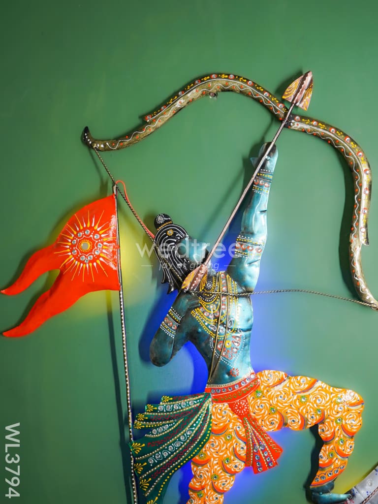 - It features Sri Rama aiming his target with bow. This bow is also known as Sharanga.